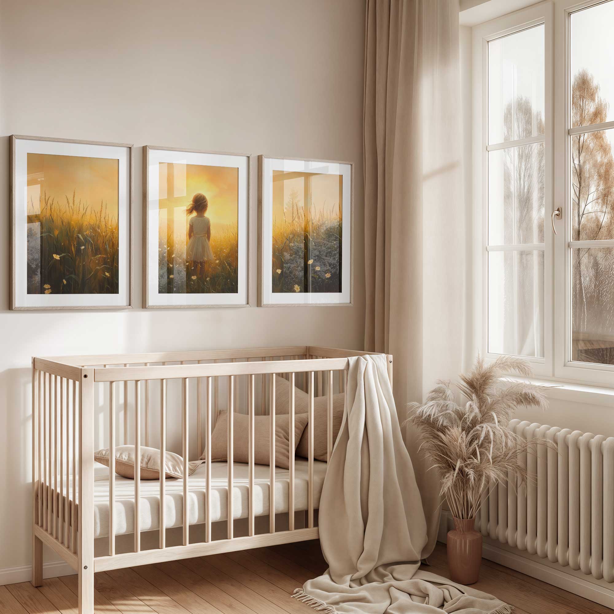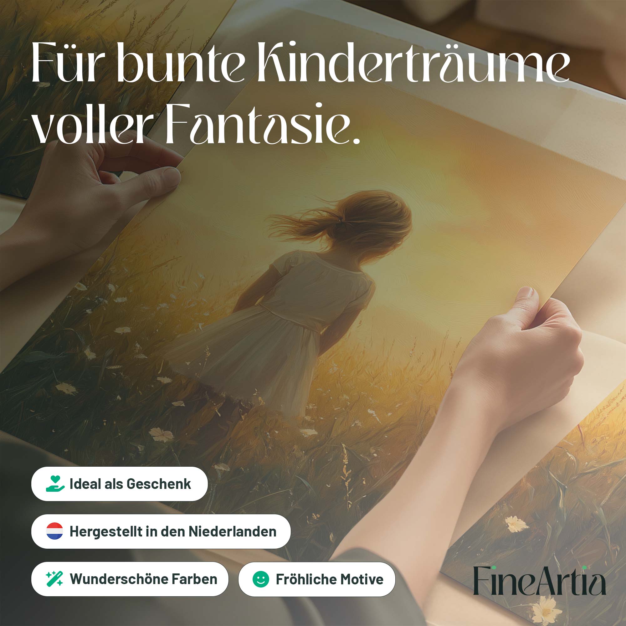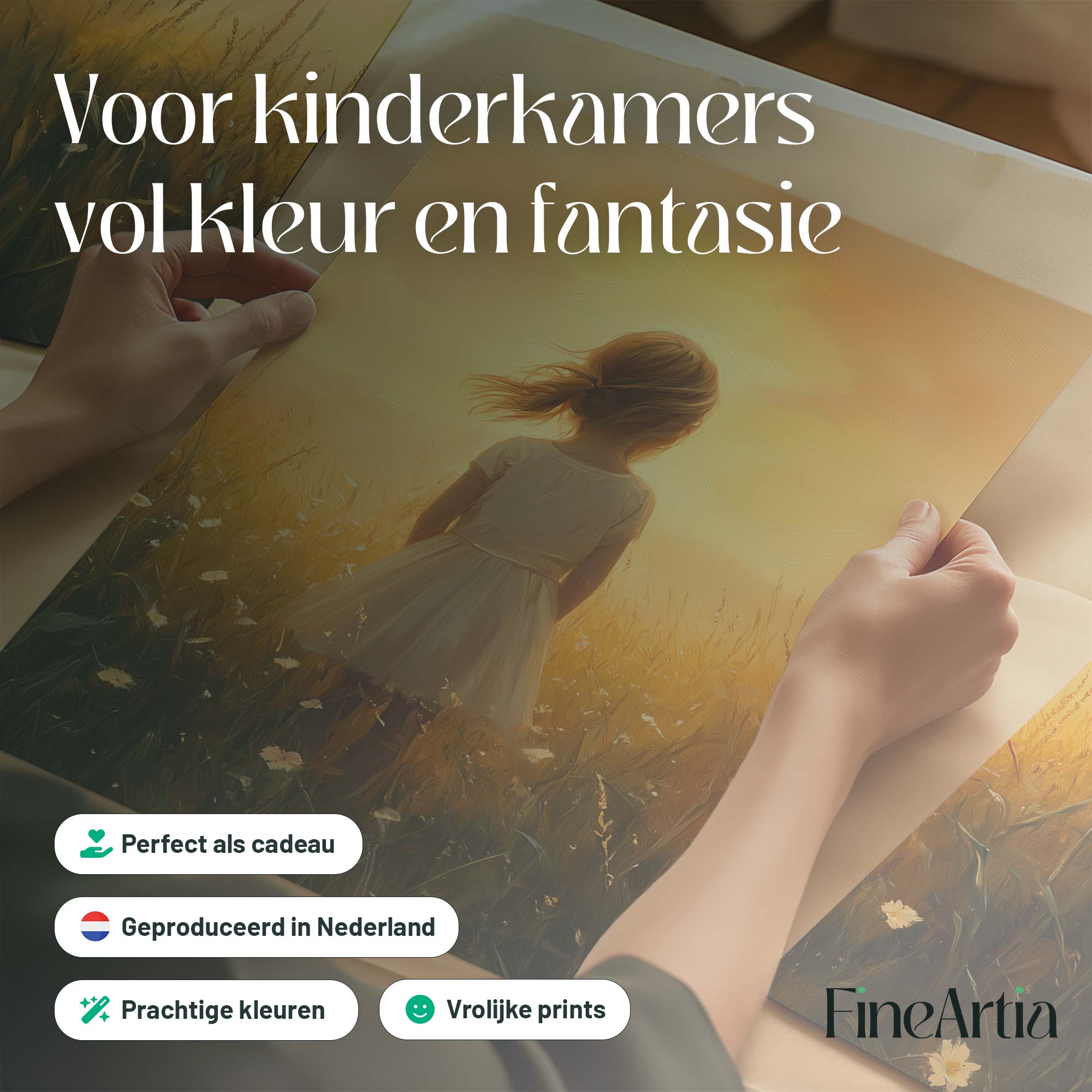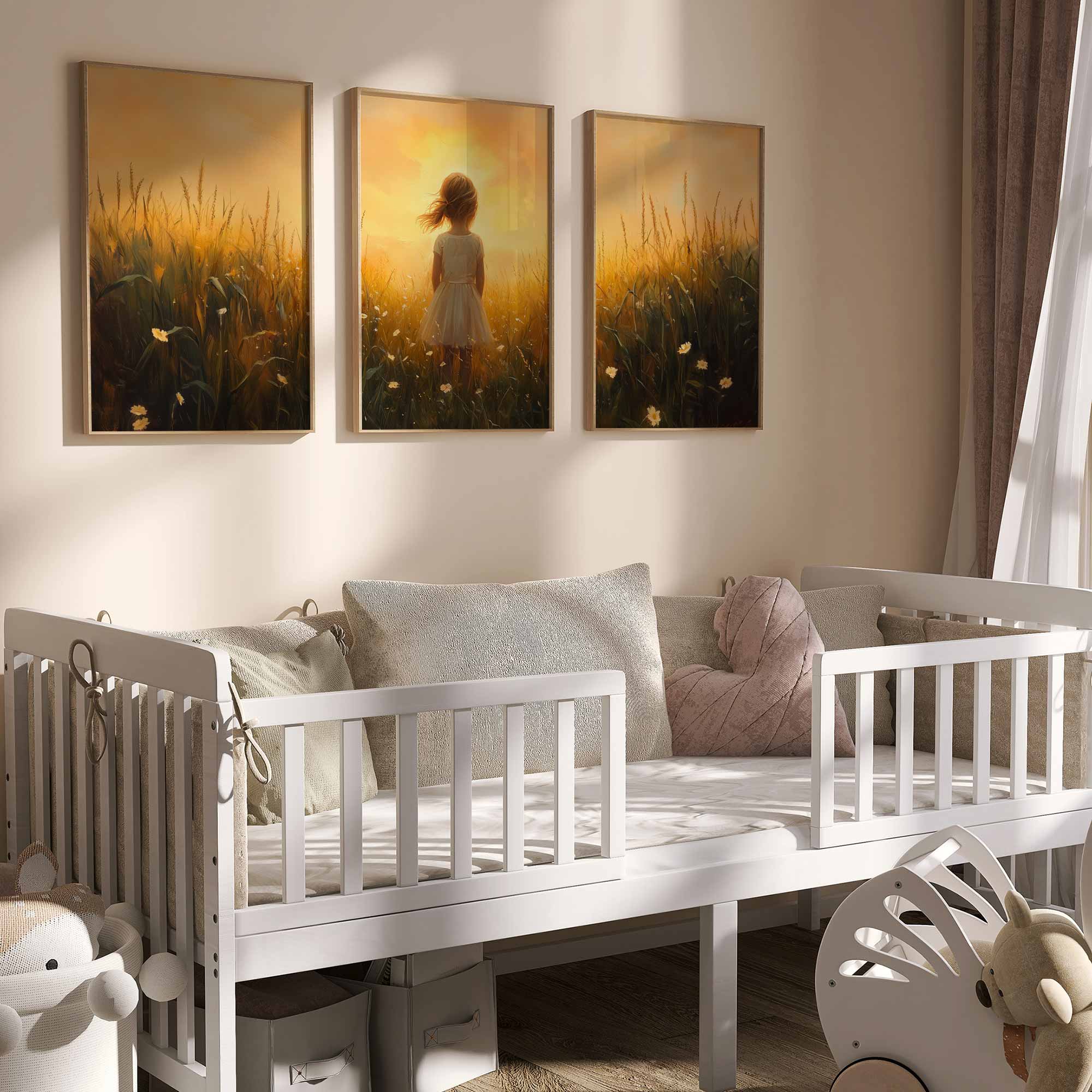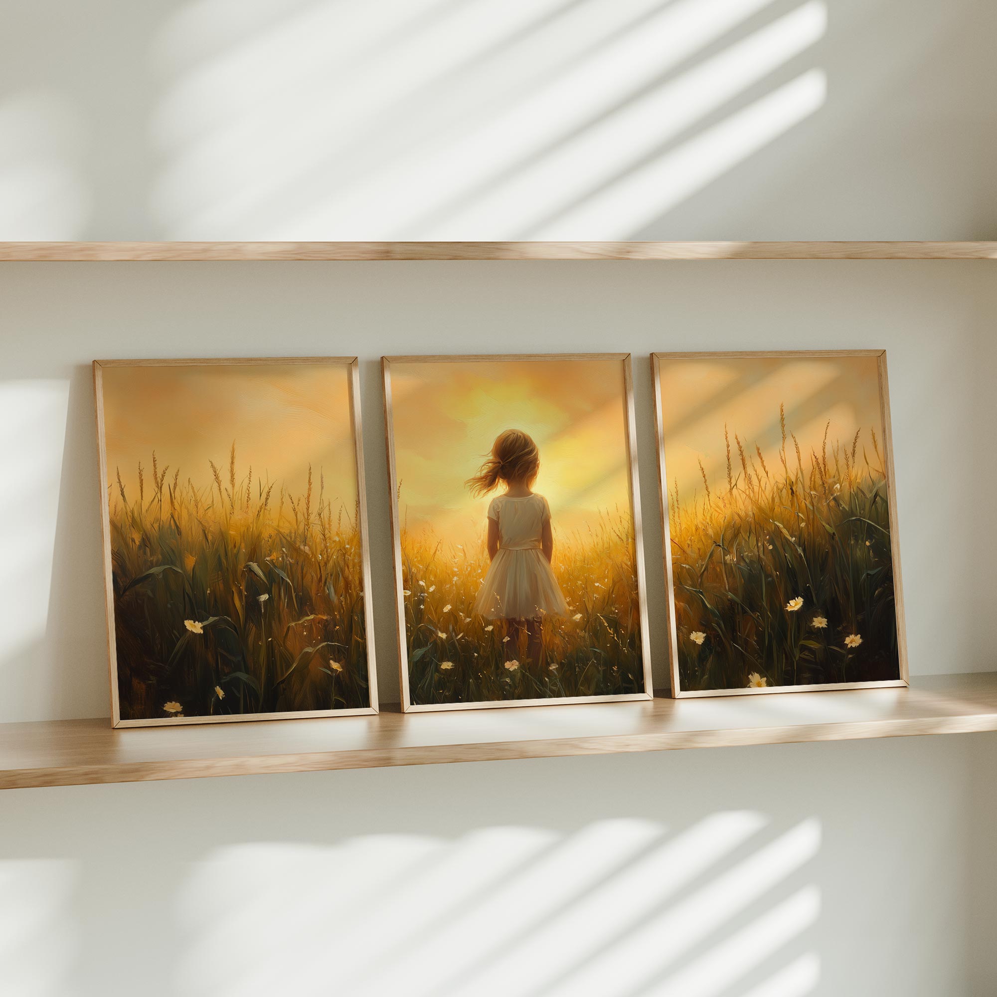 Zonnige Zomerweide met Meisje in Witte Jurk