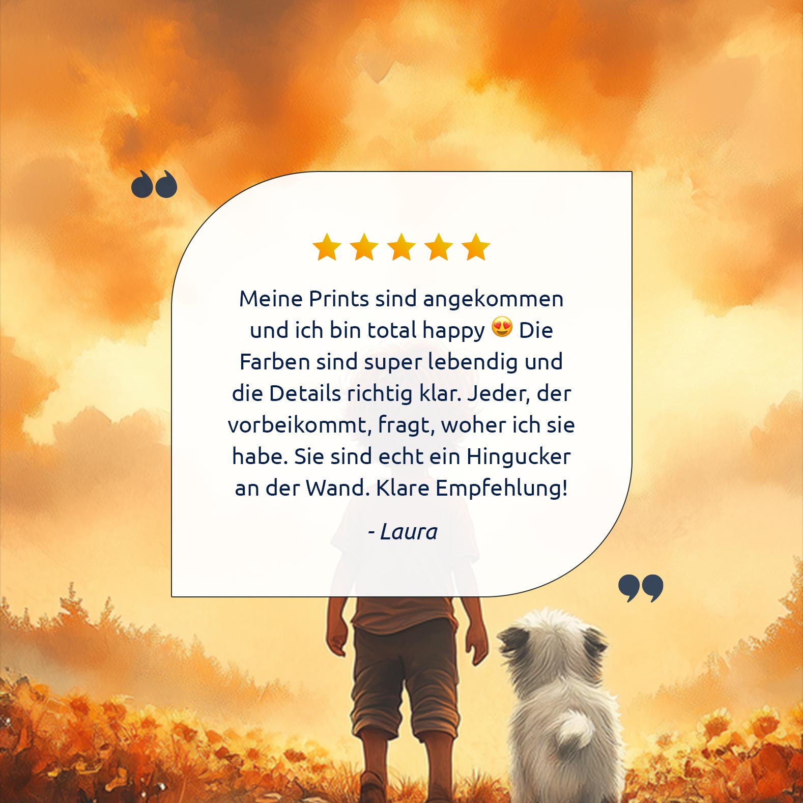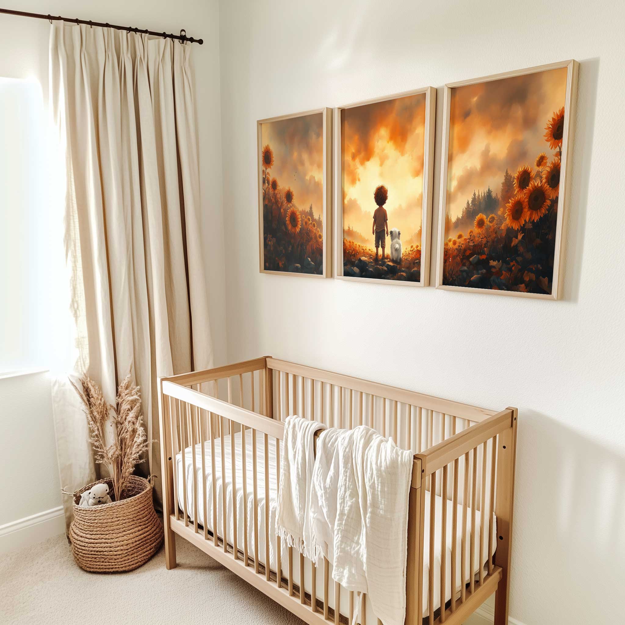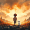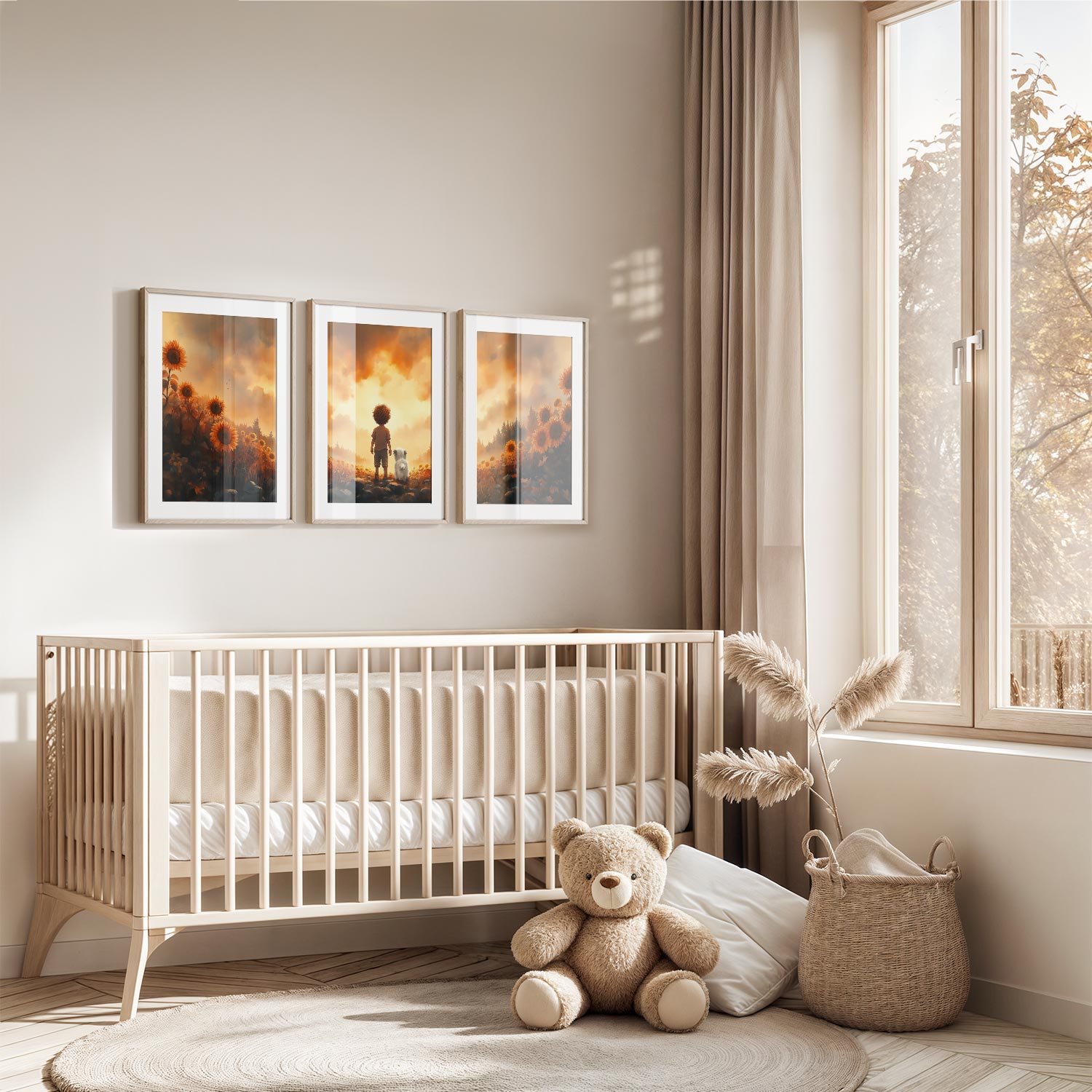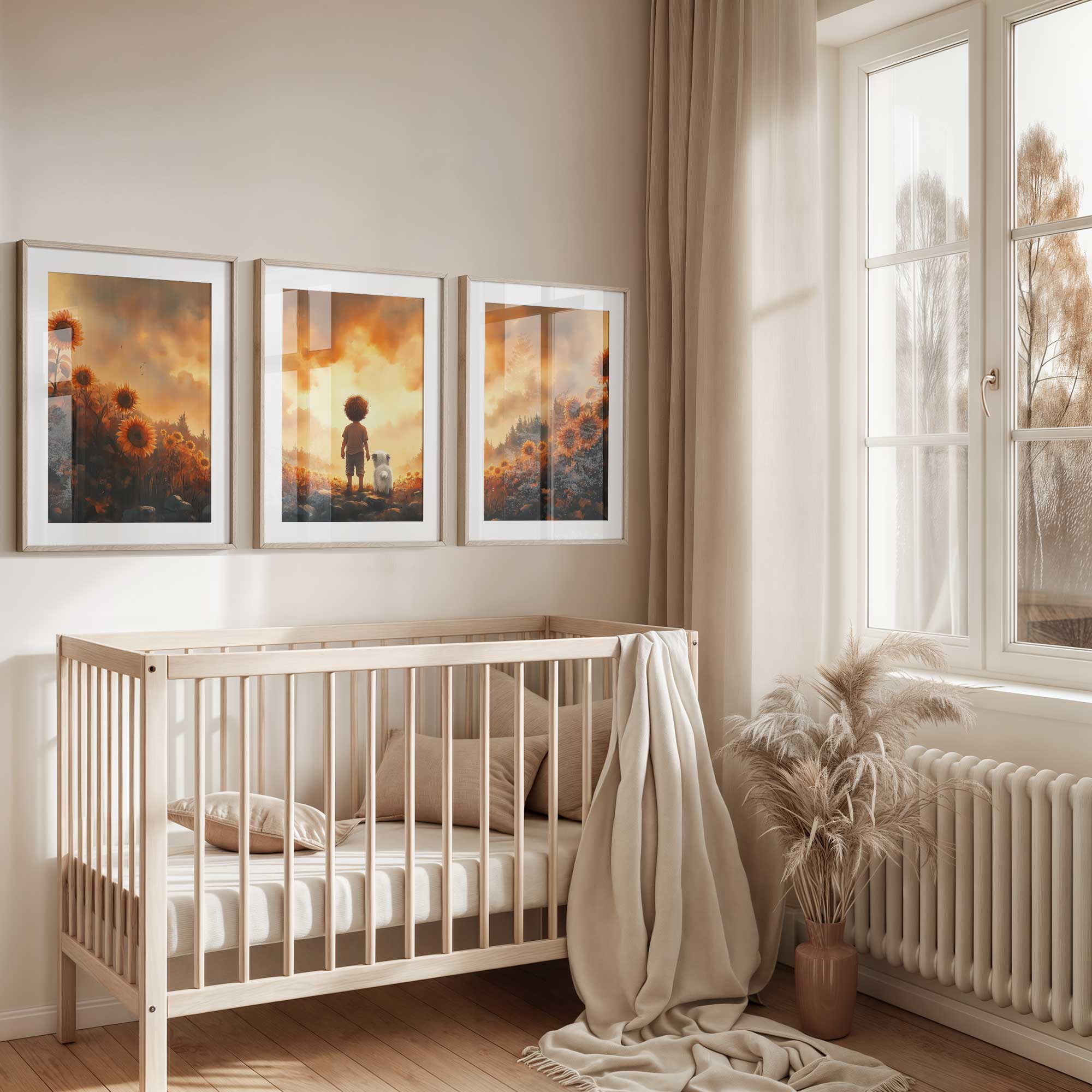 Terug naar collectie Posters Zonnige Zonnebloemavonturen met Jongen en Hond