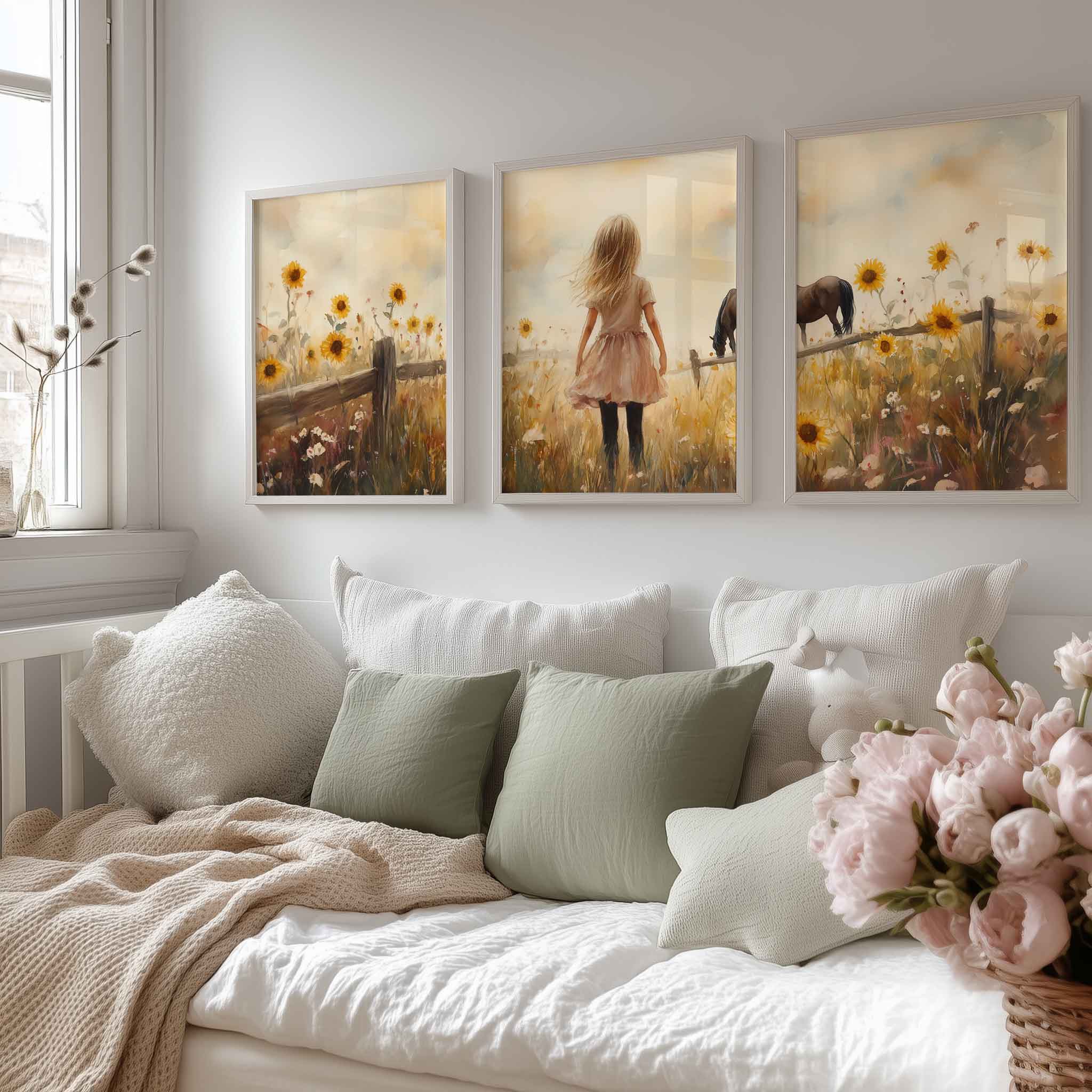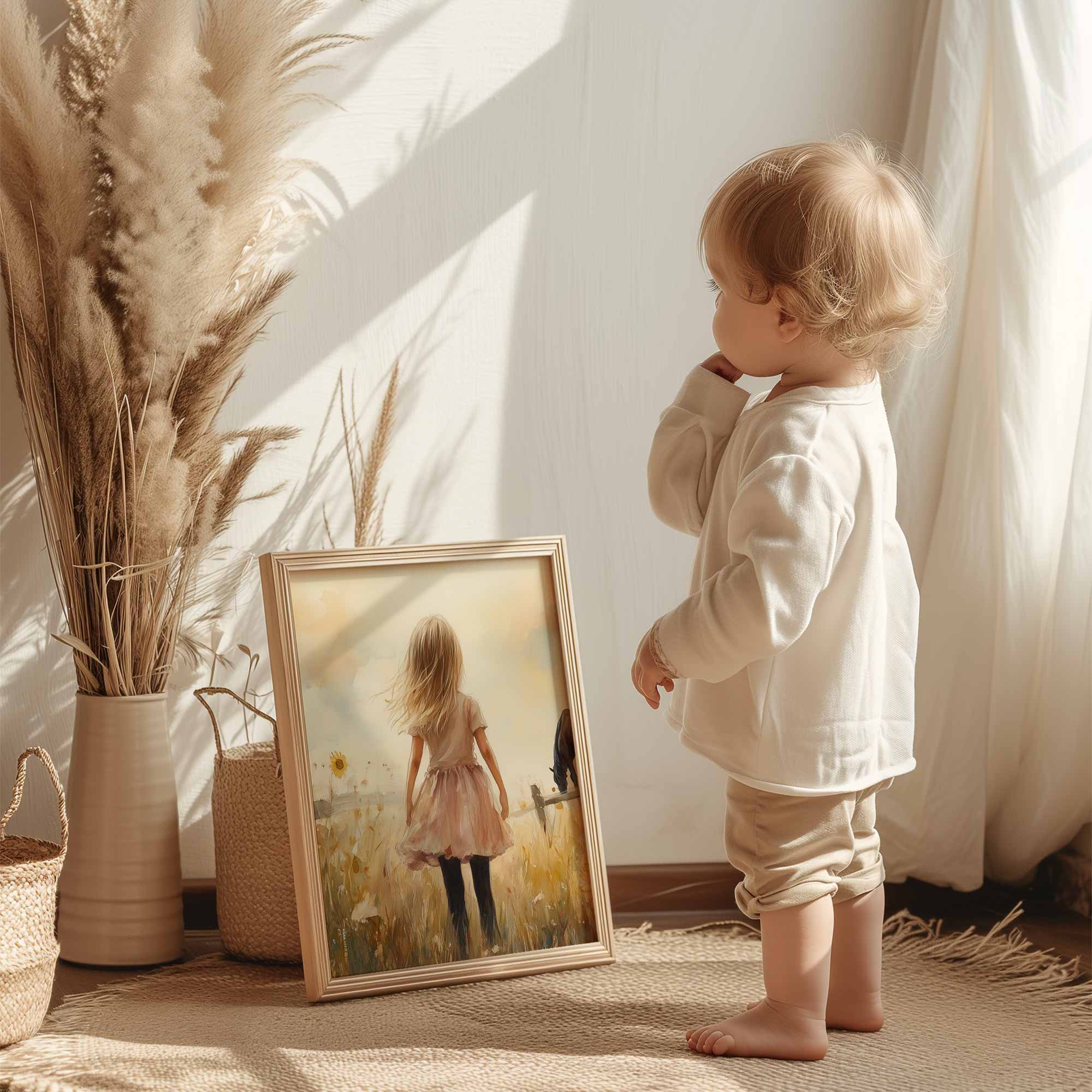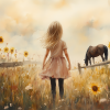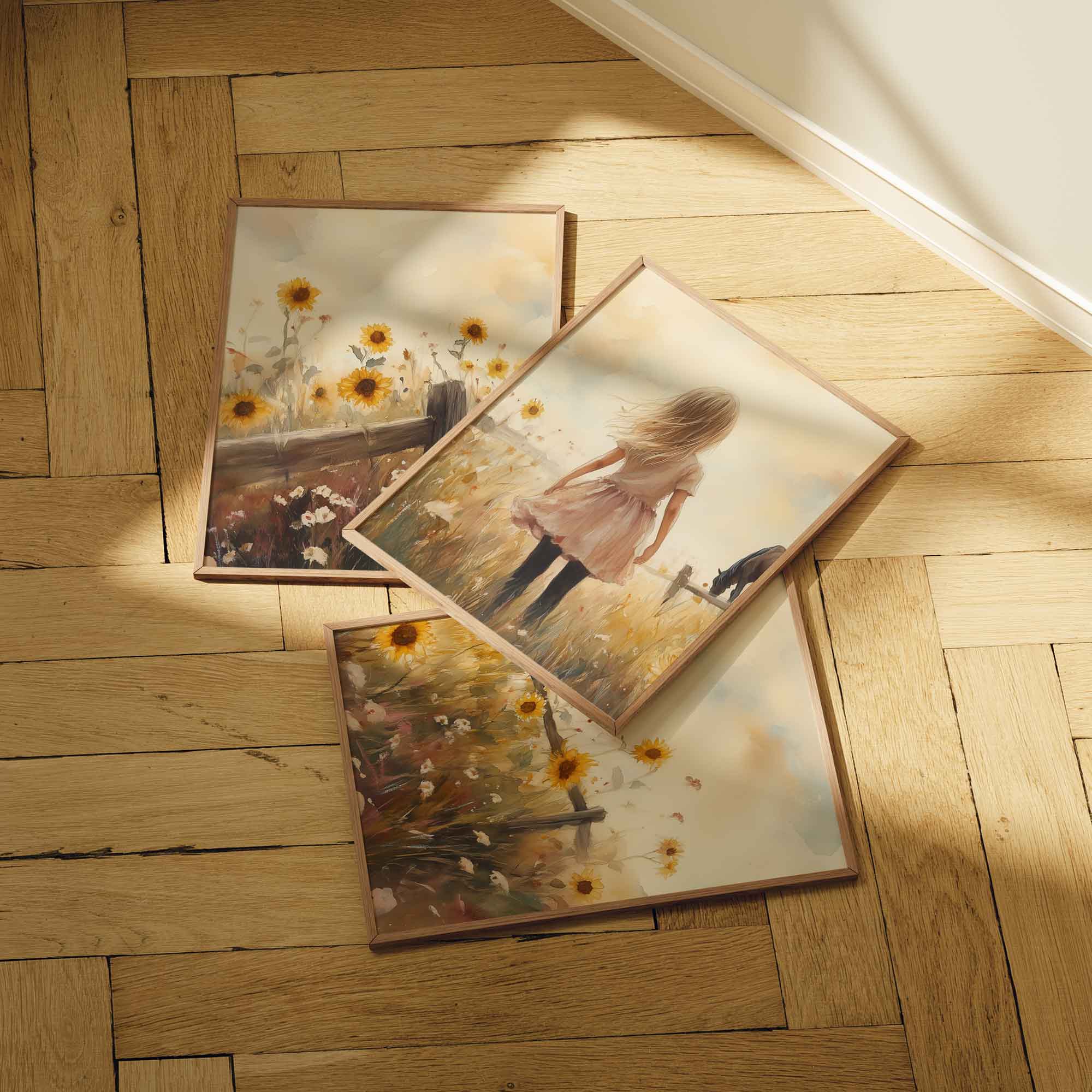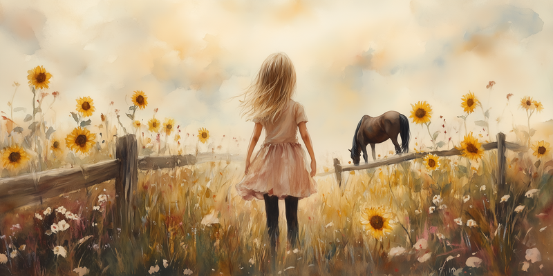 Zonnige Zonnebloemen en een Dromerig Meisje