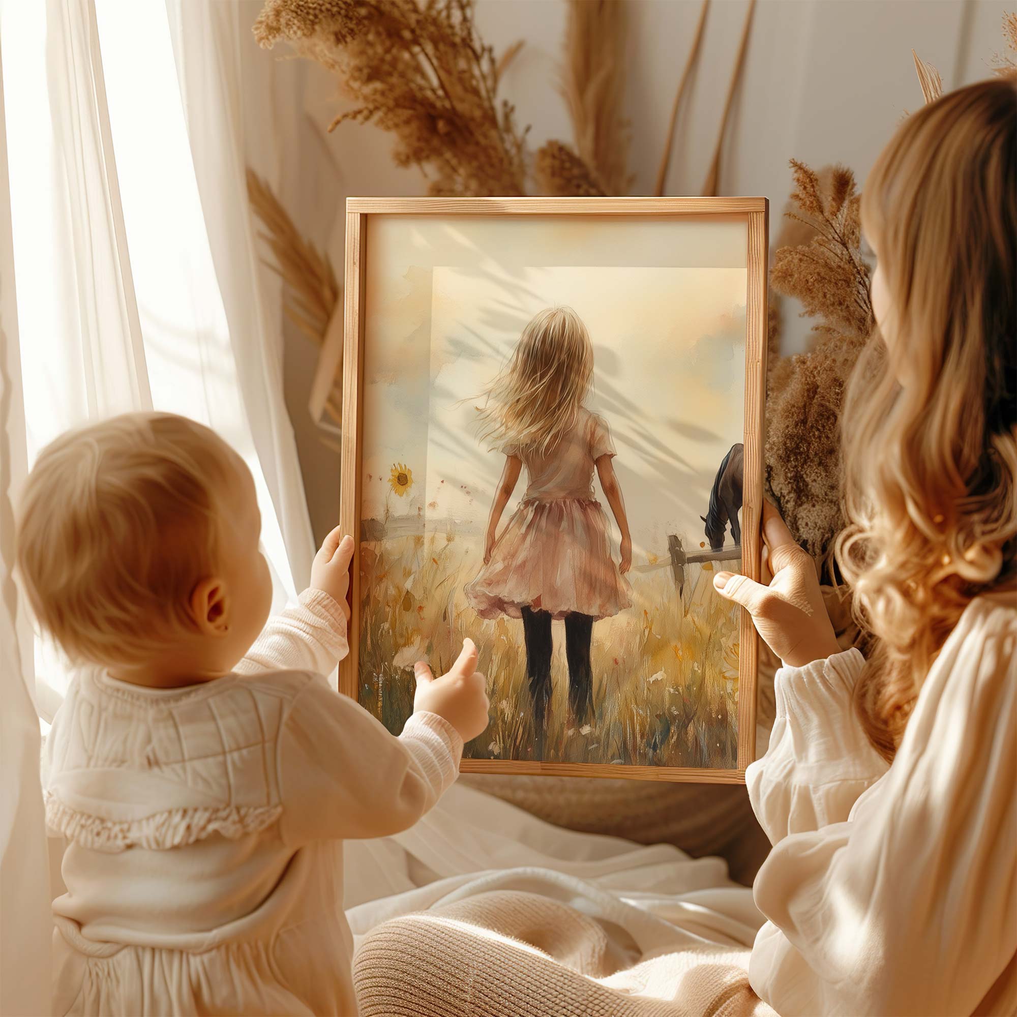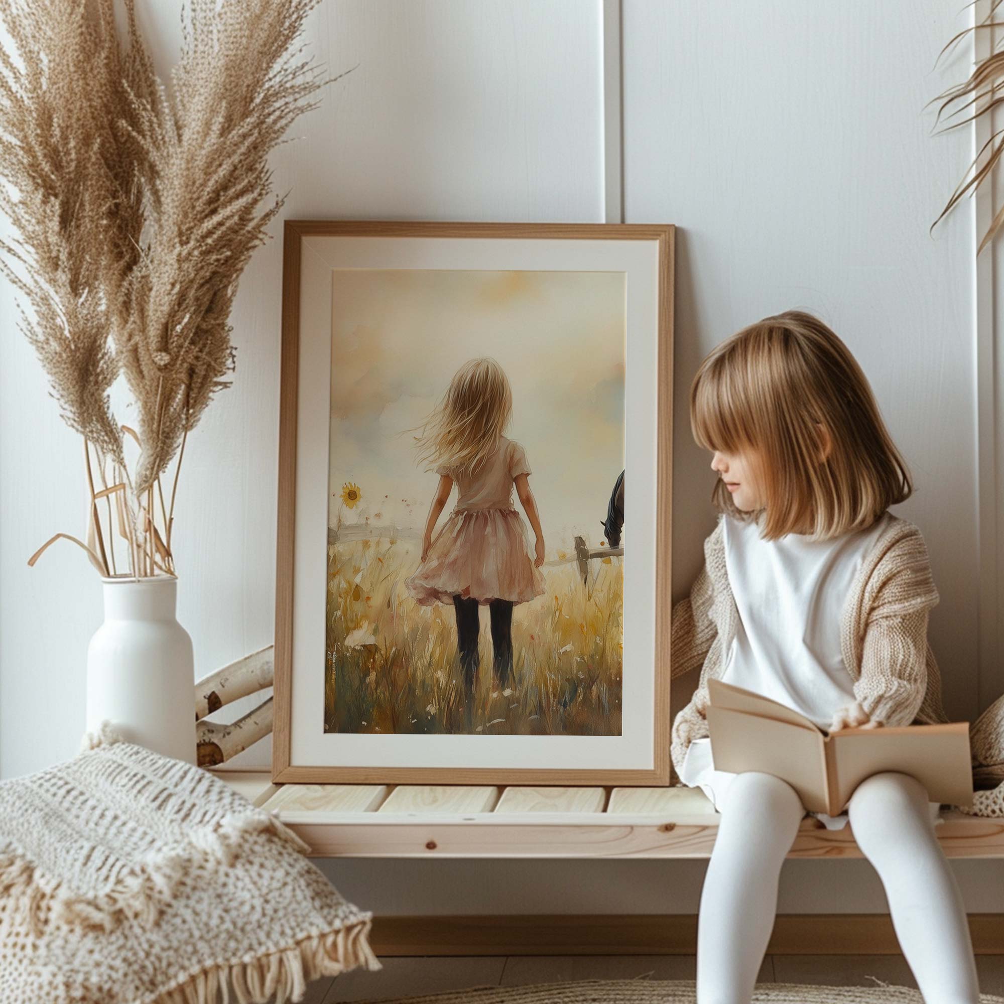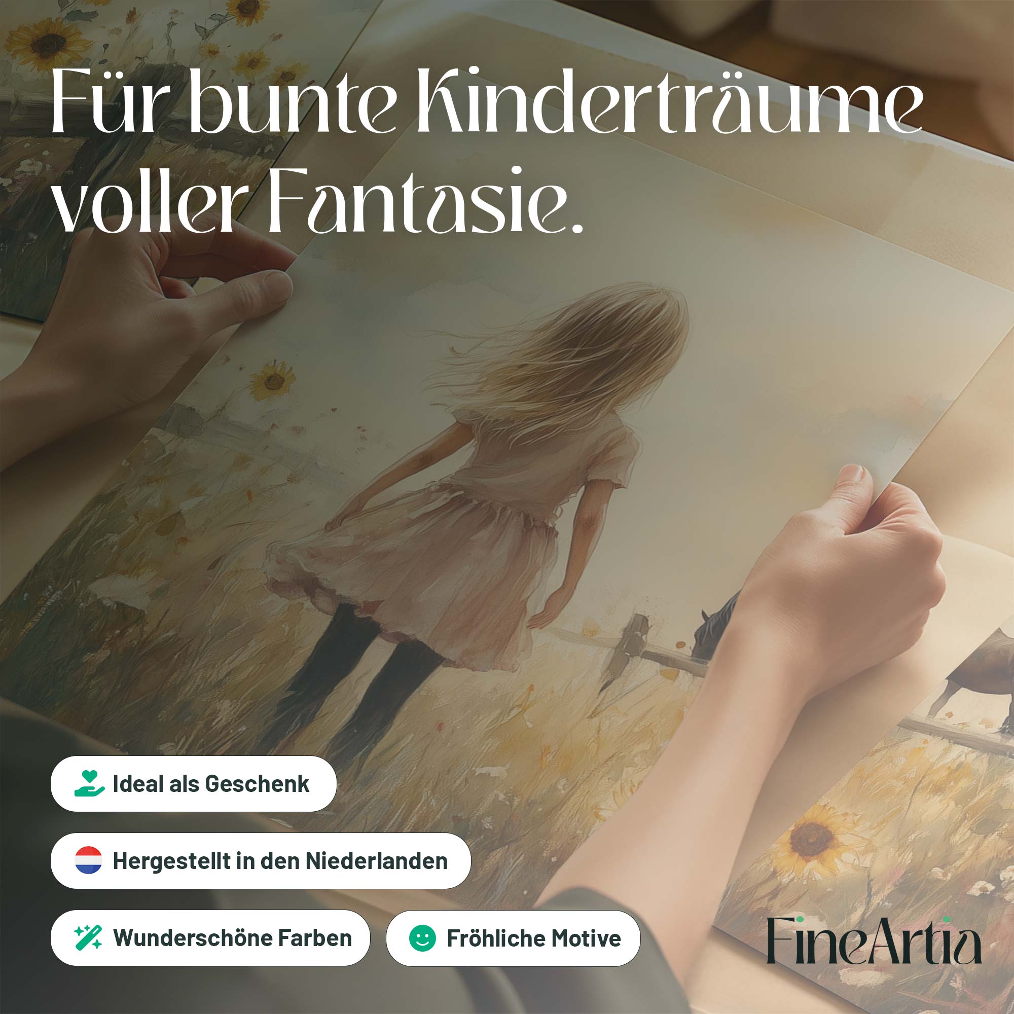 Zonnige Zonnebloemen en een Dromerig Meisje