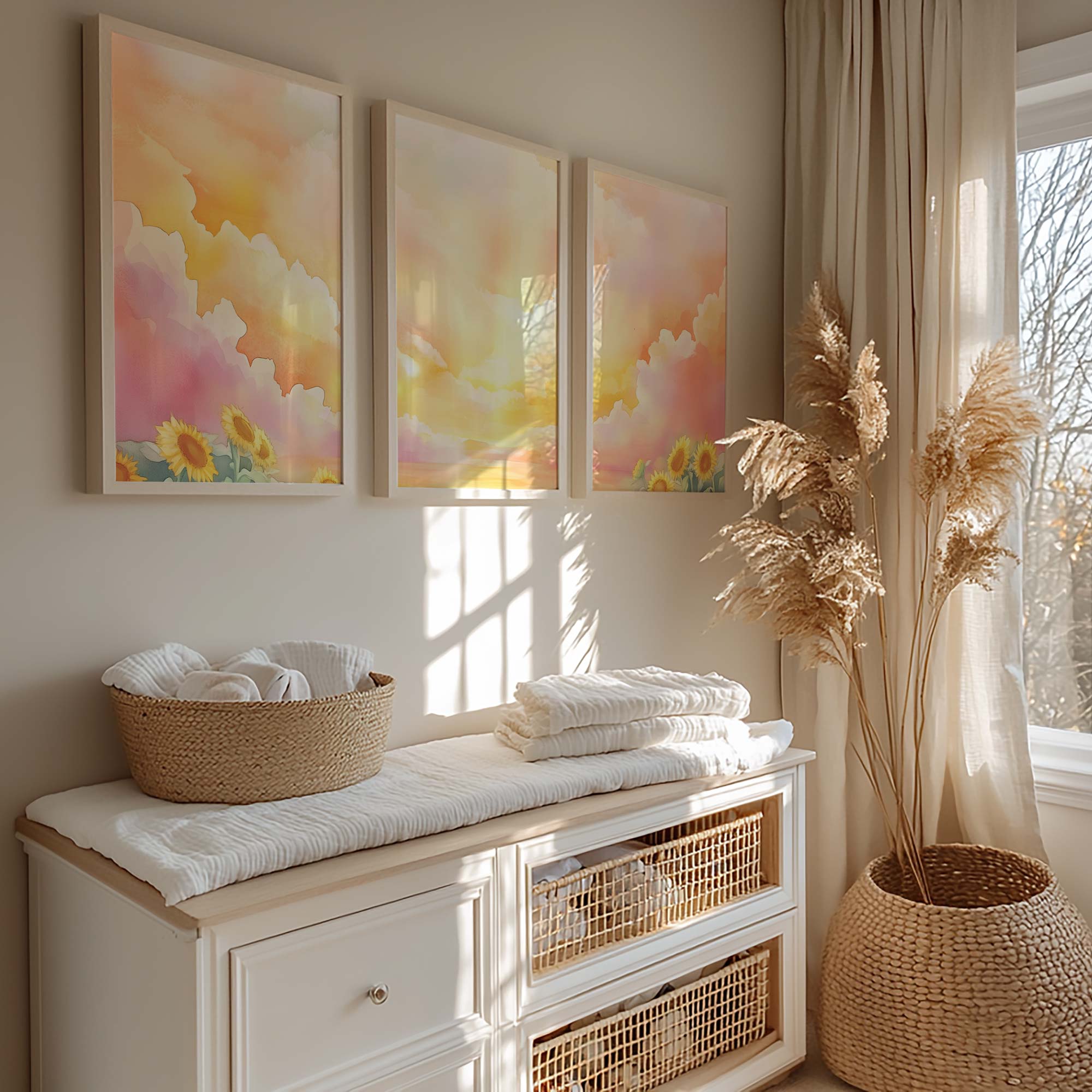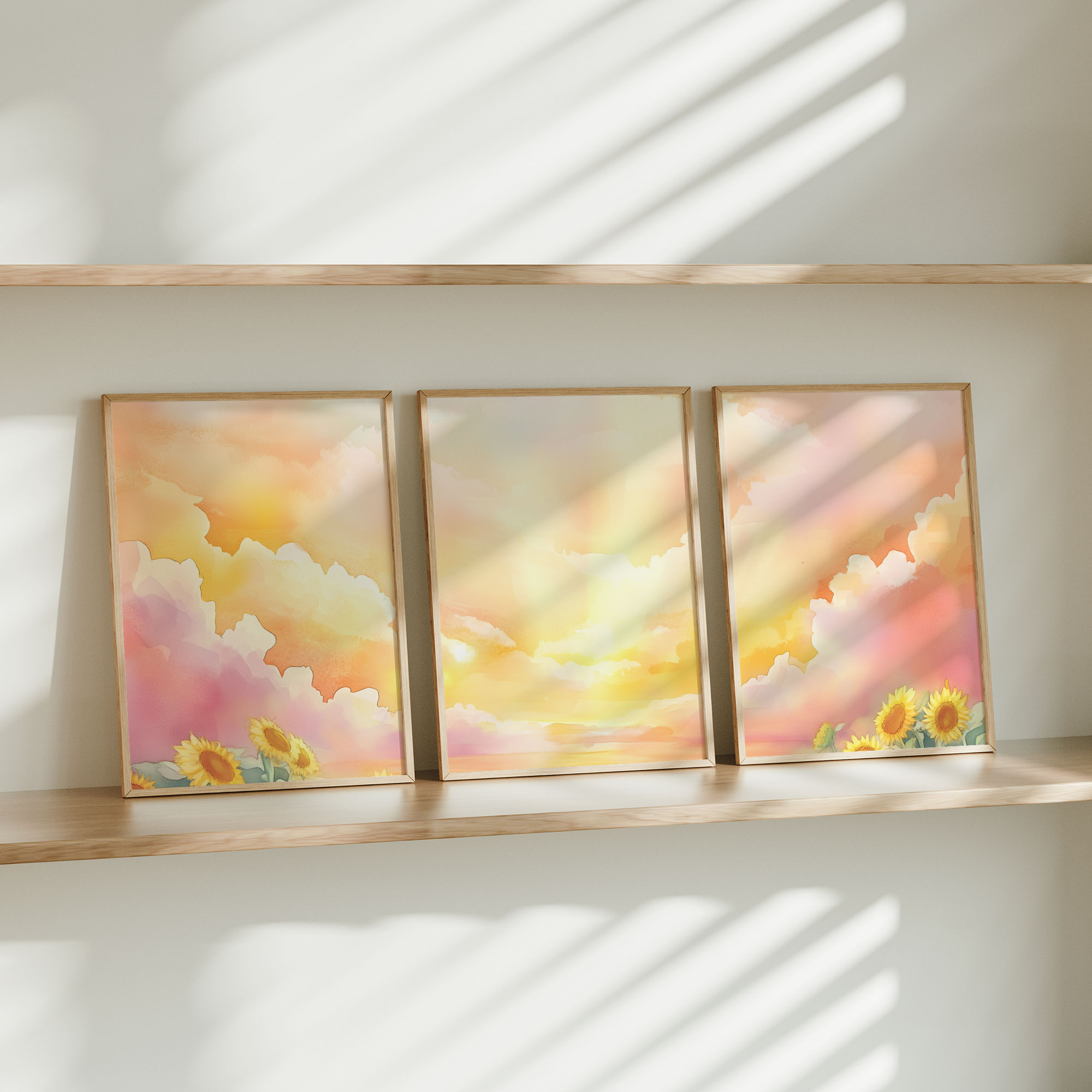 Terug naar collectie Posters Zonnige Zonsondergang met Vrolijke Zonnebloemen