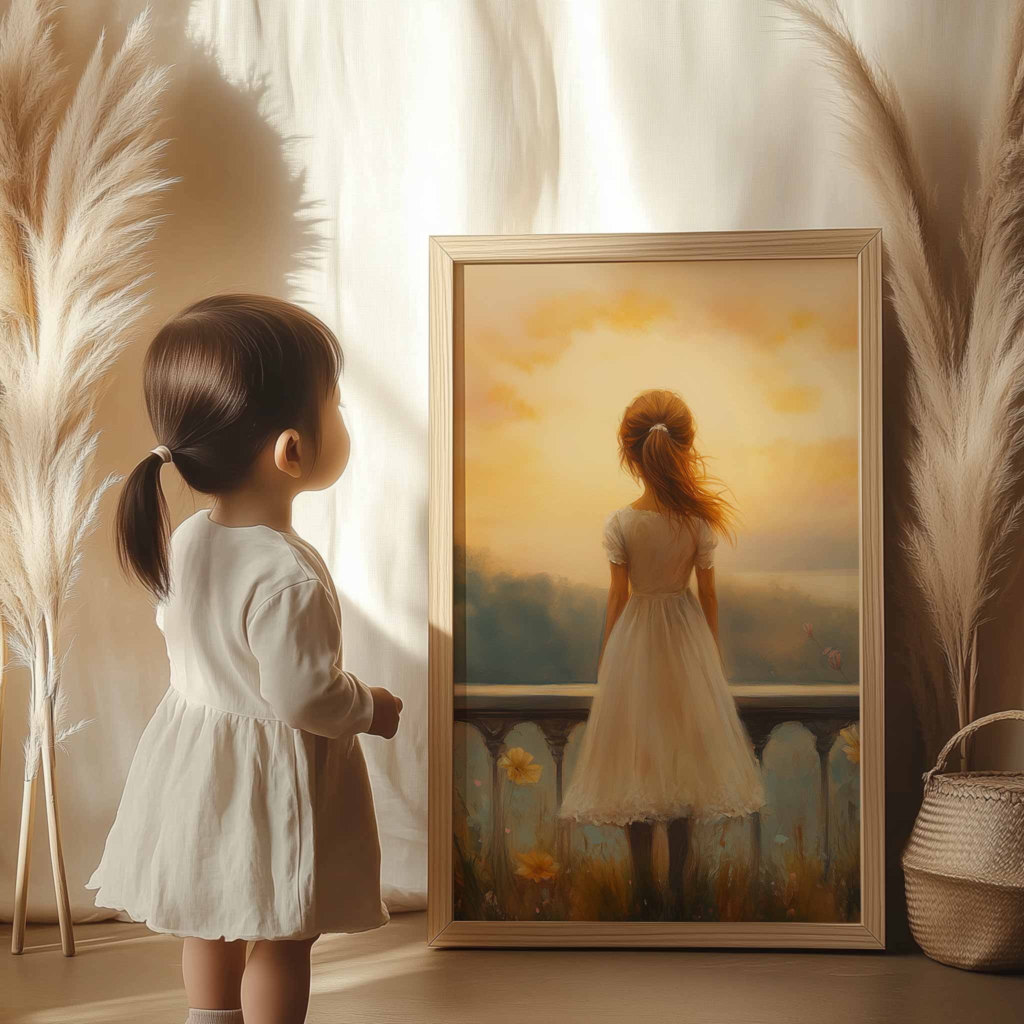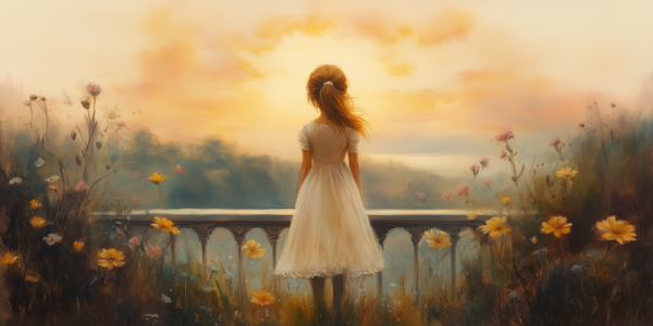 Zonsondergang op het balkon – Dromerig meisje in wit
