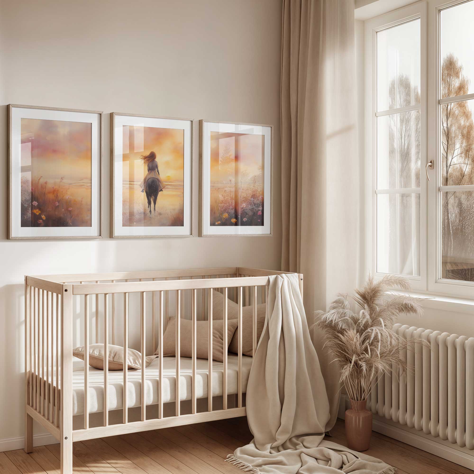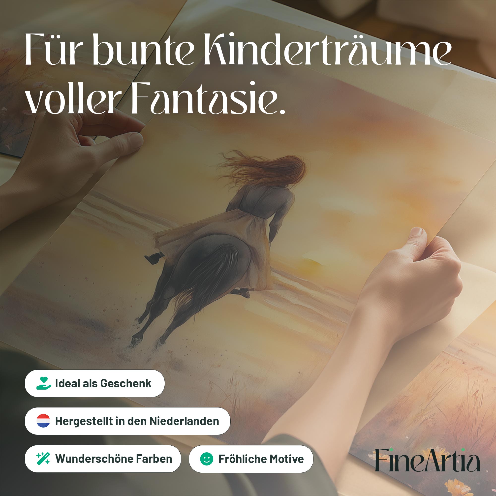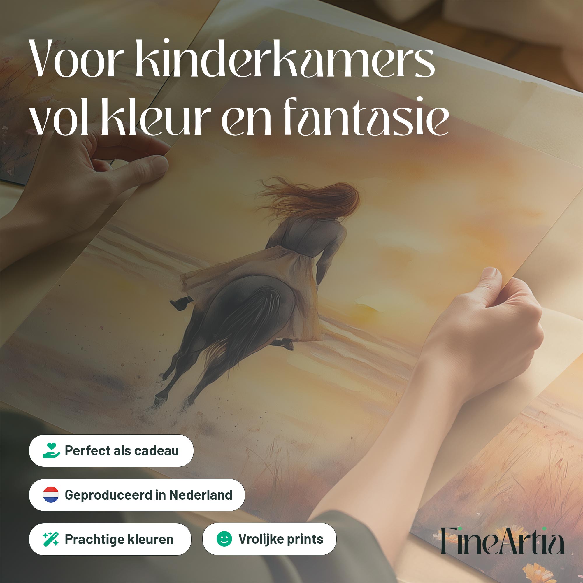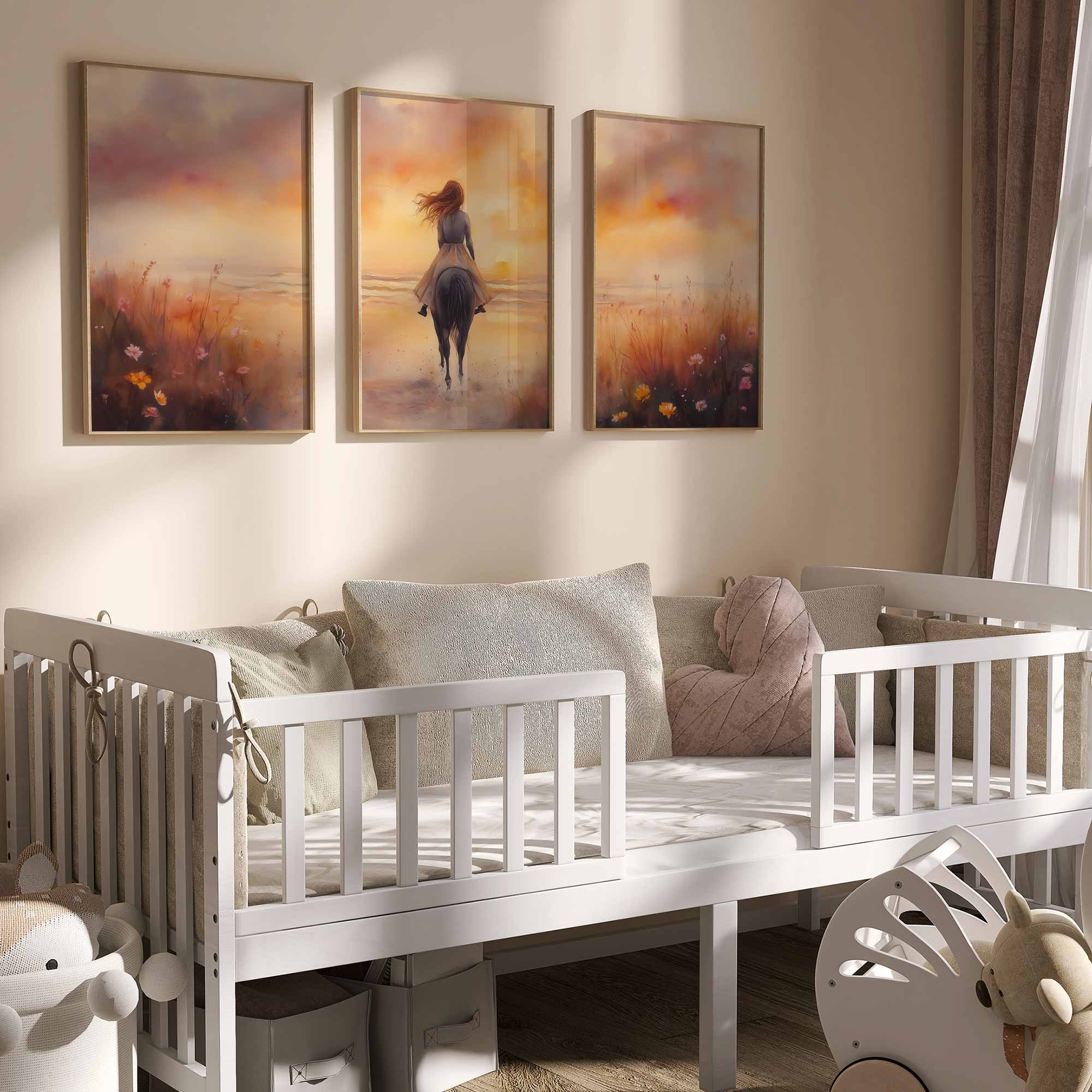 Zonsondergang op het strand met paard en droommeisje