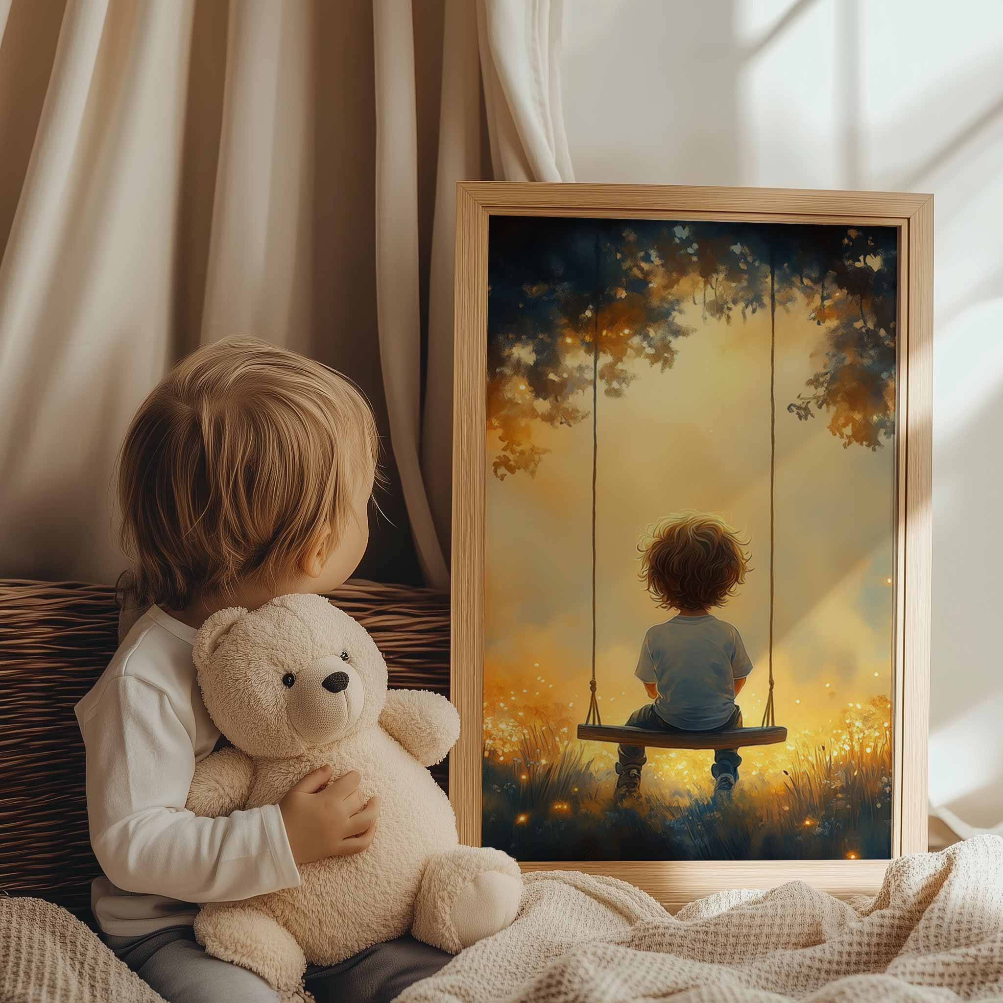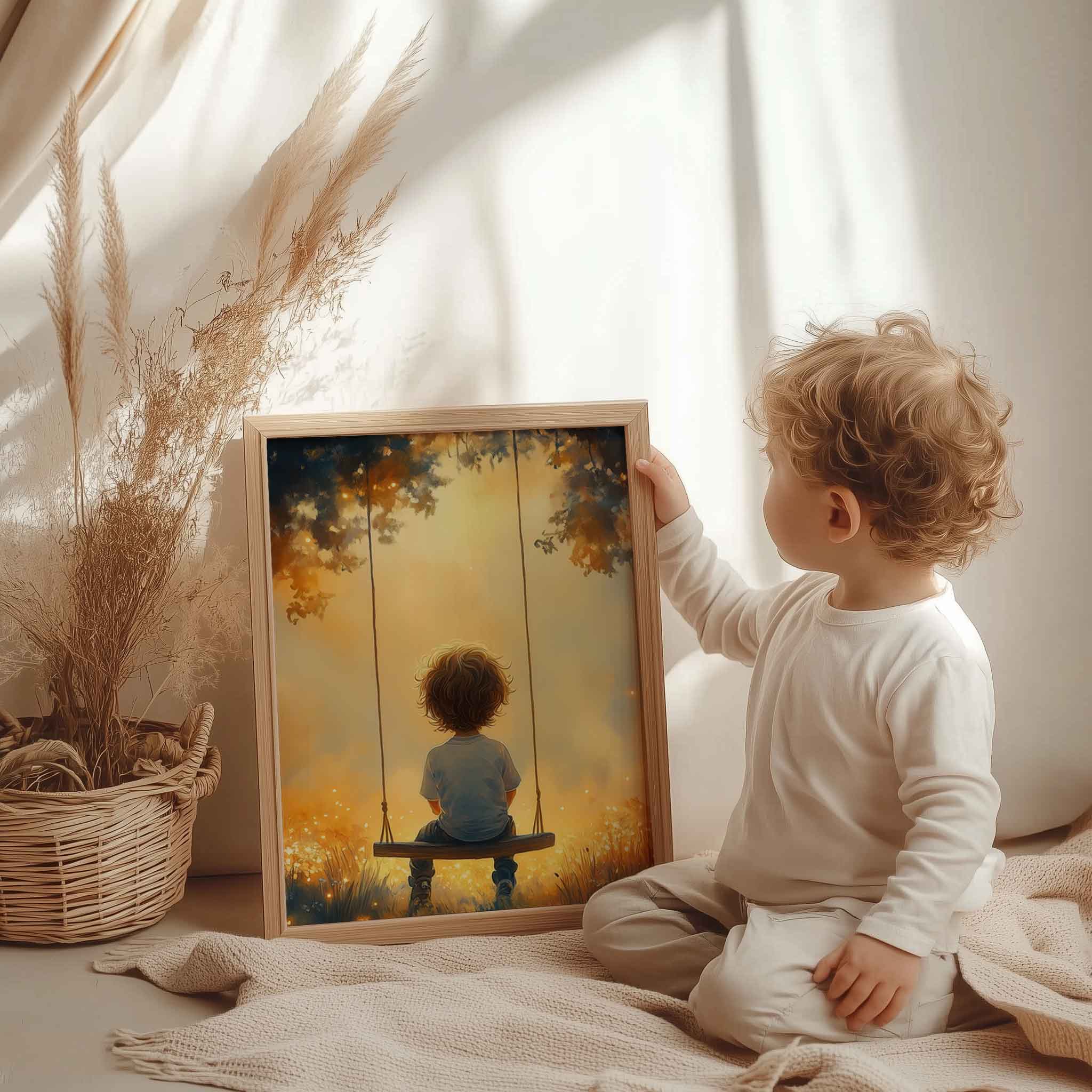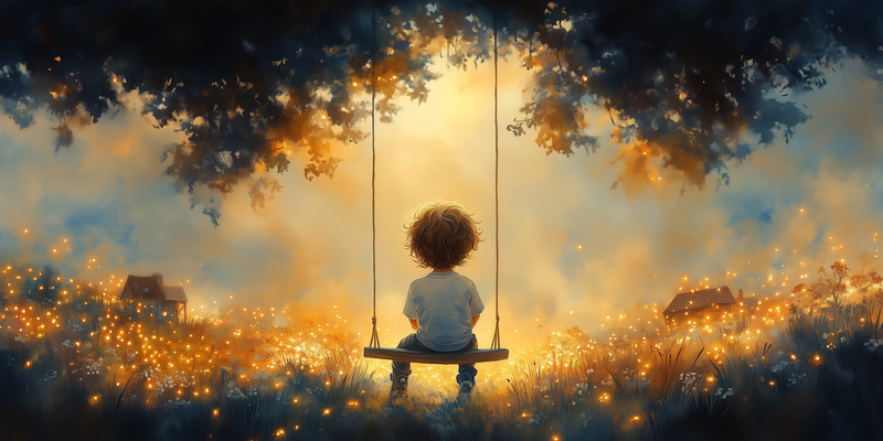 Zonsondergang Zwiebelend Jongetje in Bloemenveld
