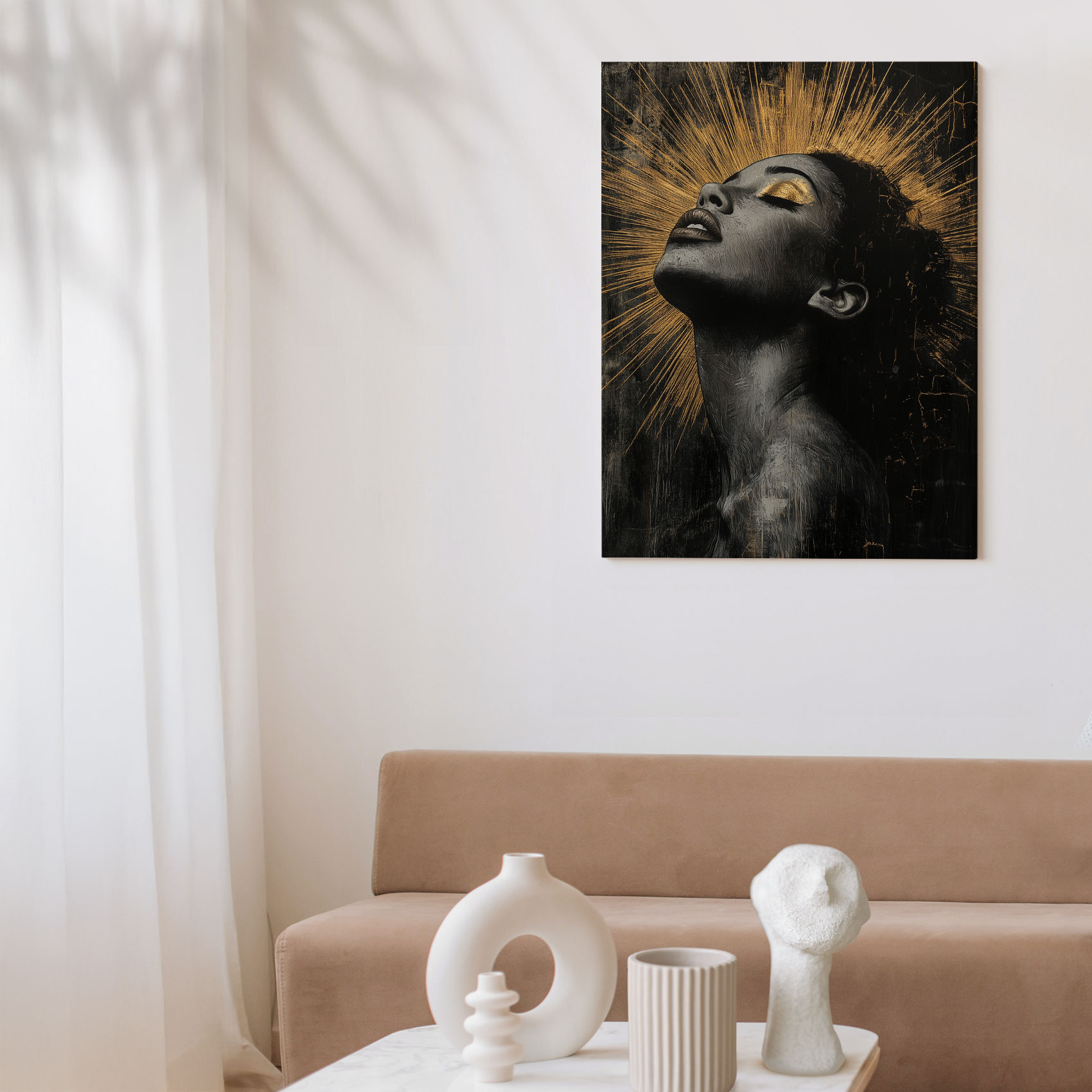 Terug naar collectie Canvas Zwart-gouden vrouwportret