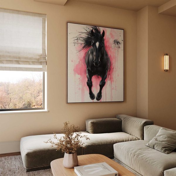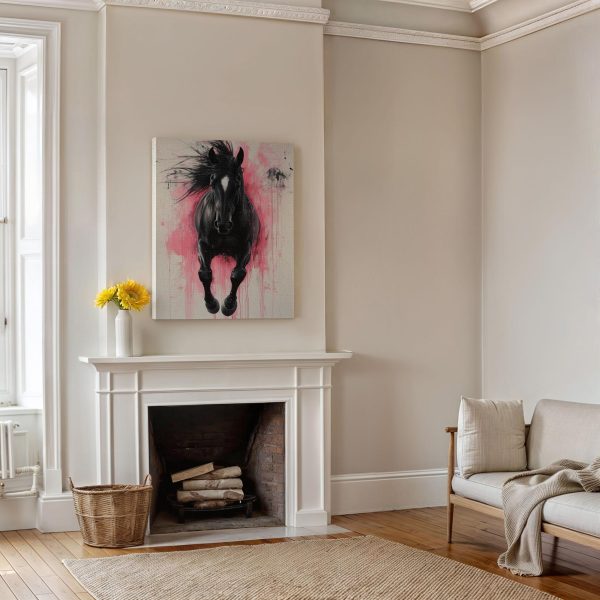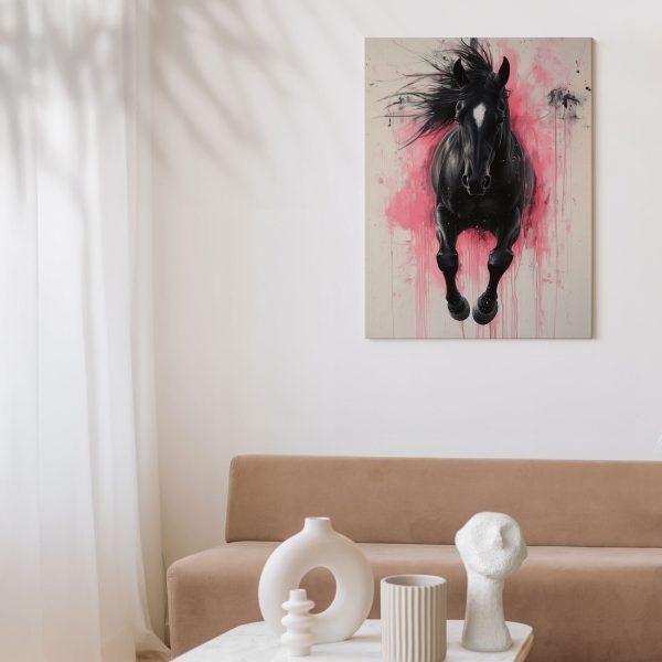 Terug naar collectie Canvas Zwart paard in dynamische galop