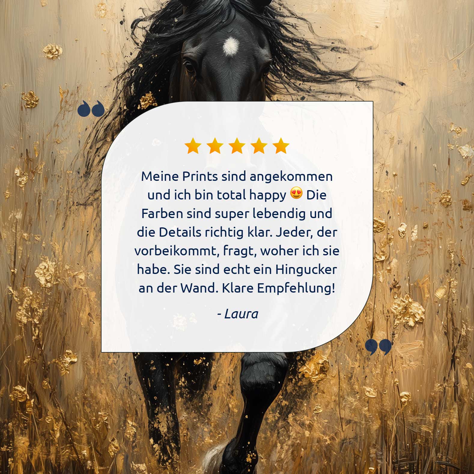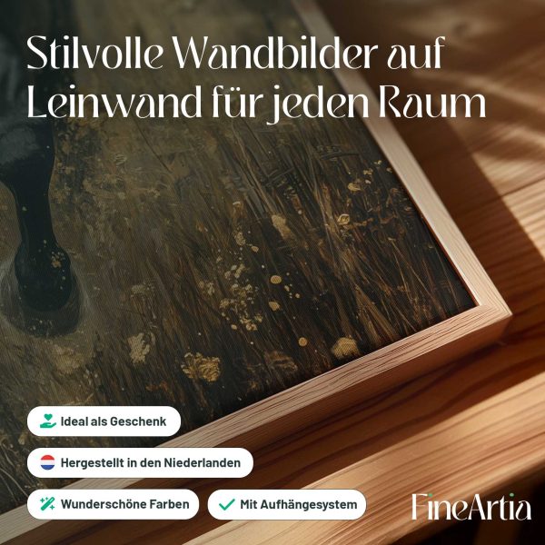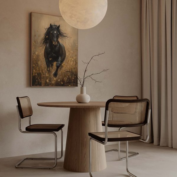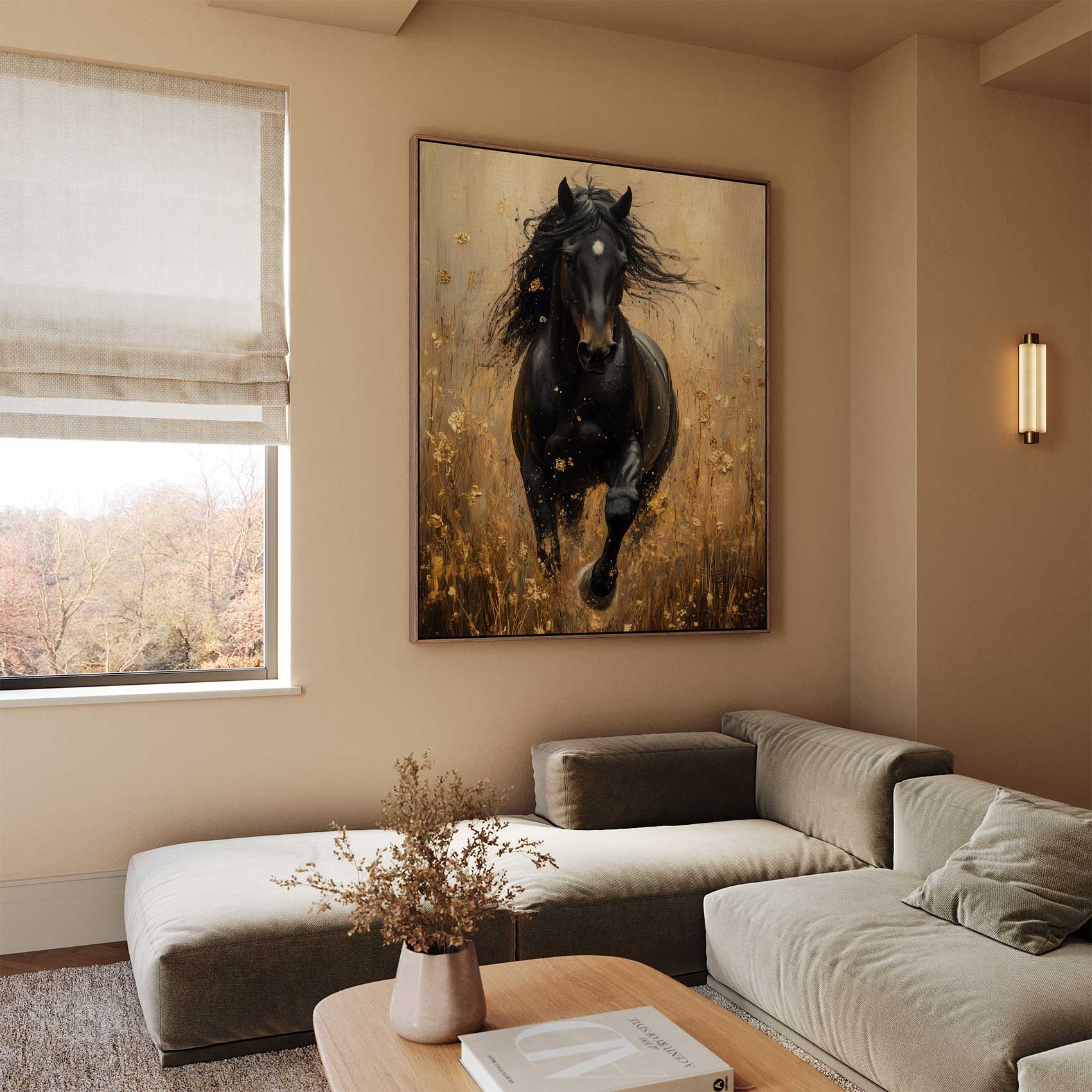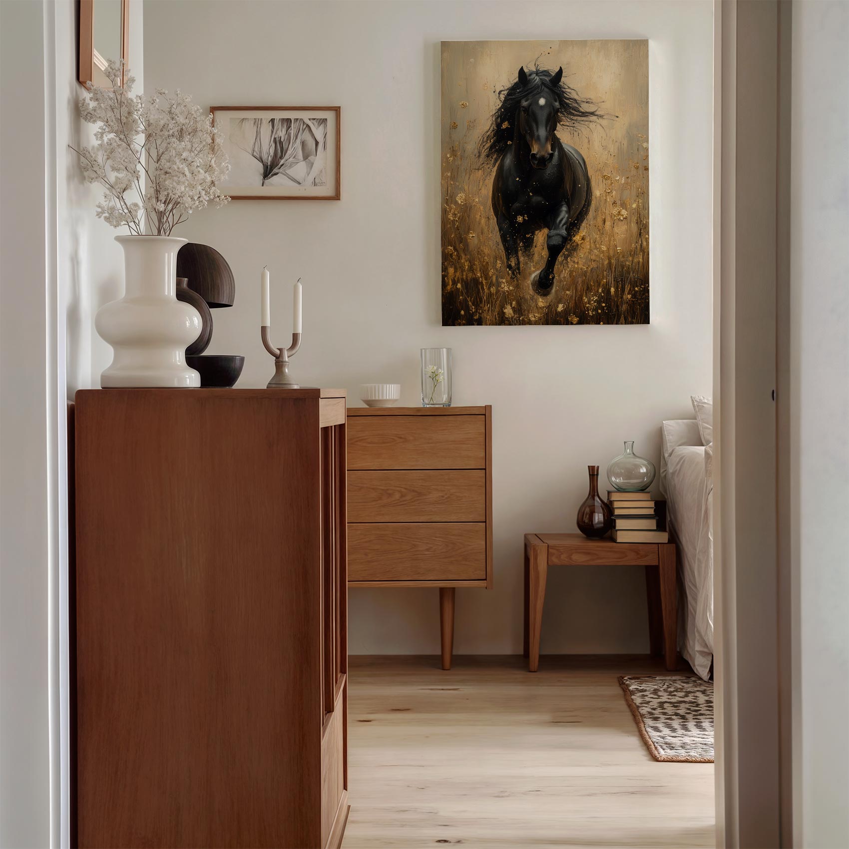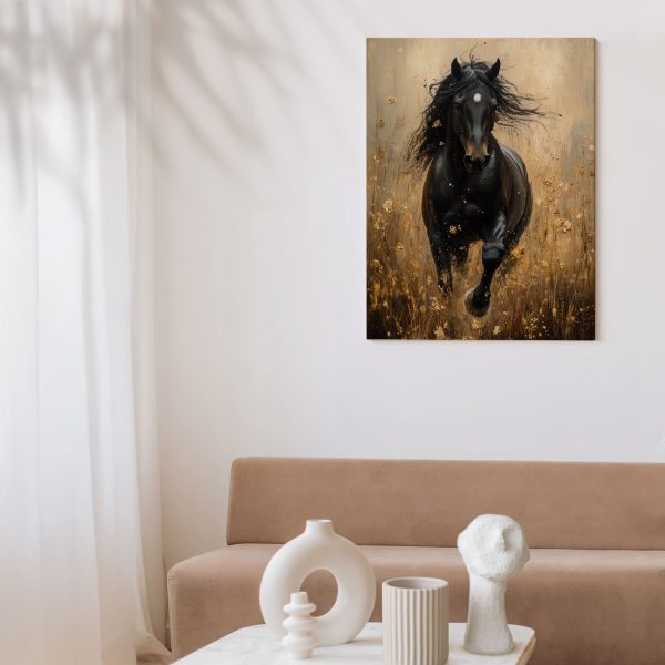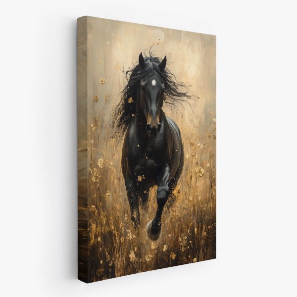 Terug naar collectie Canvas Zwart paard in gouden veld
