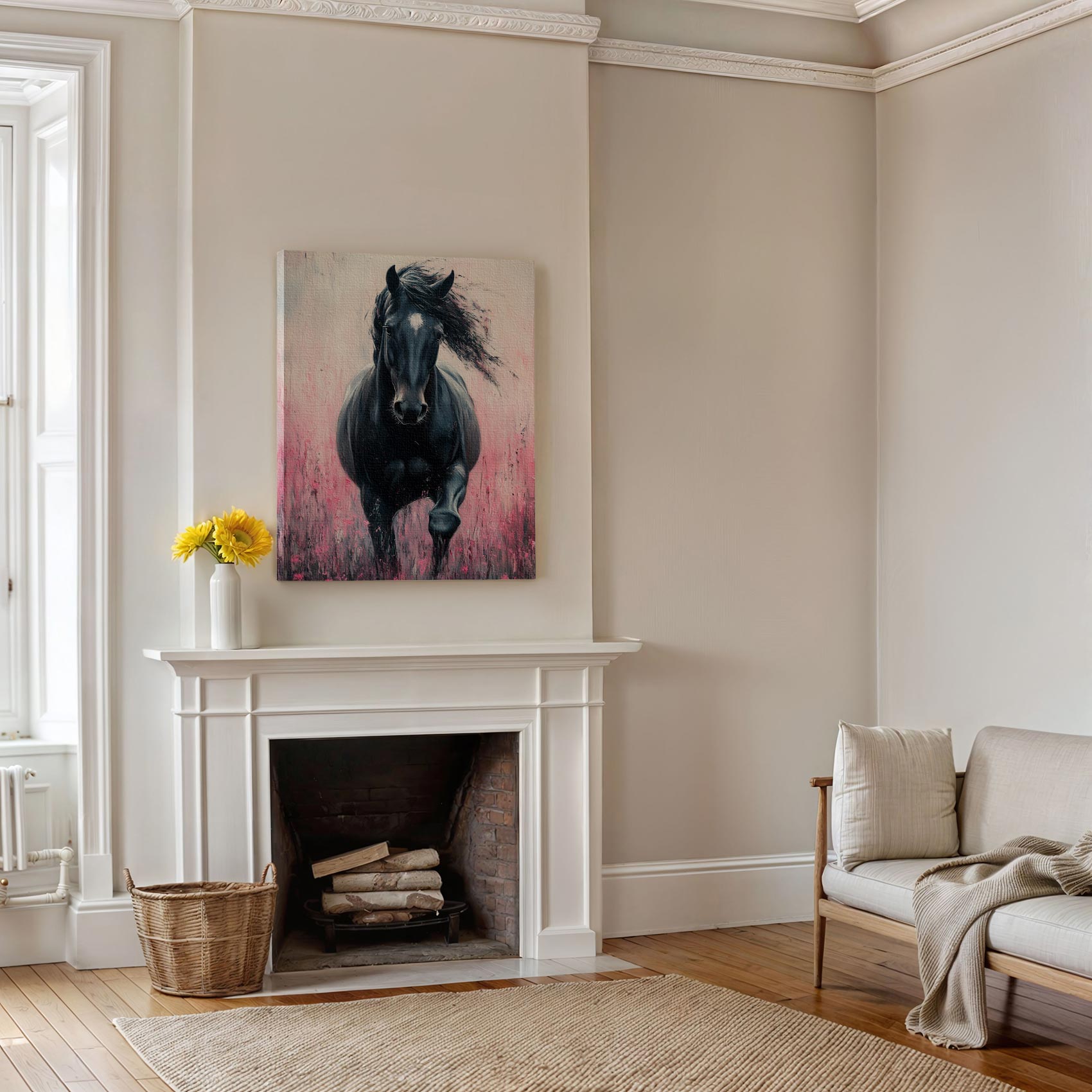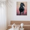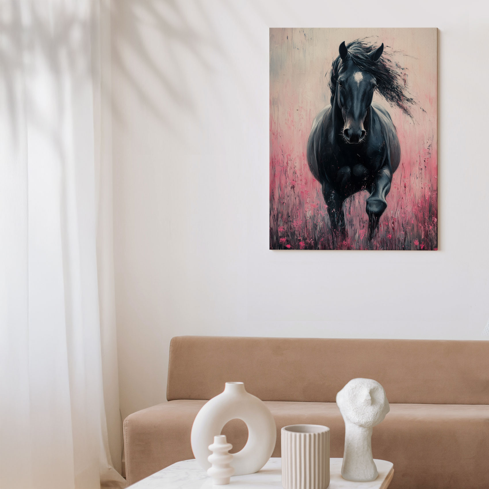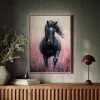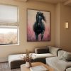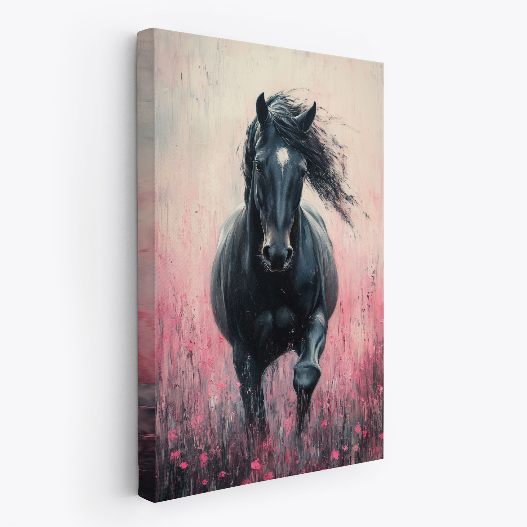Zwart paard in roze bloemen
