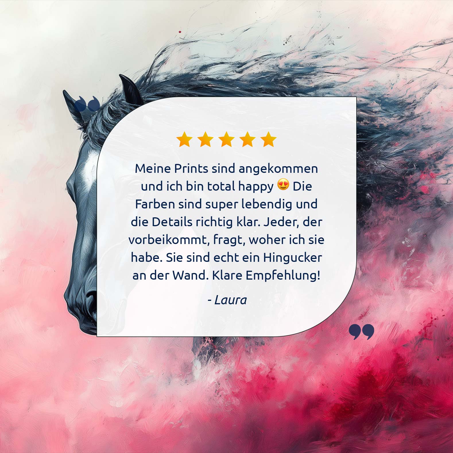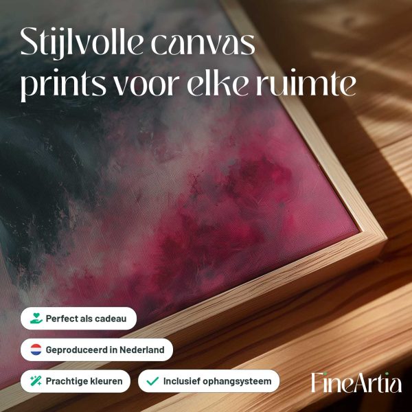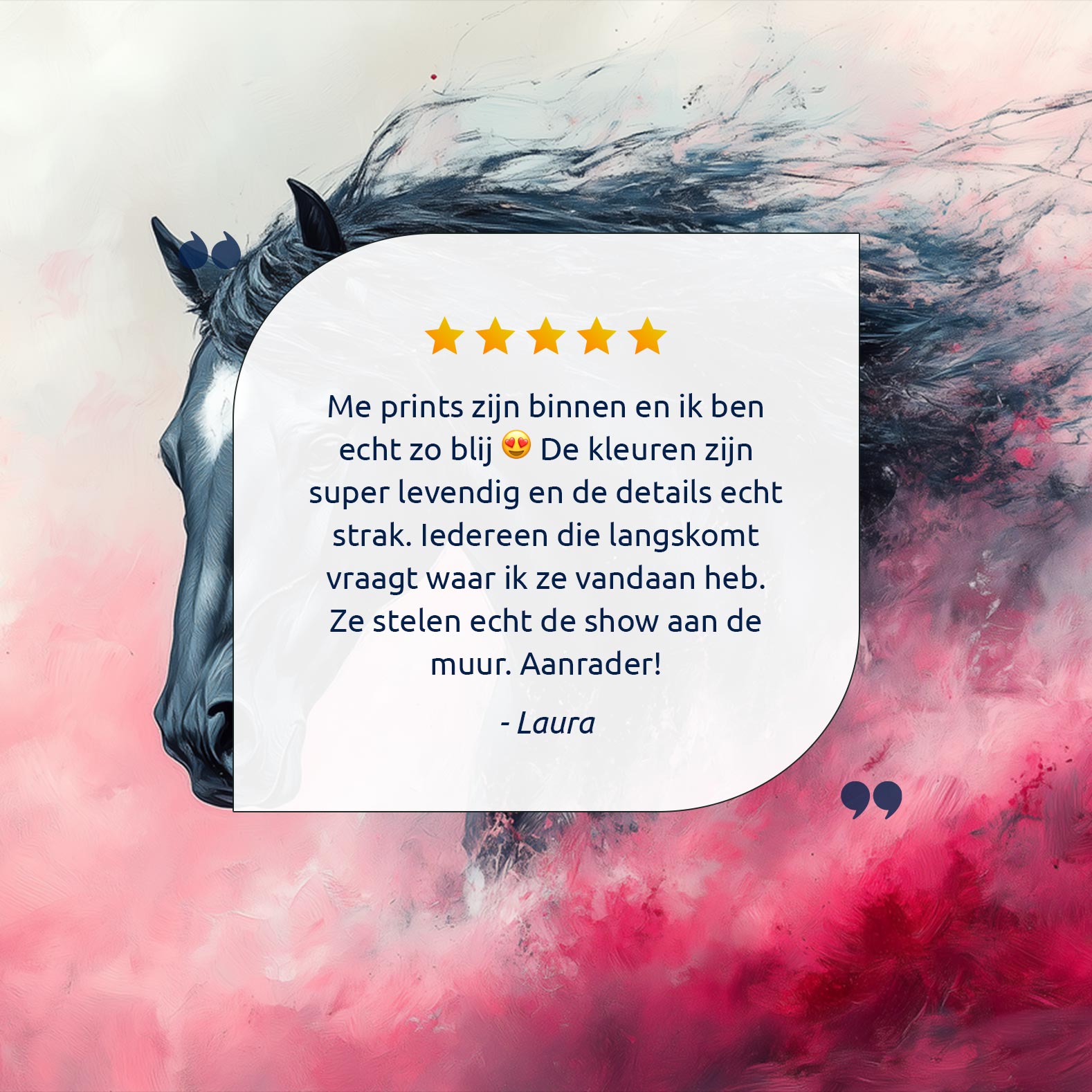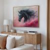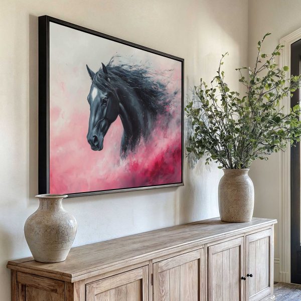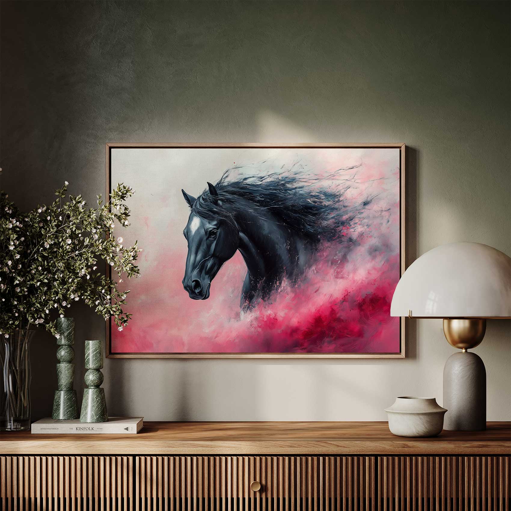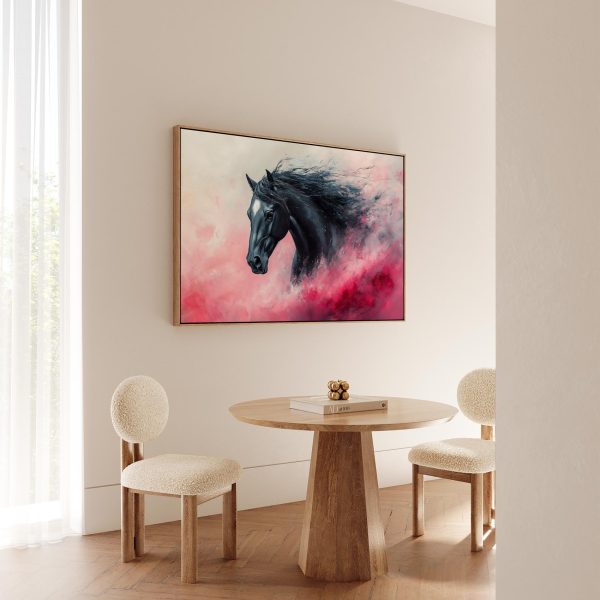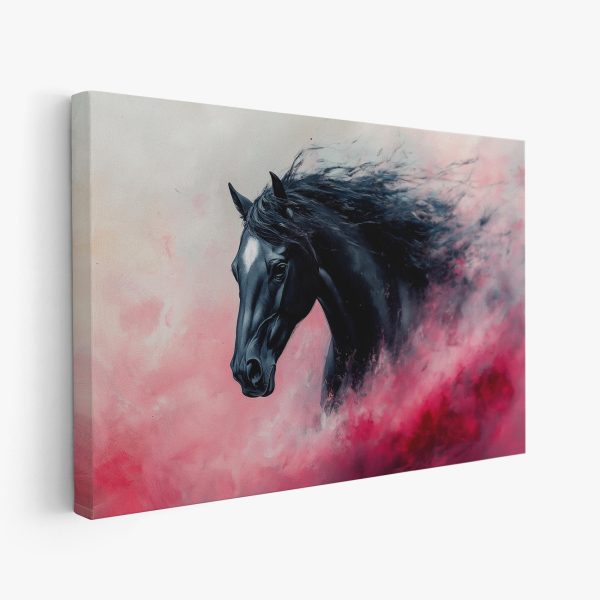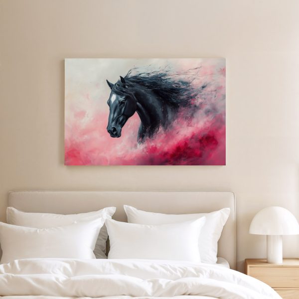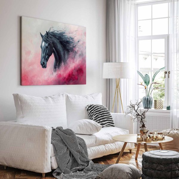 Terug naar collectie Canvas Zwart paard in vlammend roze