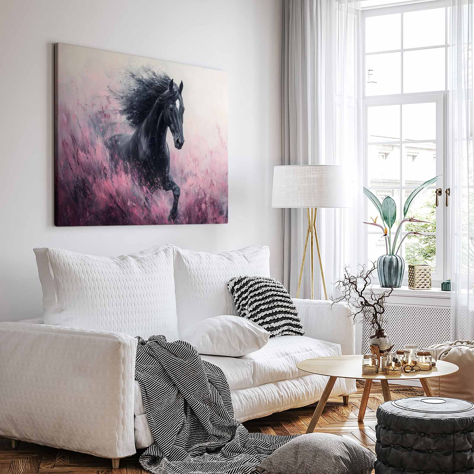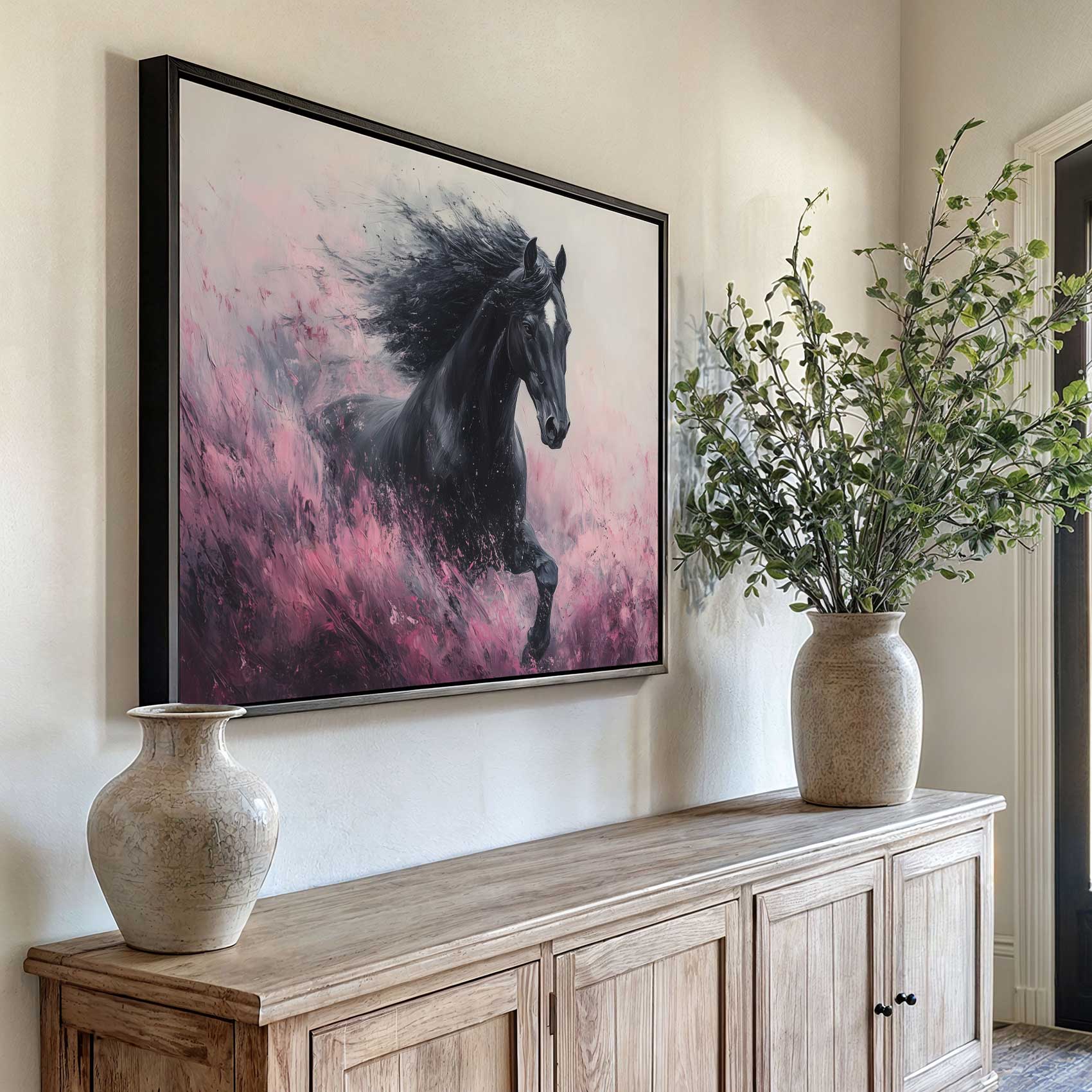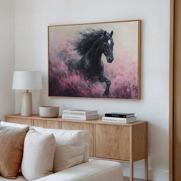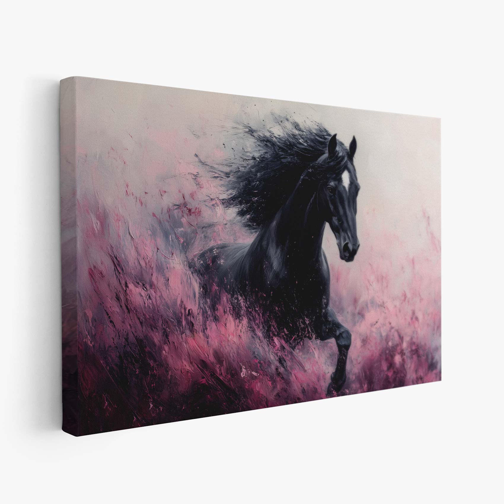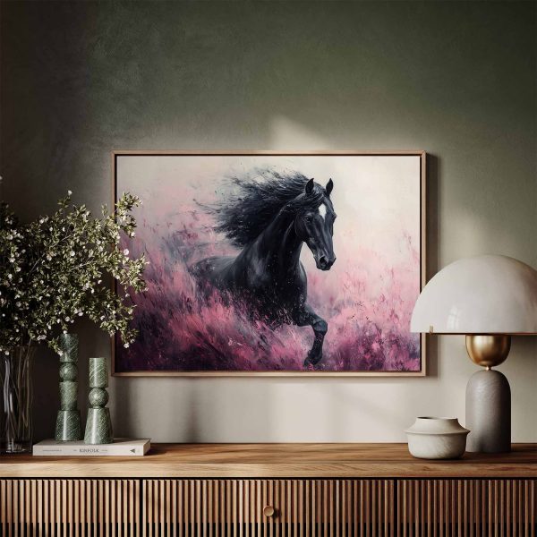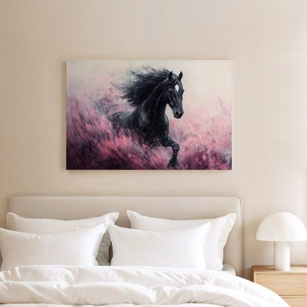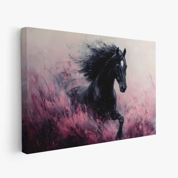 Zwart paard in volle galop
