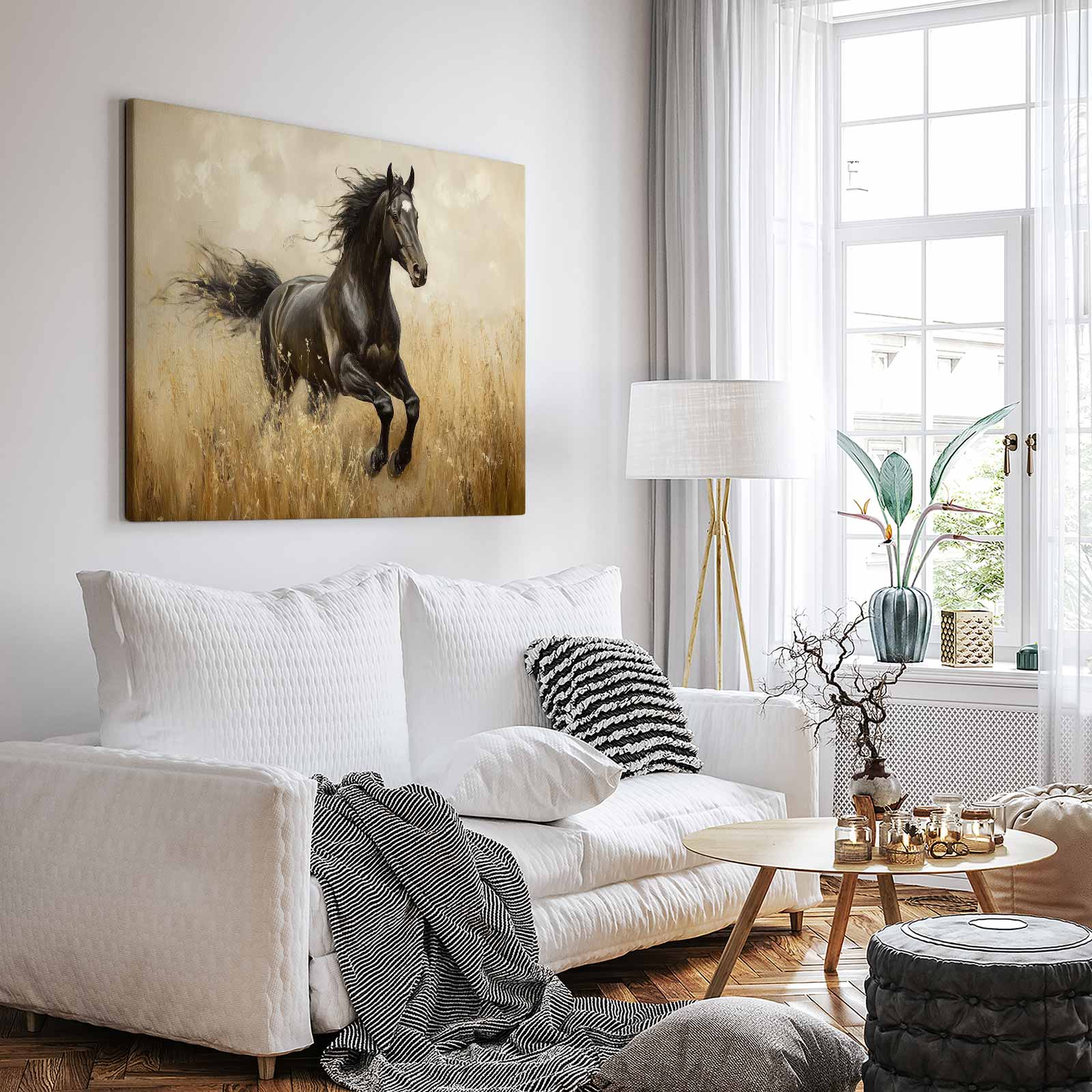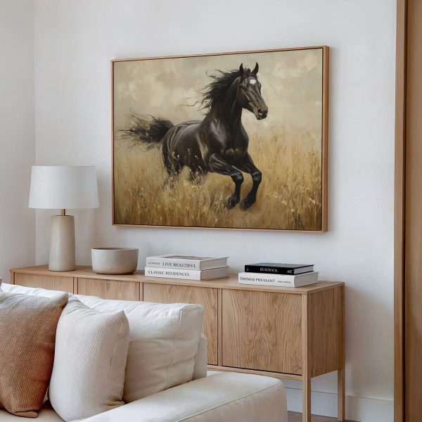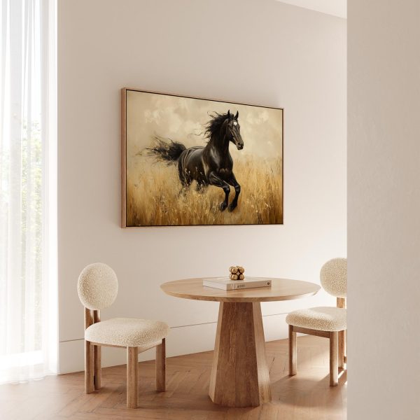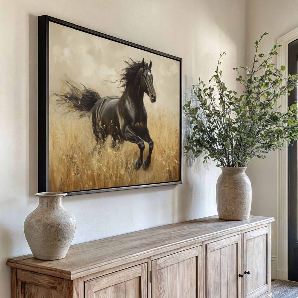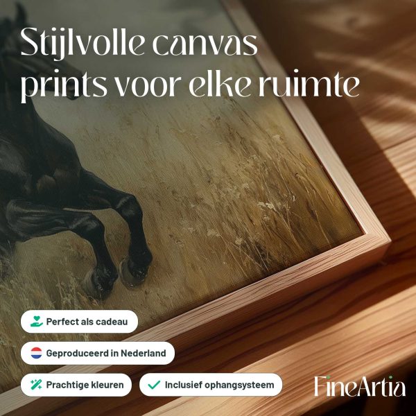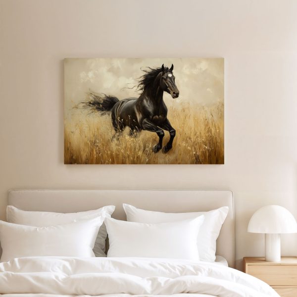 Zwart paard in volle galop