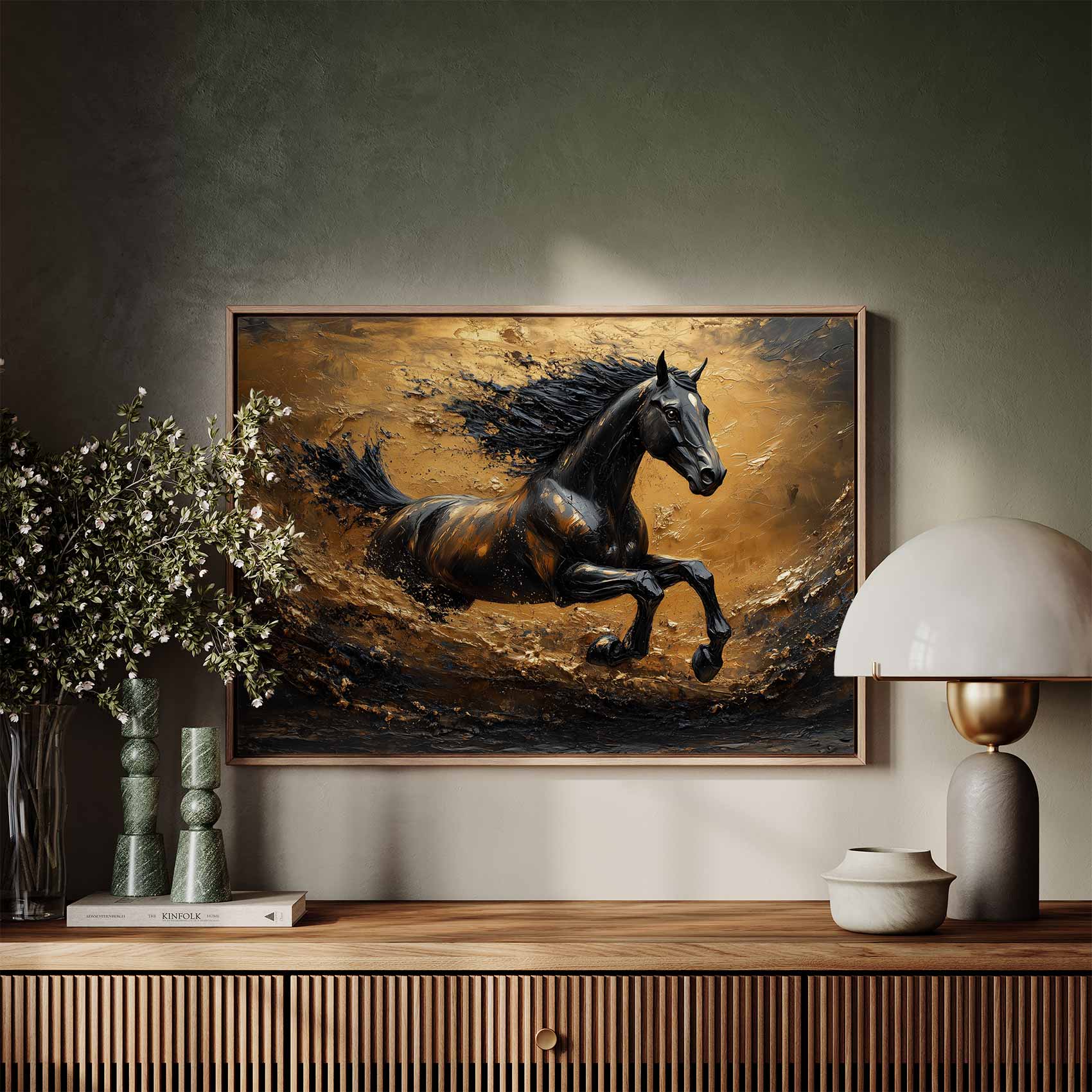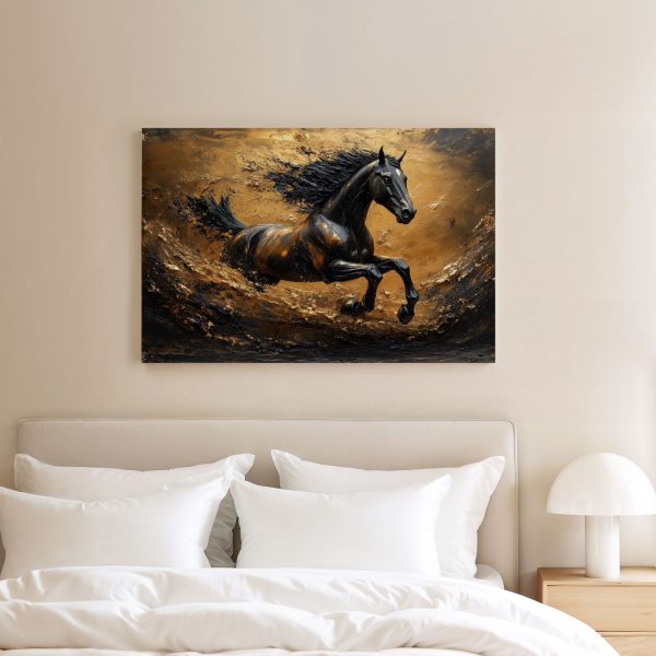 Zwart paard in volle galop