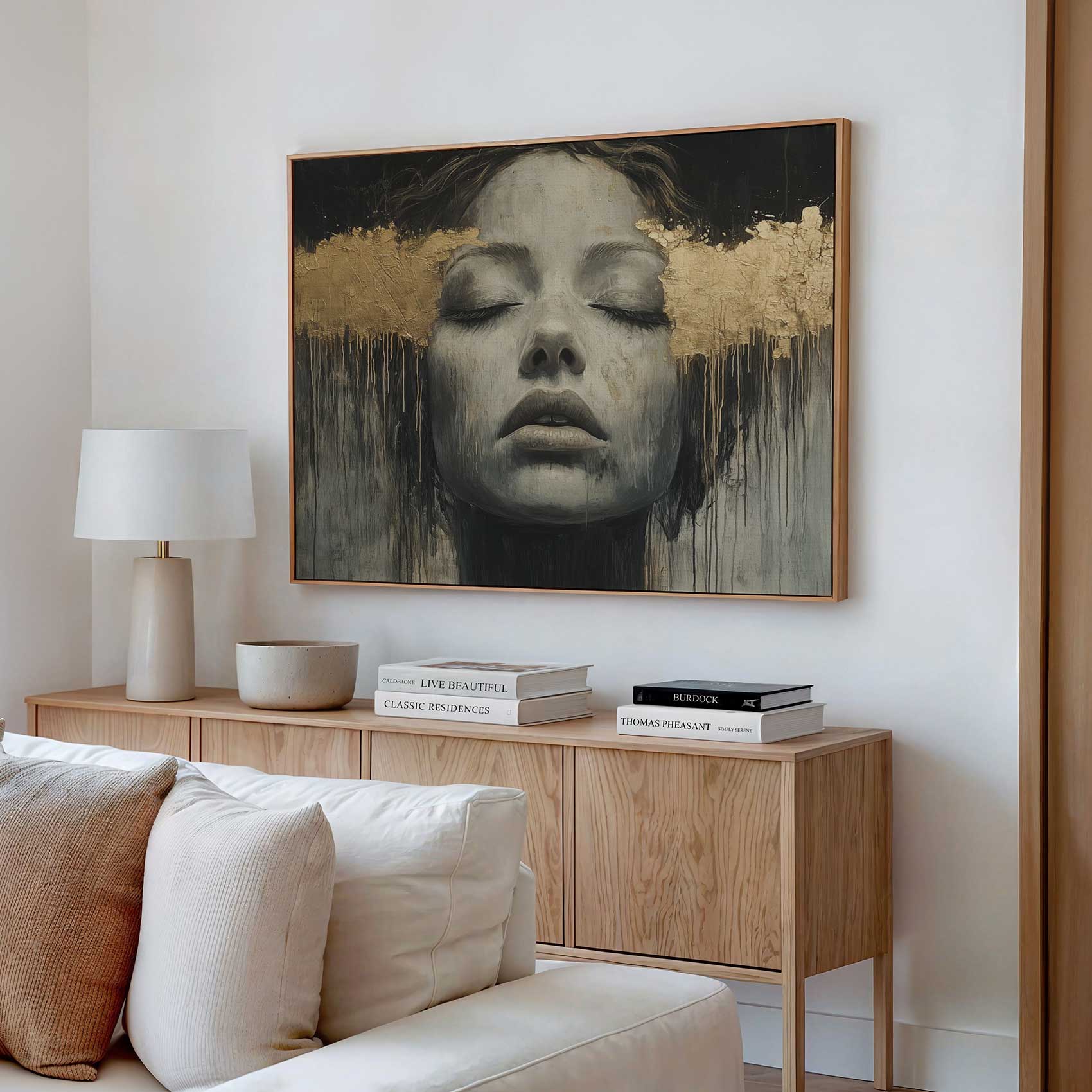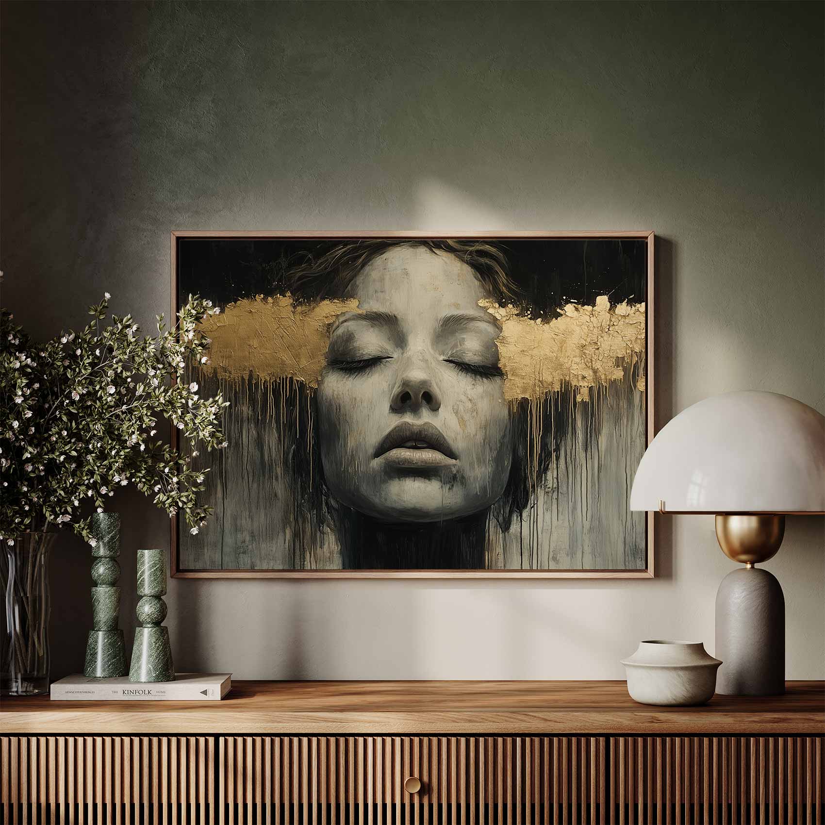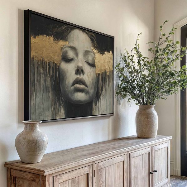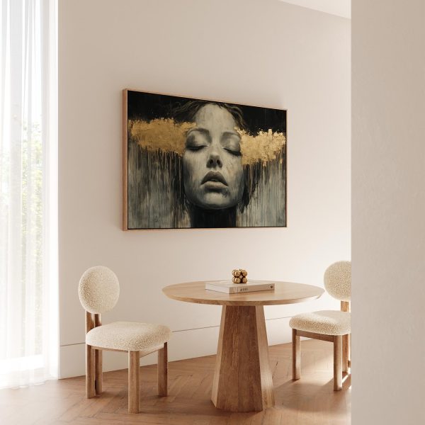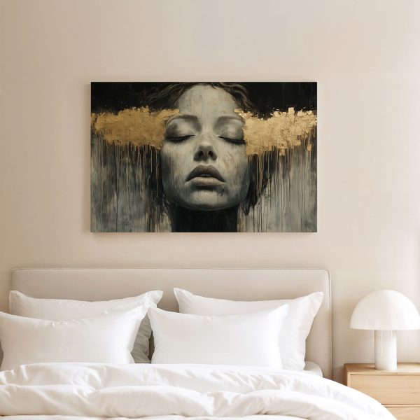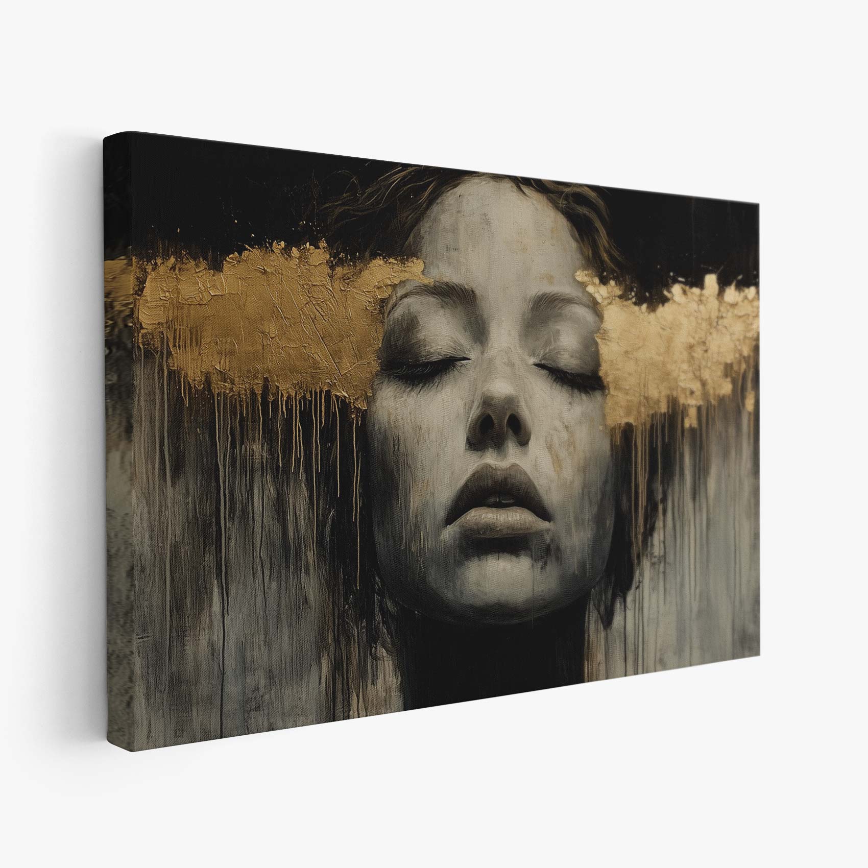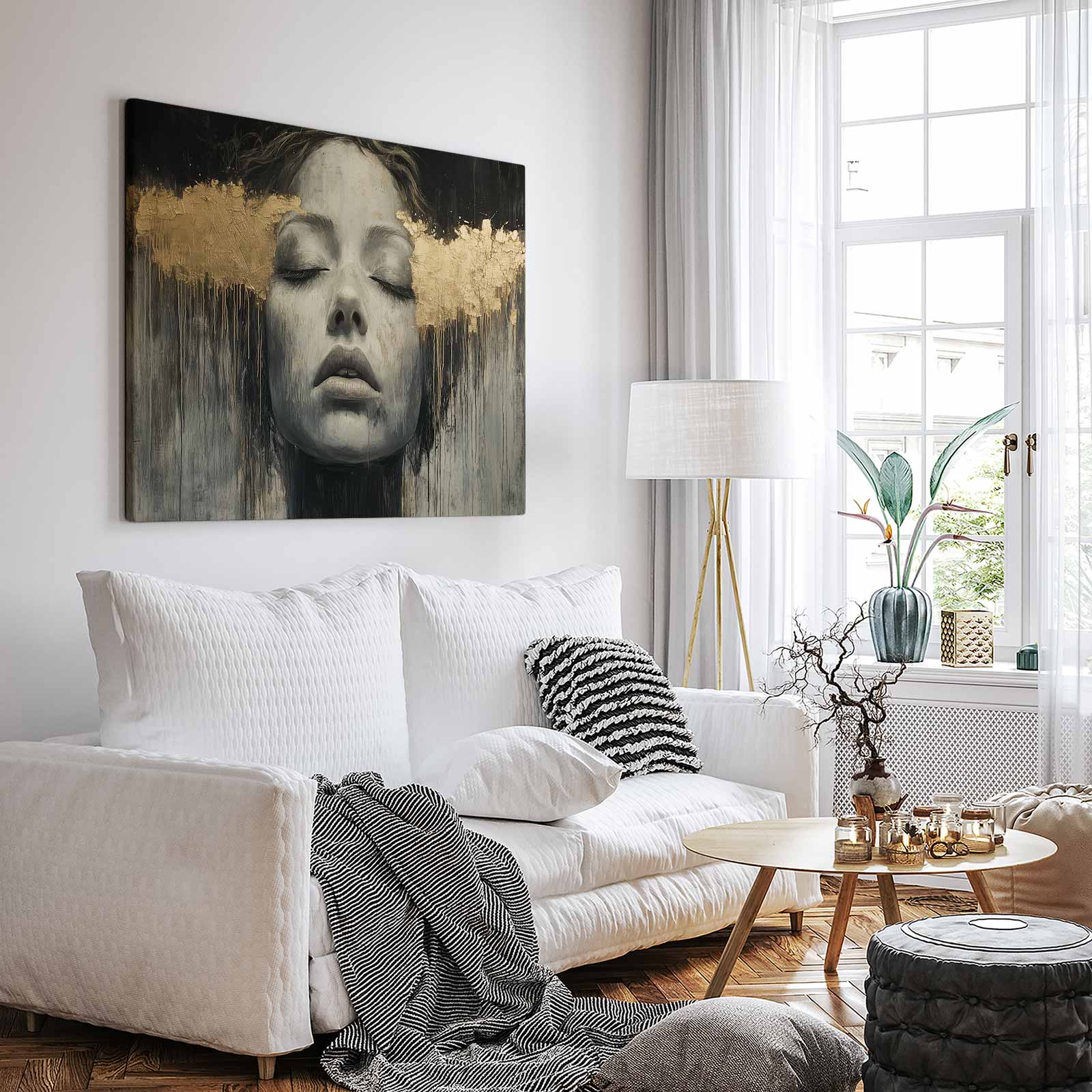 Zwart-wit droomportret met bladgoud