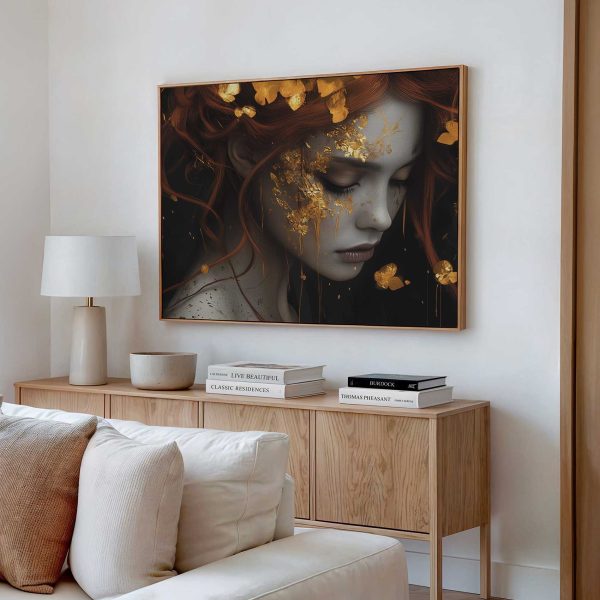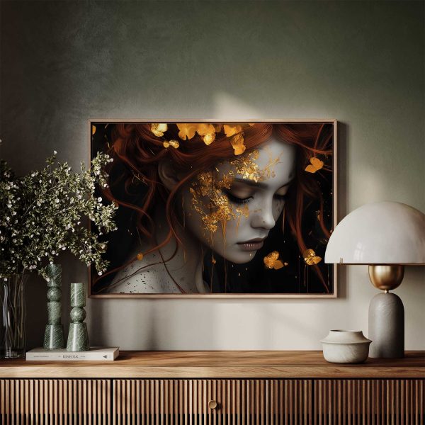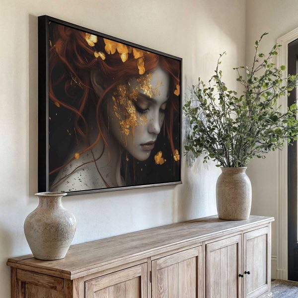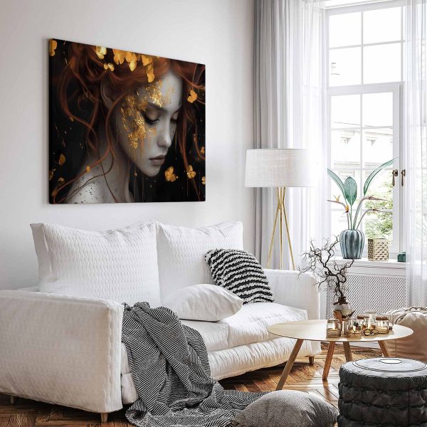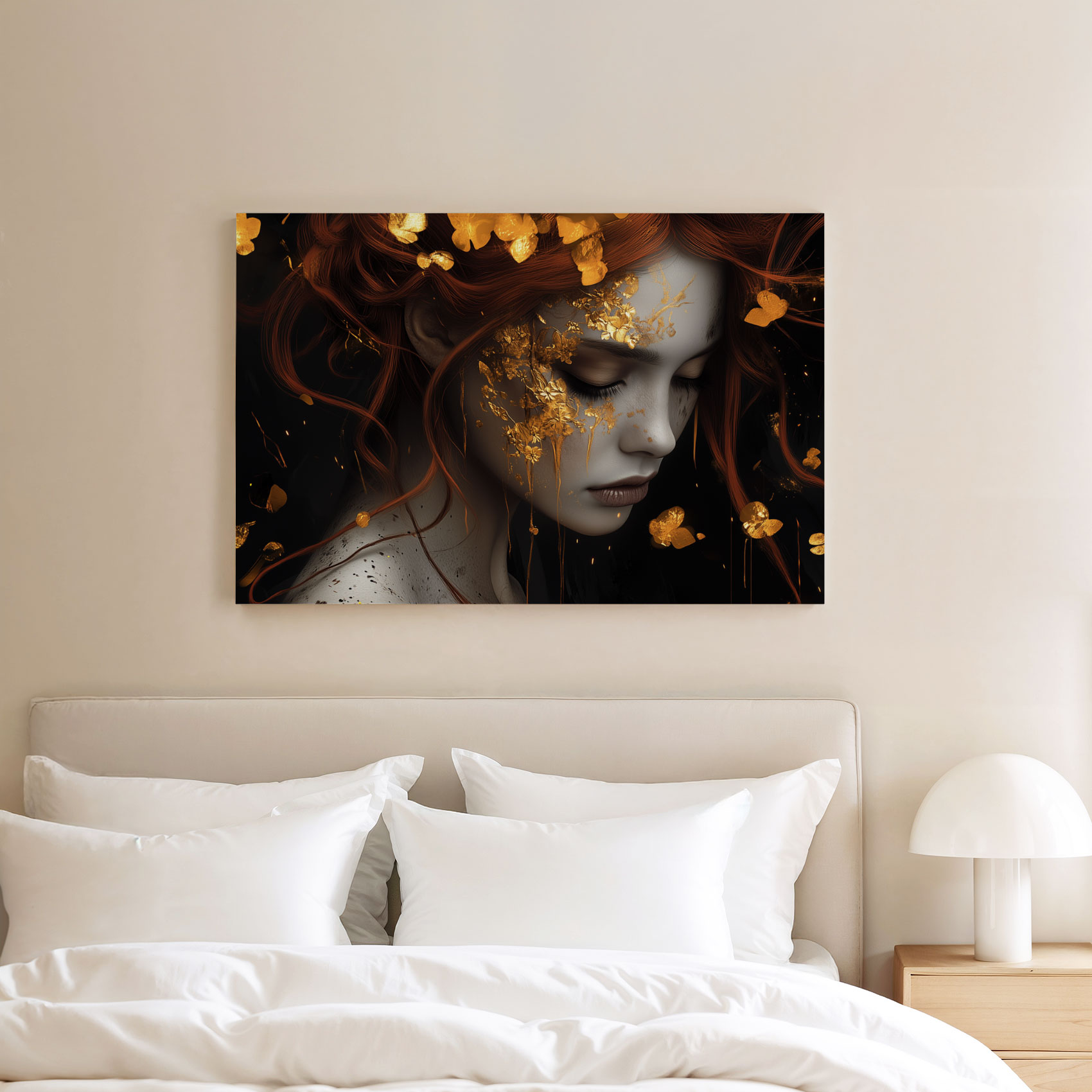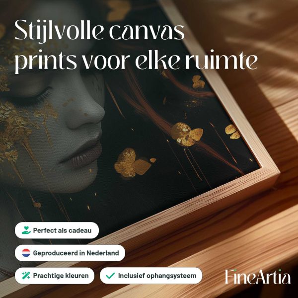 Terug naar collectie Canvas Zwart-wit gouden vrouwportret