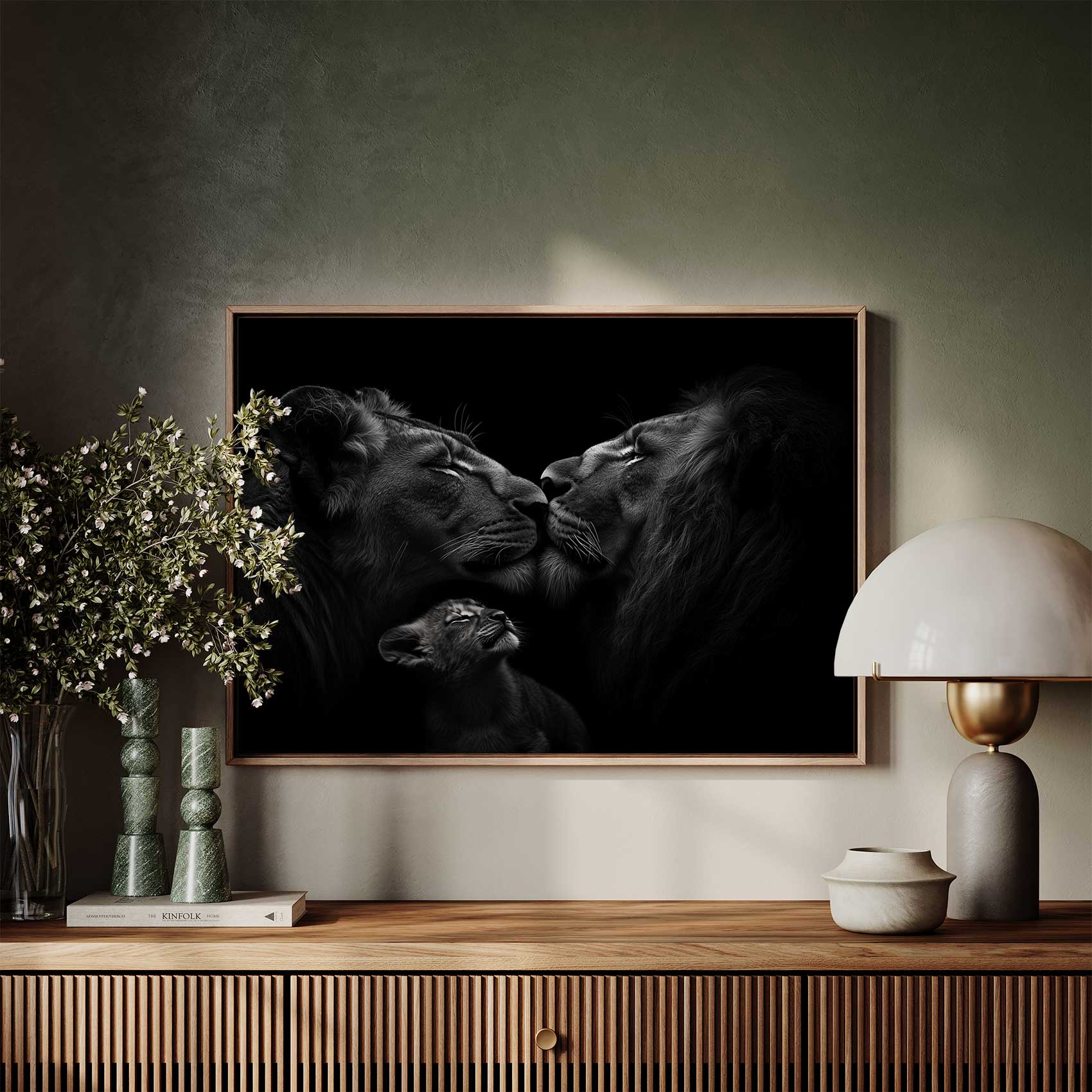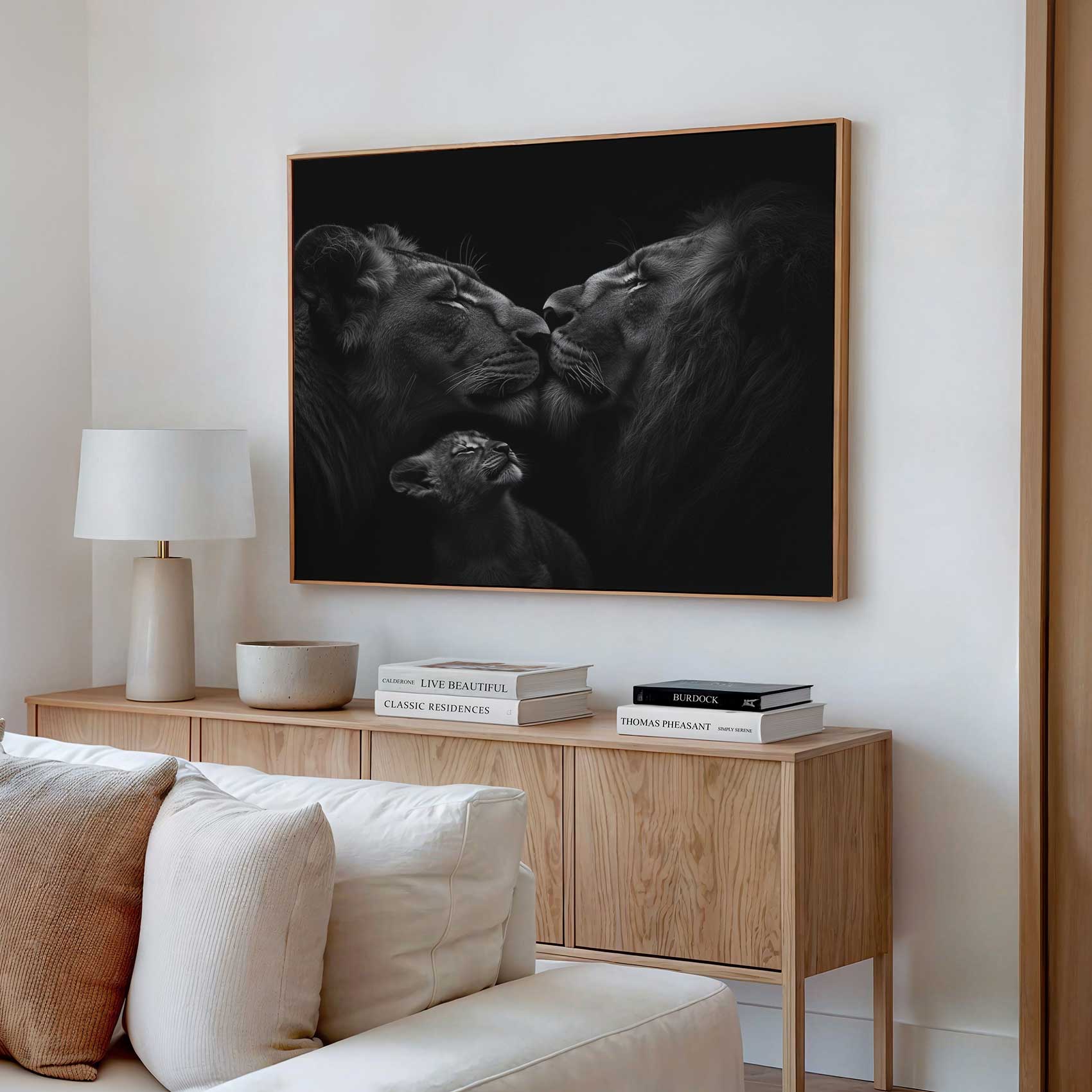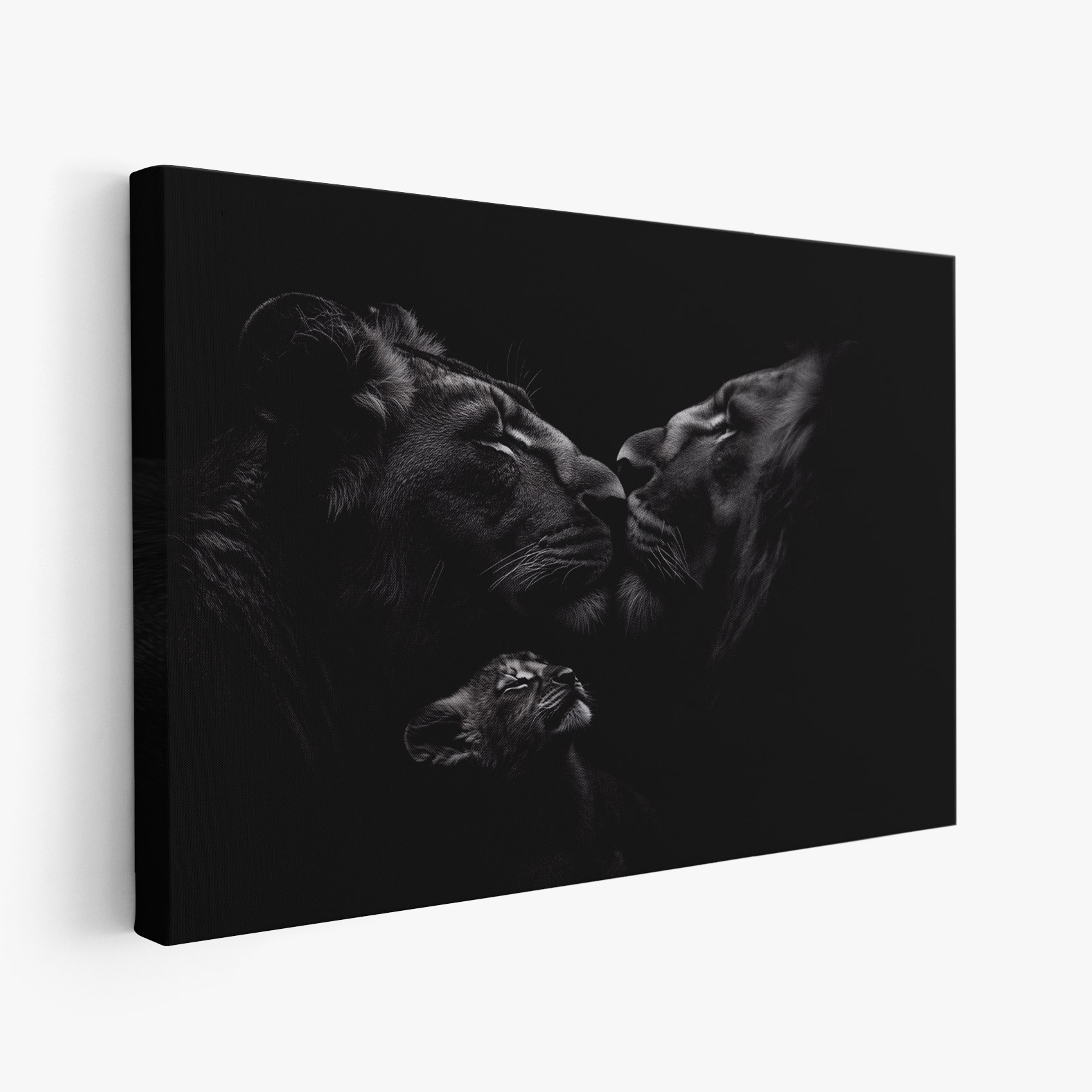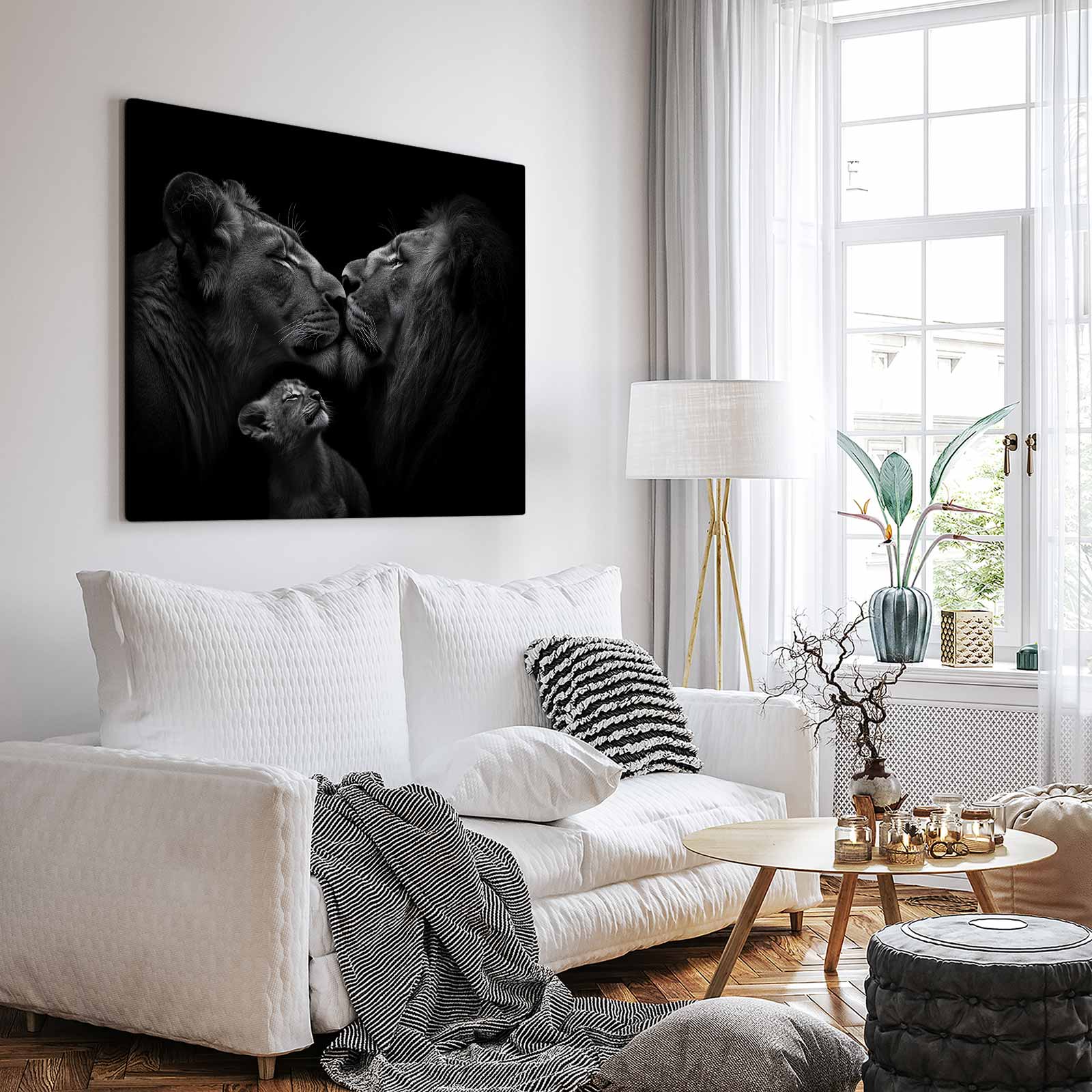 Zwart-wit leeuwenmoeder met welpen