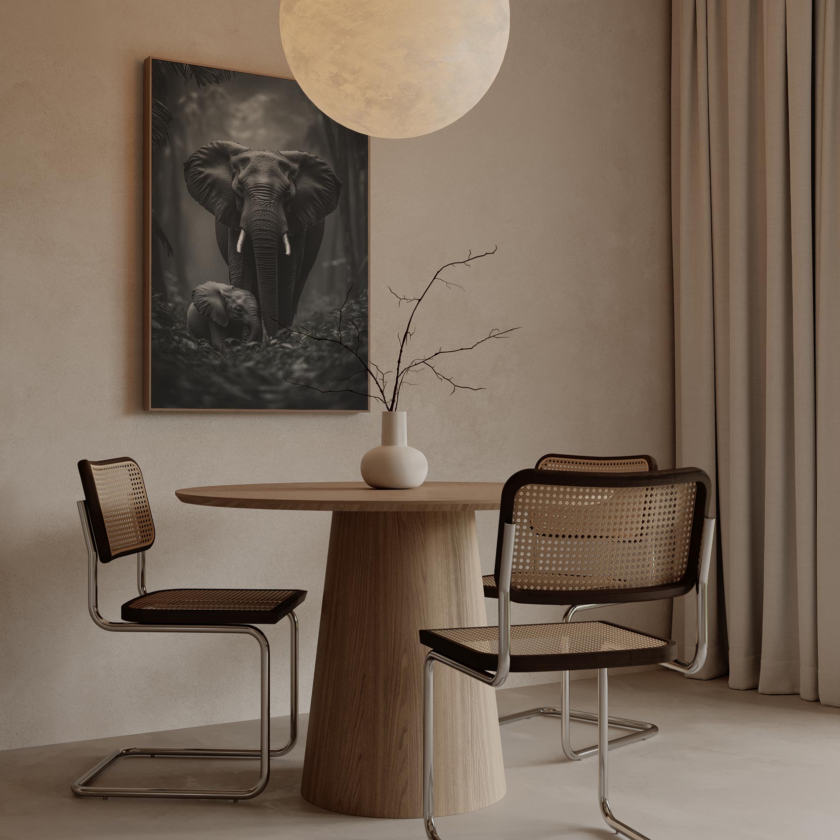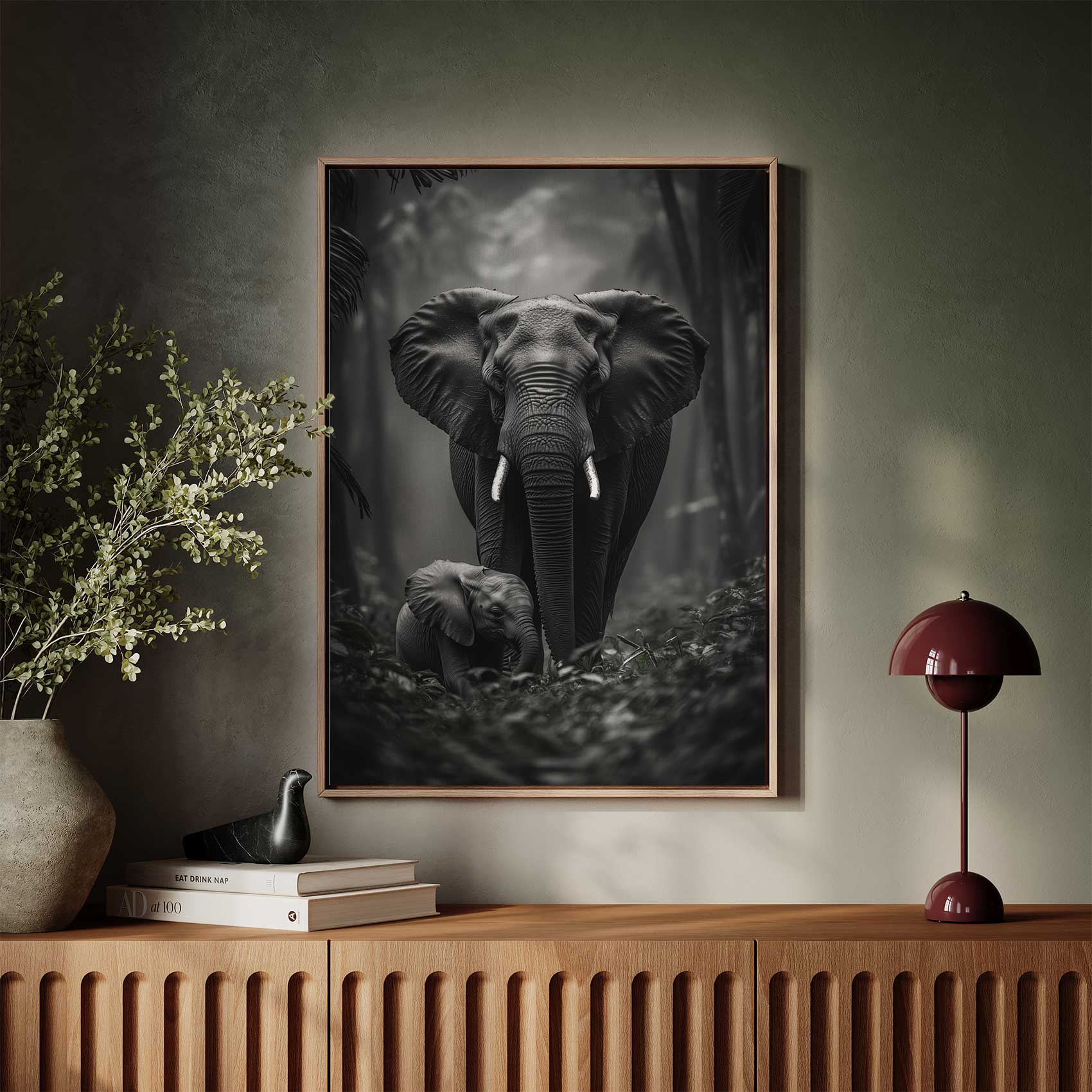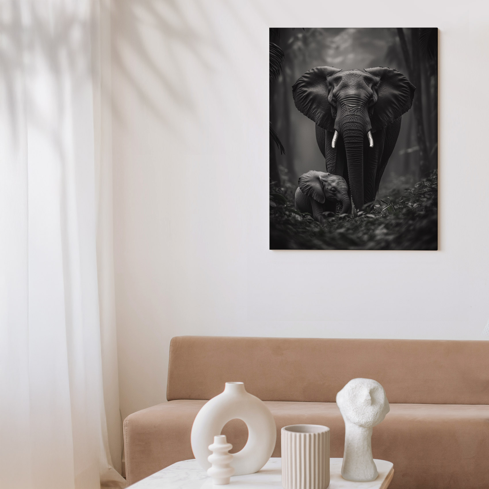 Terug naar collectie Canvas Zwart-wit olifantenportret in bos