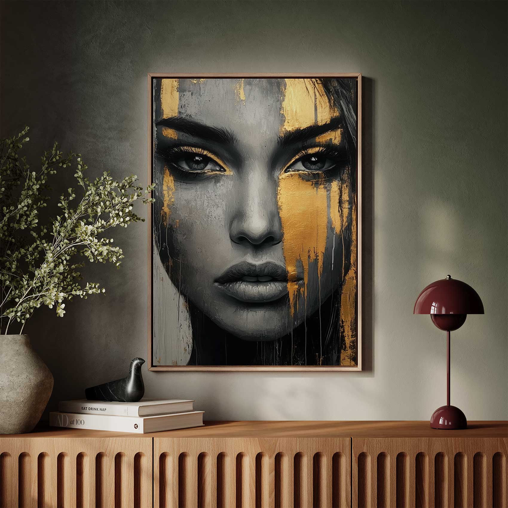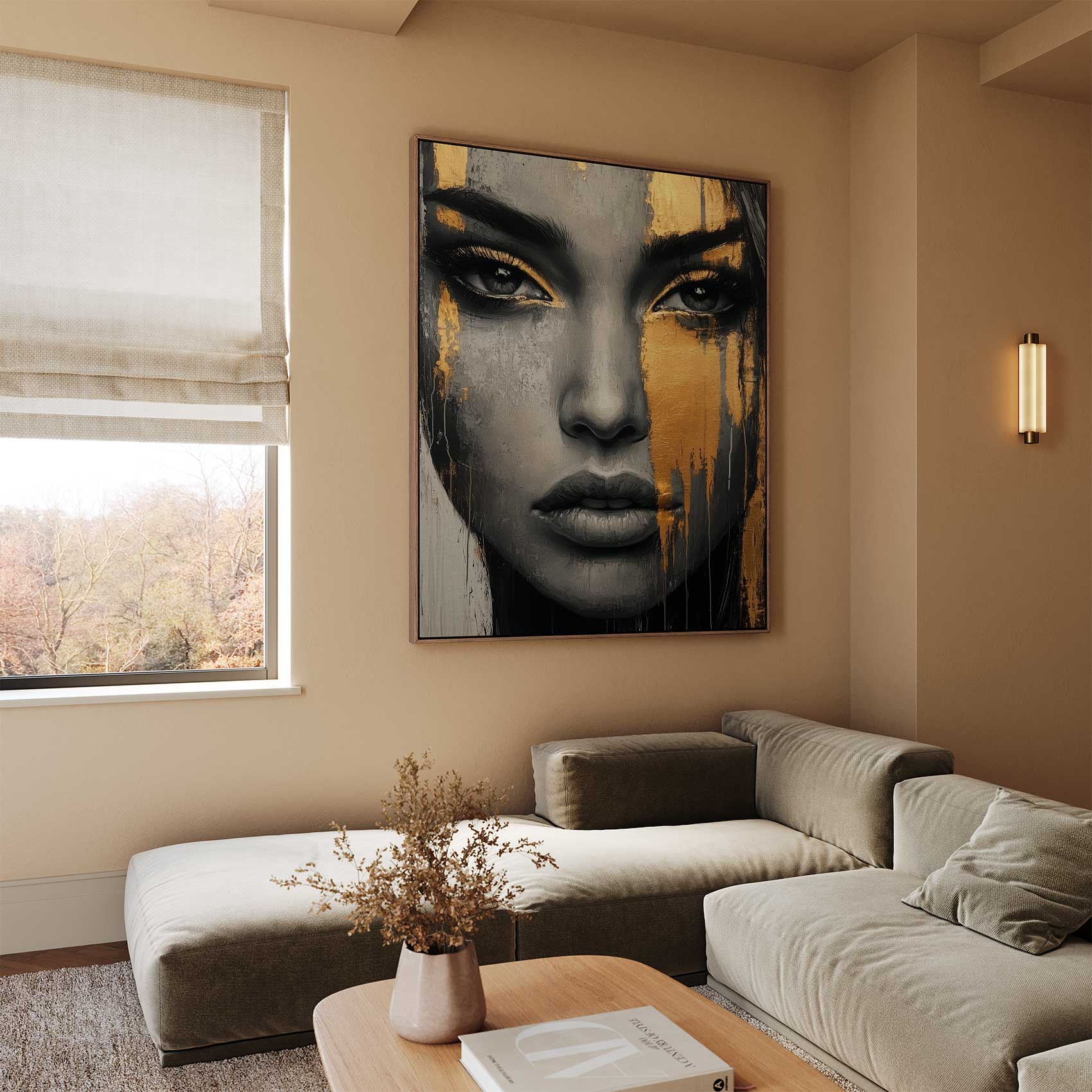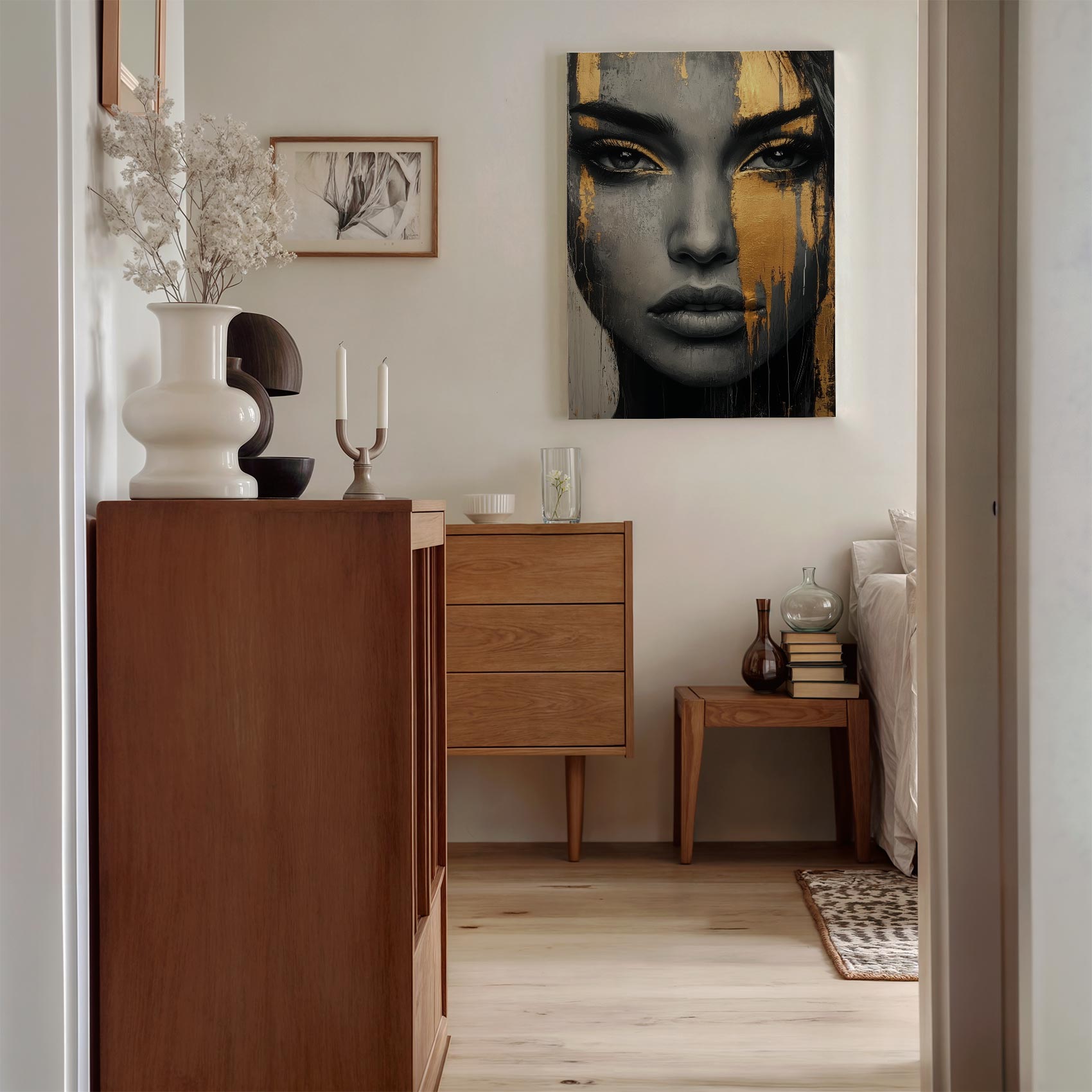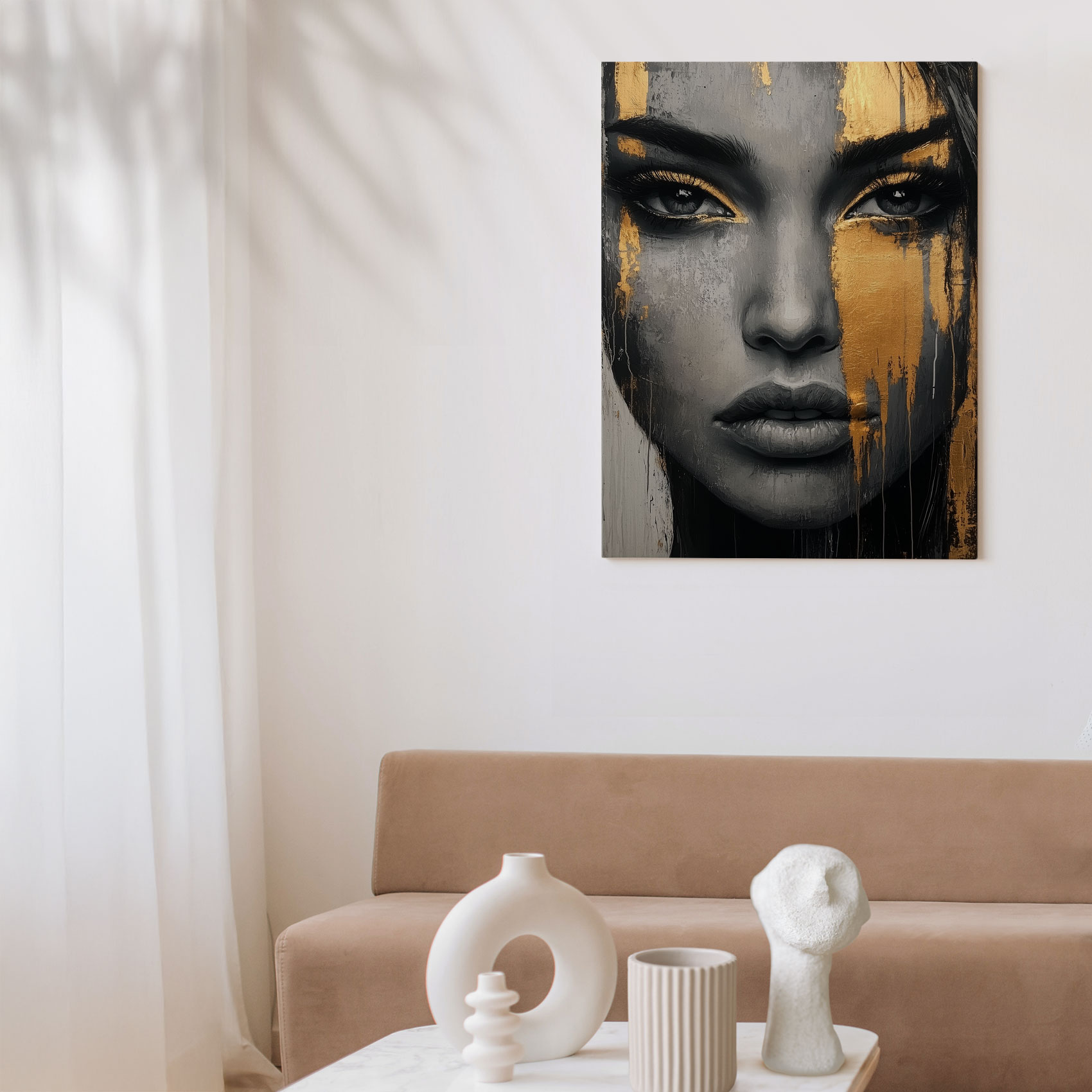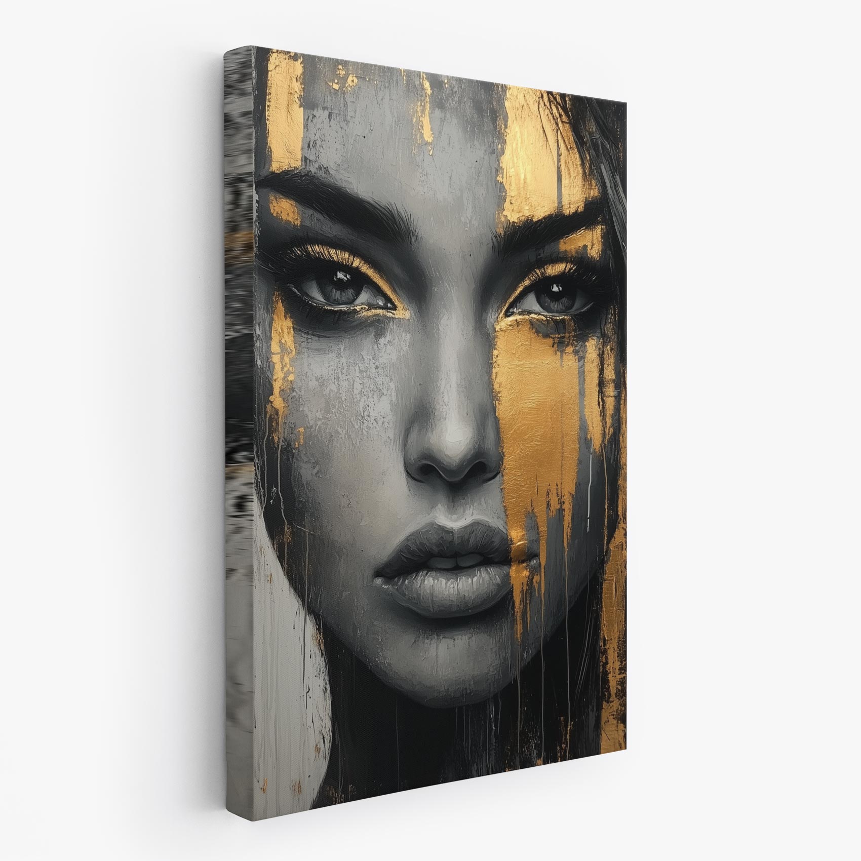 Zwart-wit portret met goudspatten