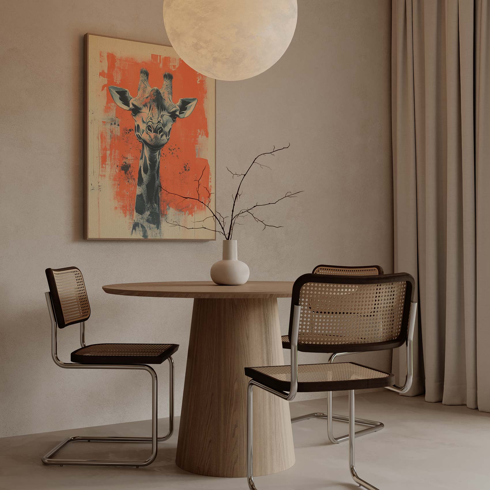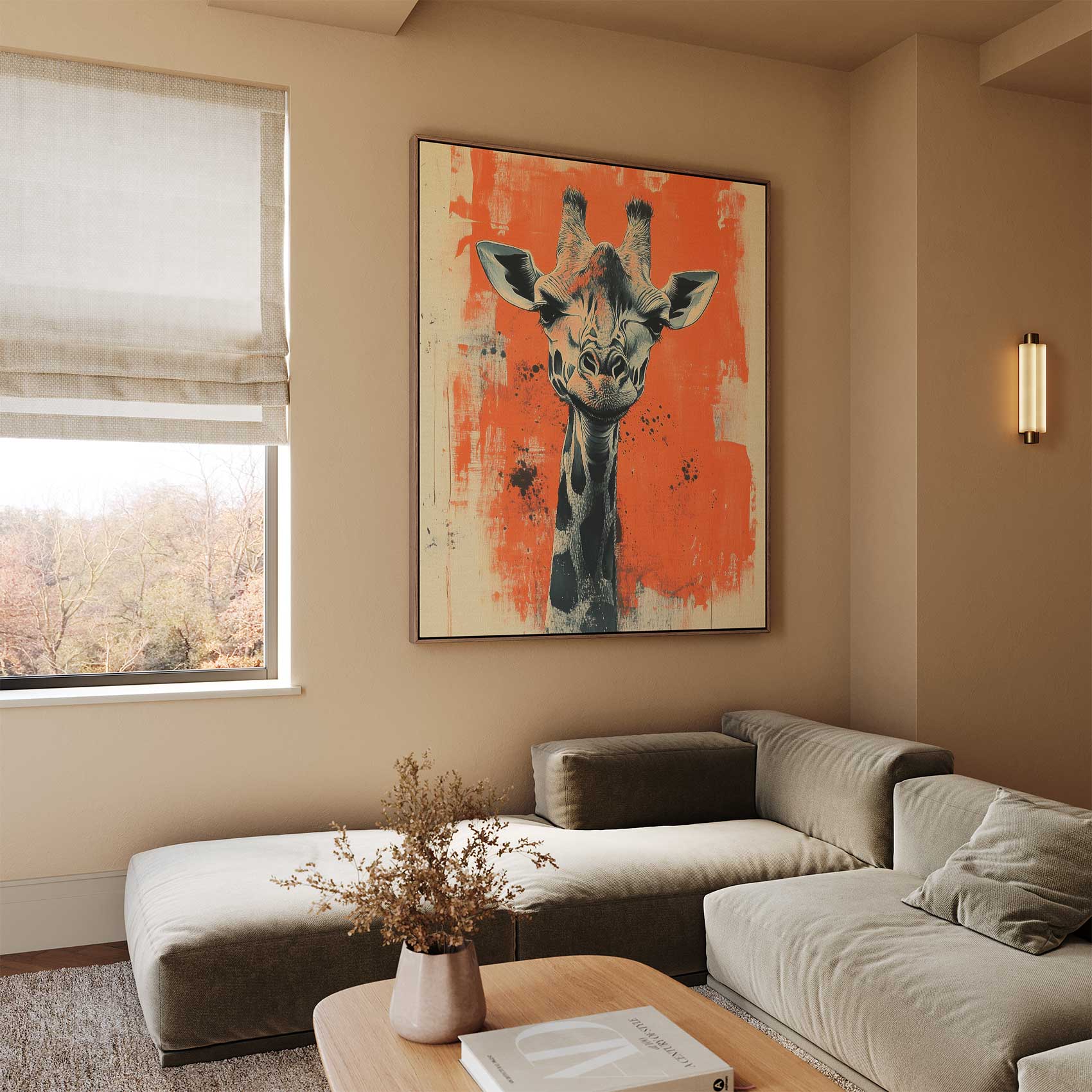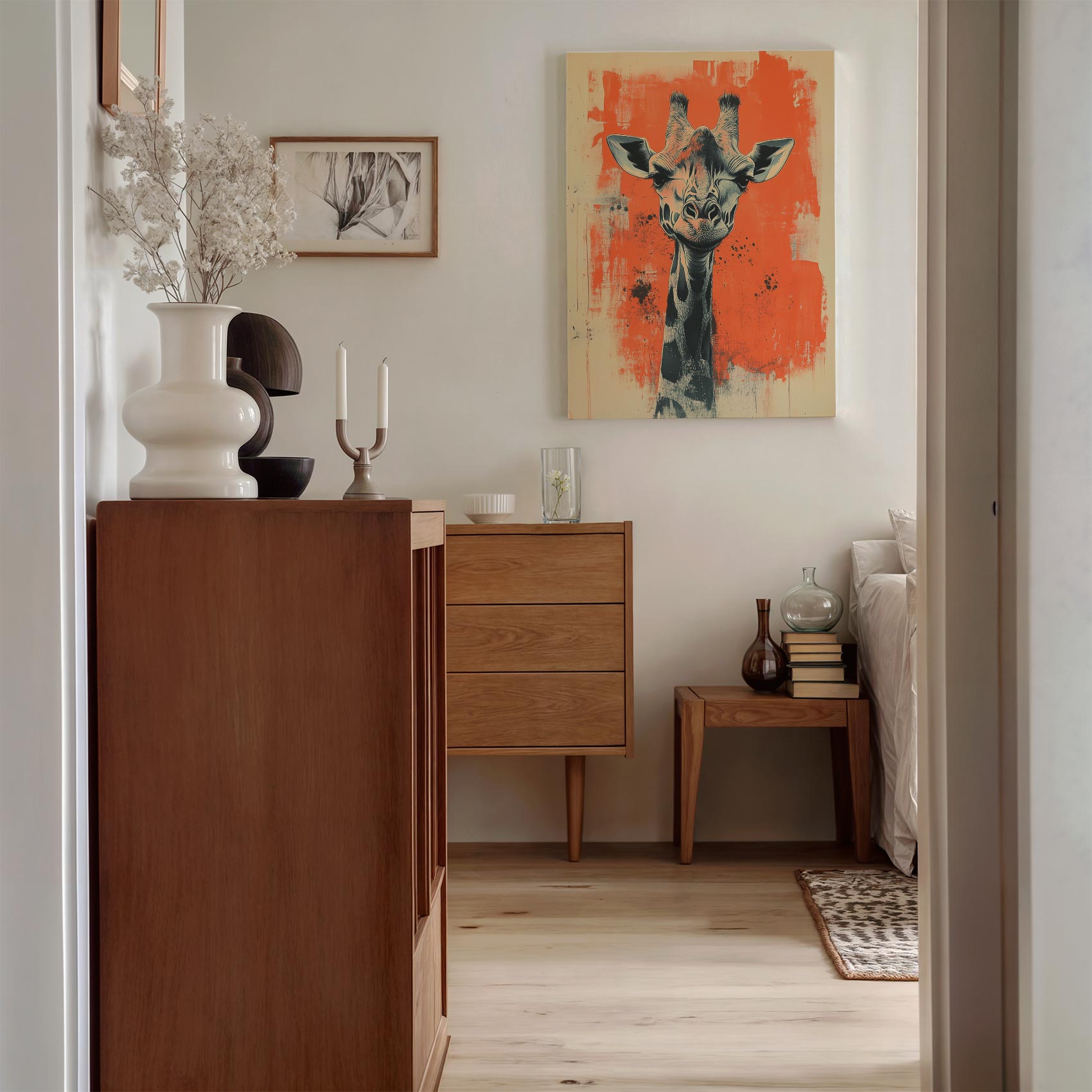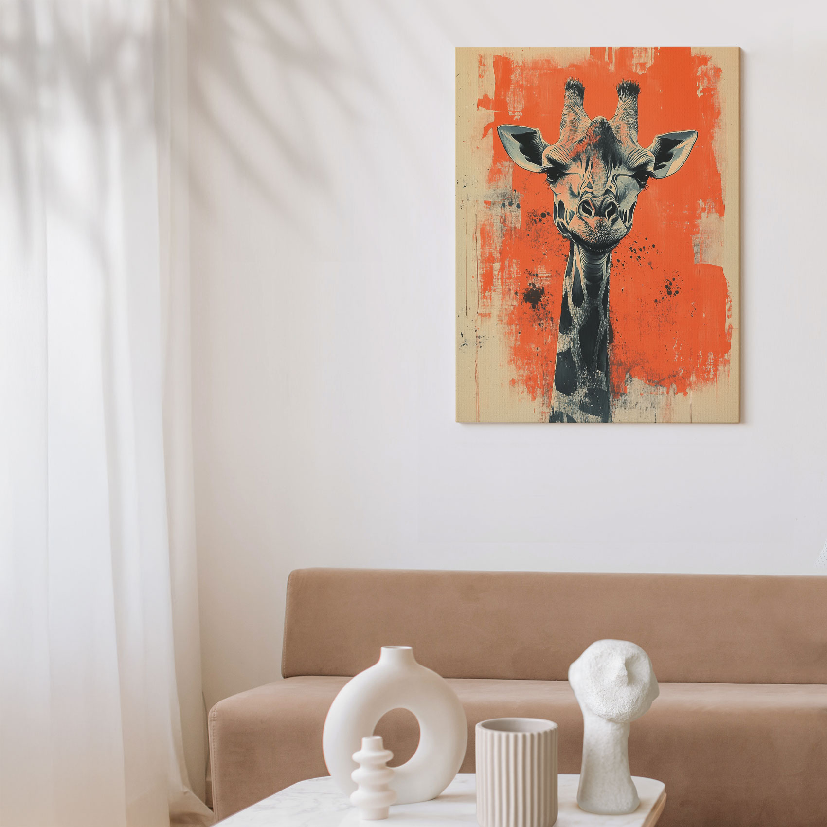 Zwart-witte giraffe schilderij