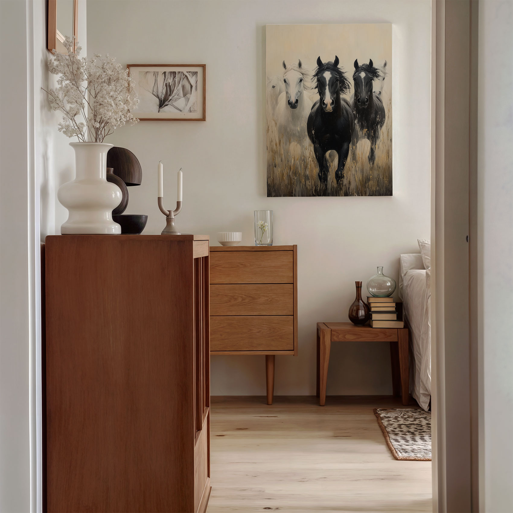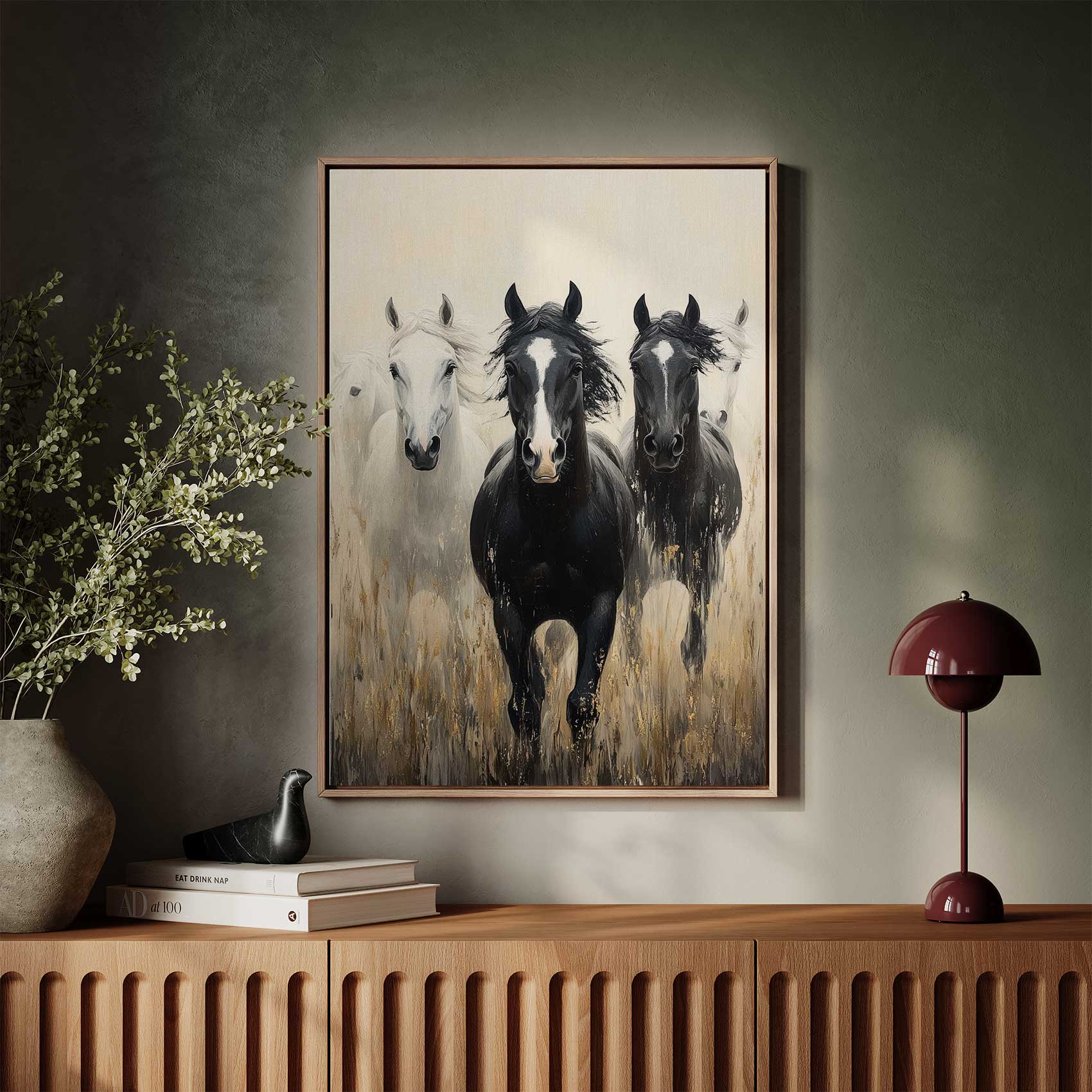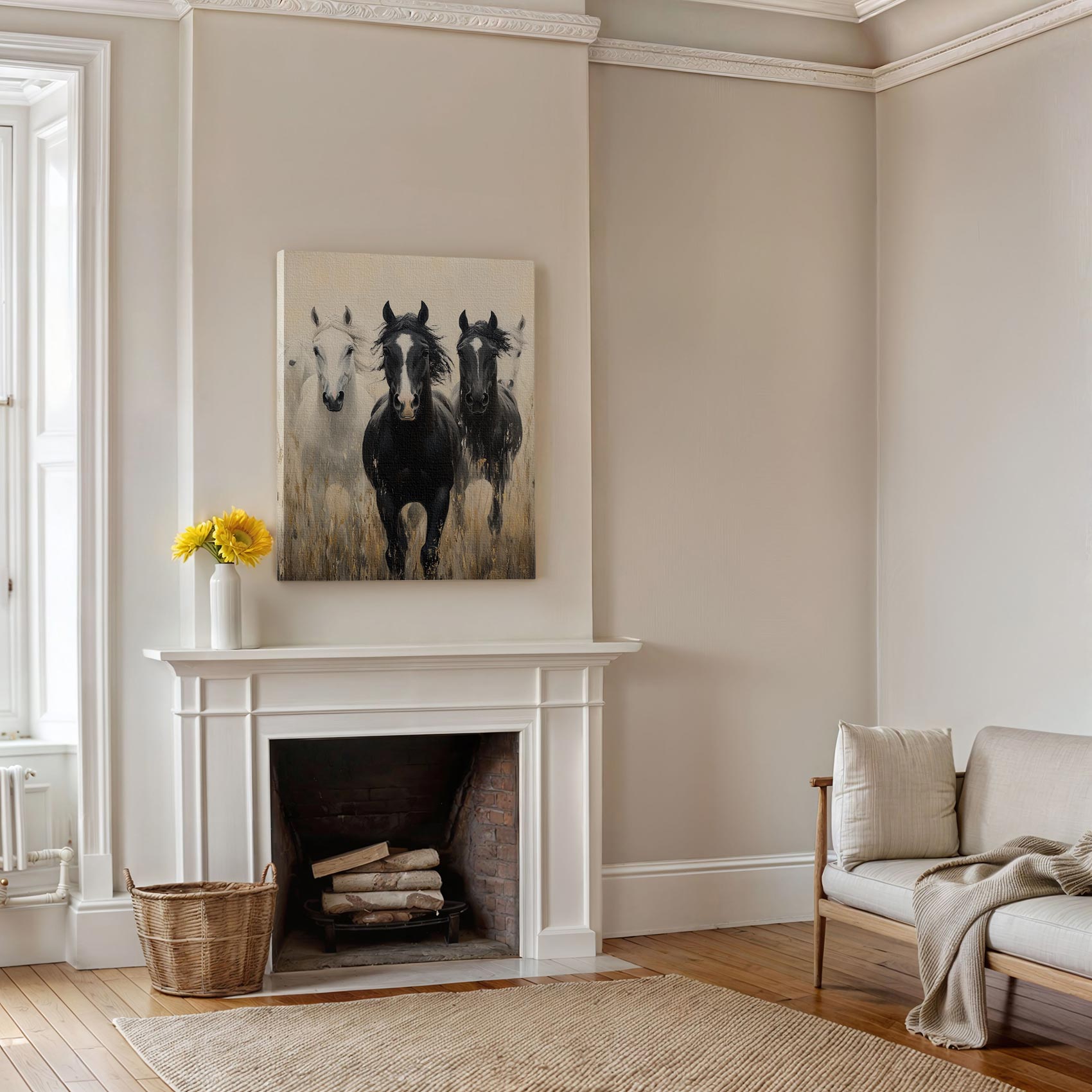 Terug naar collectie Canvas Zwart-witte rennende paarden