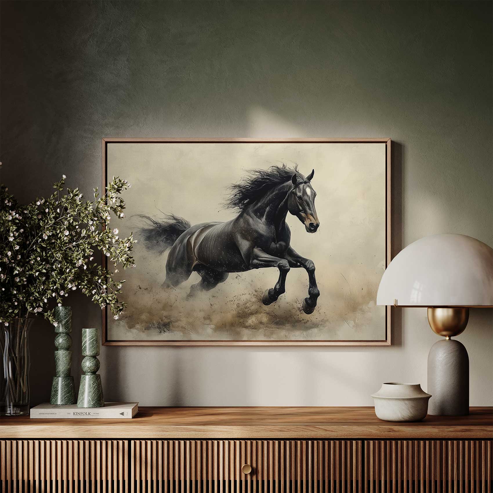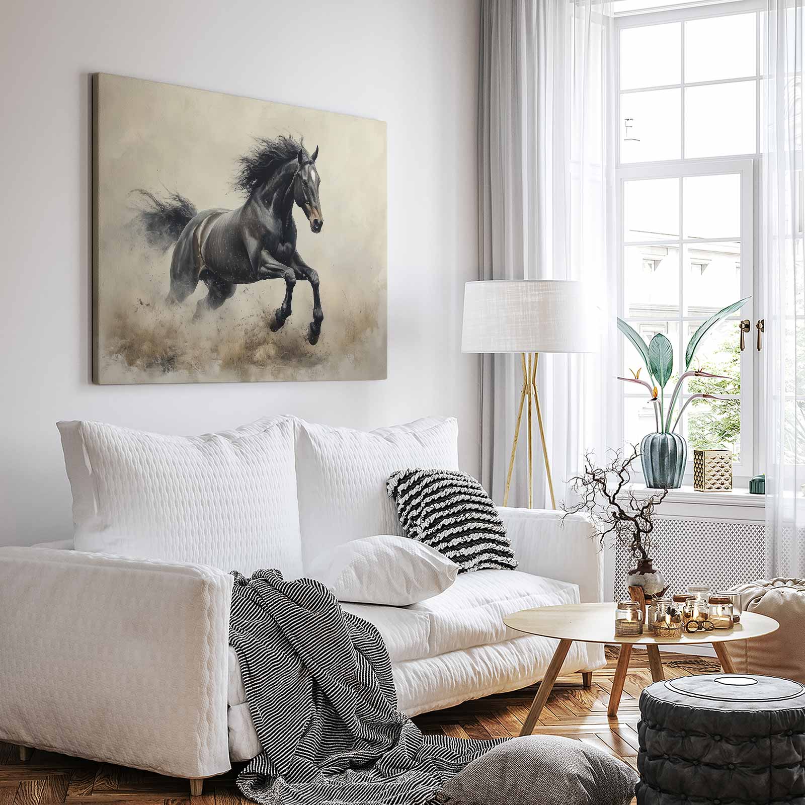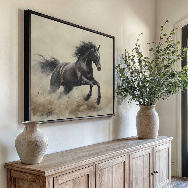 Terug naar collectie Canvas Zwarte galopperende kracht