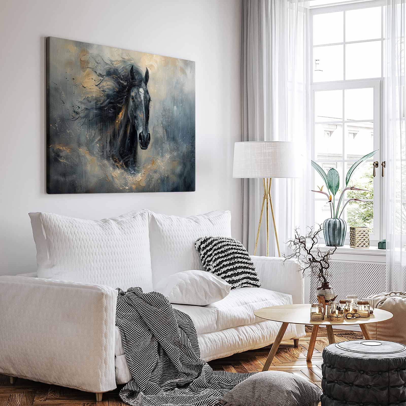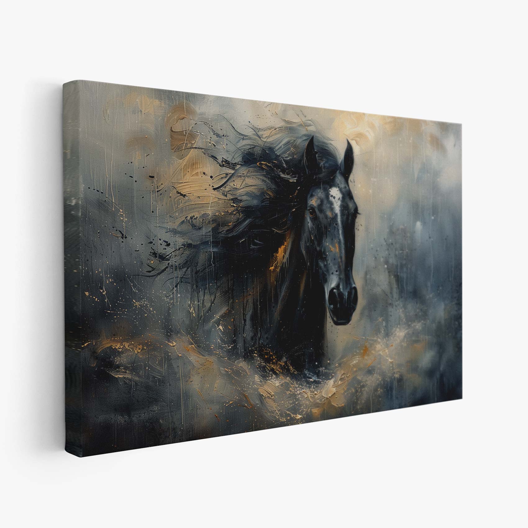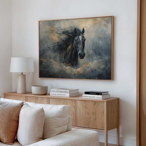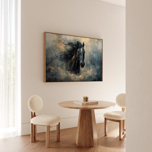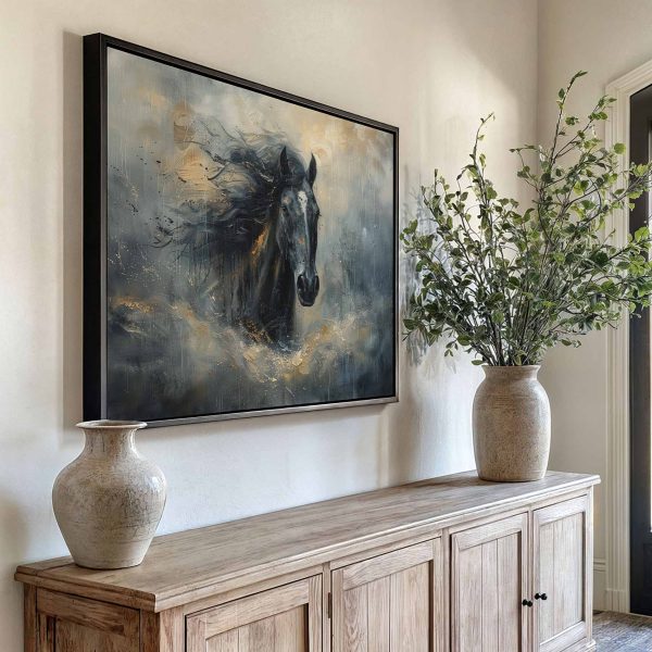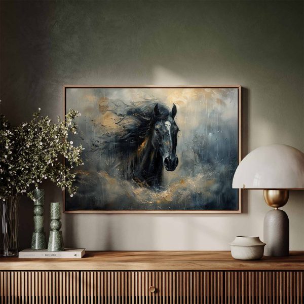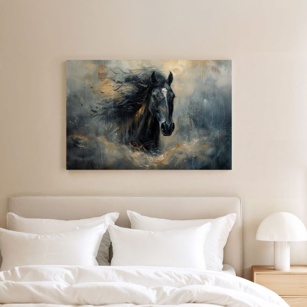 Zwarte paard in beweging