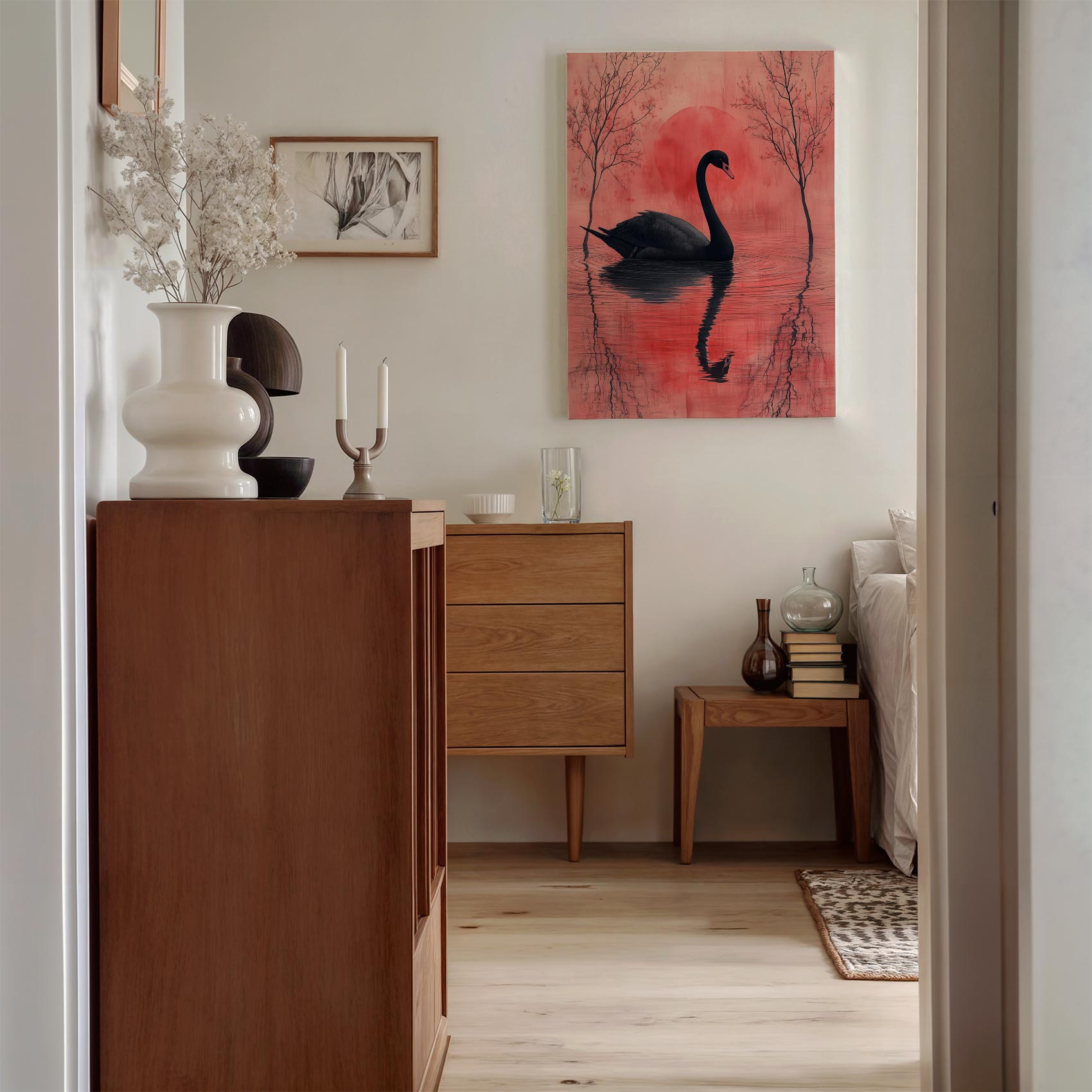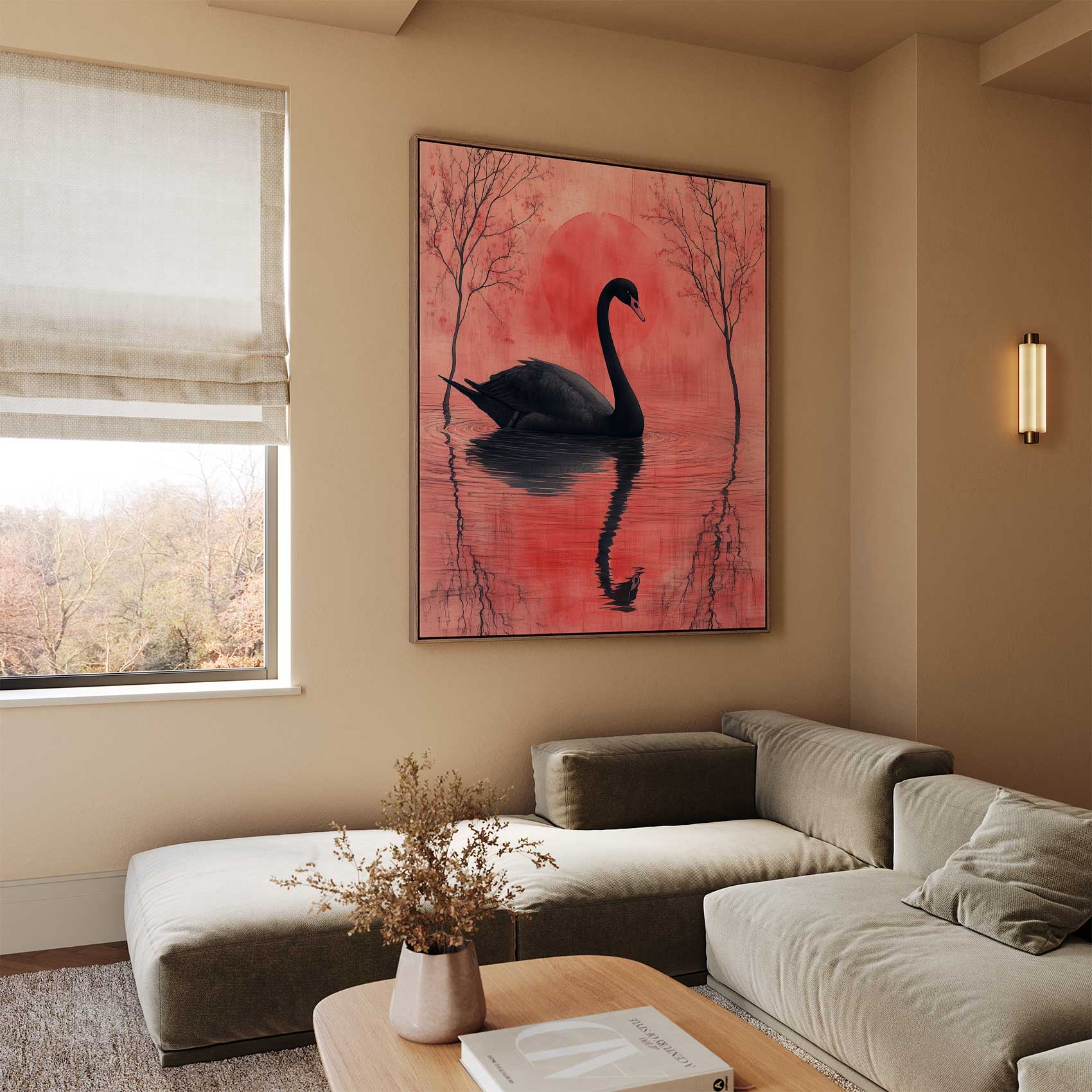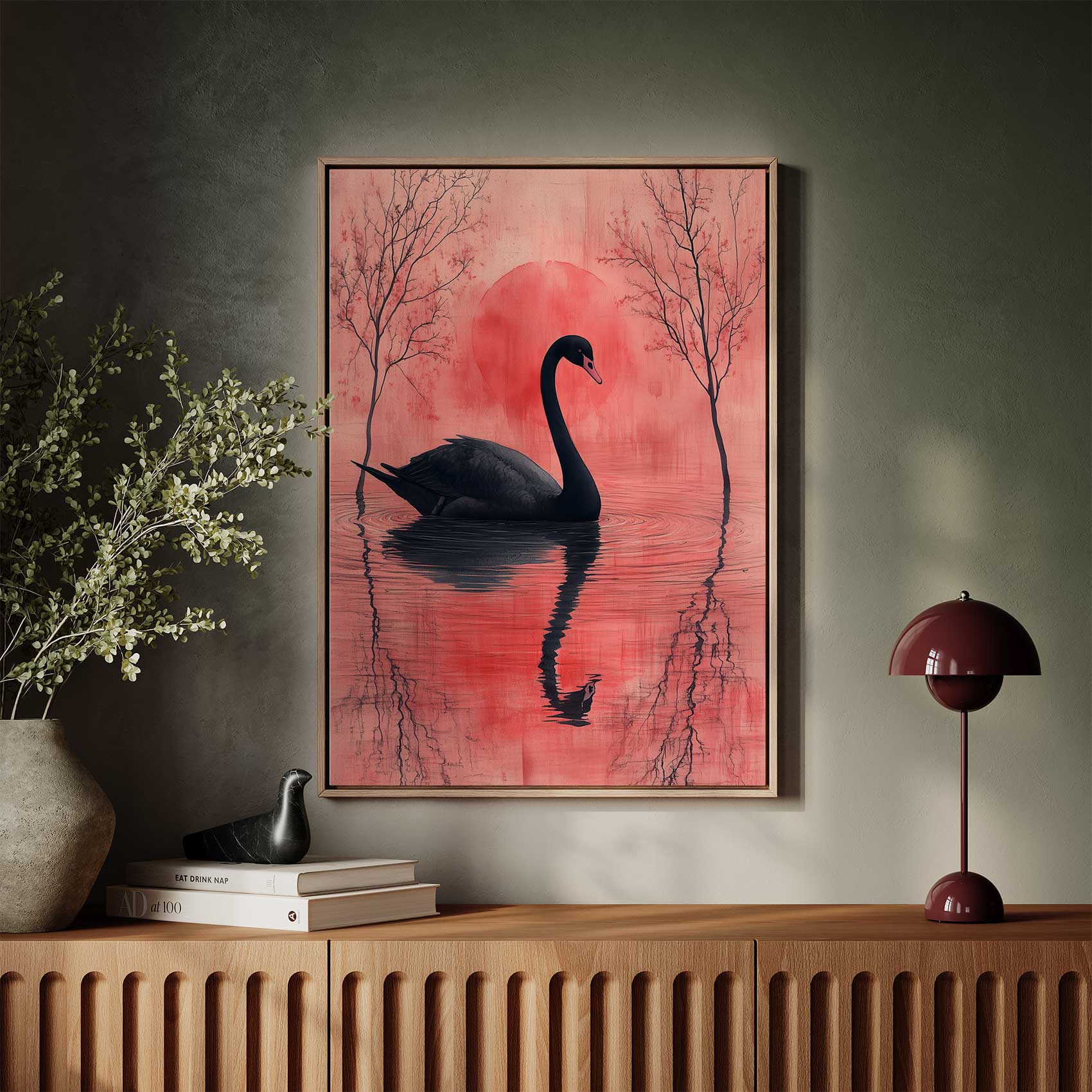 Zwarte zwaan bij zonsondergang