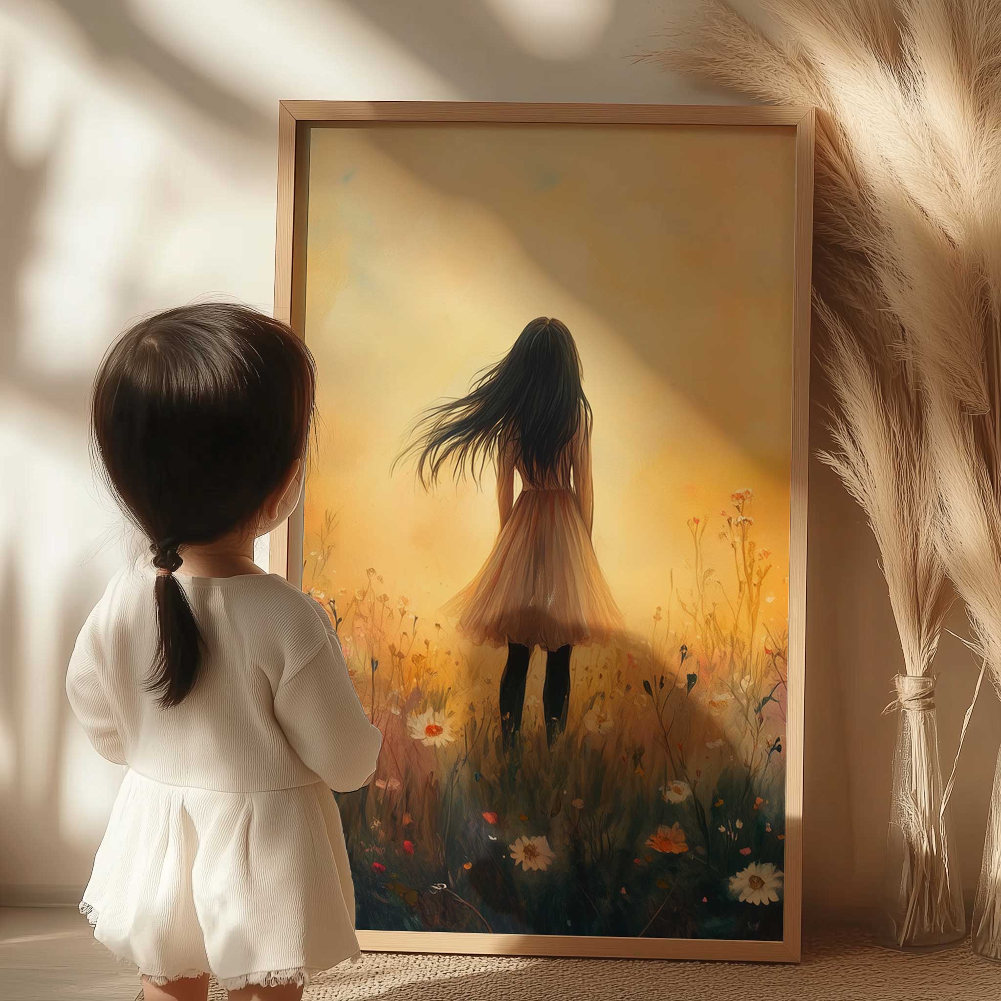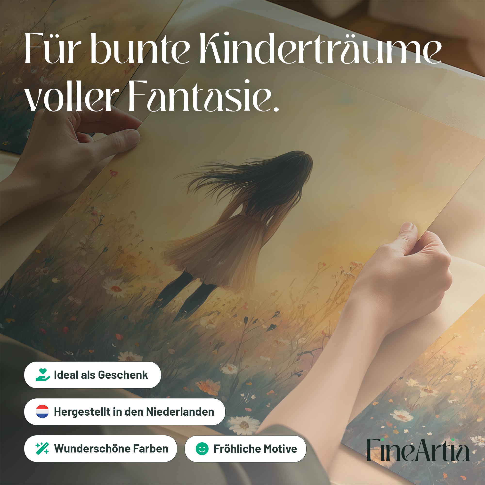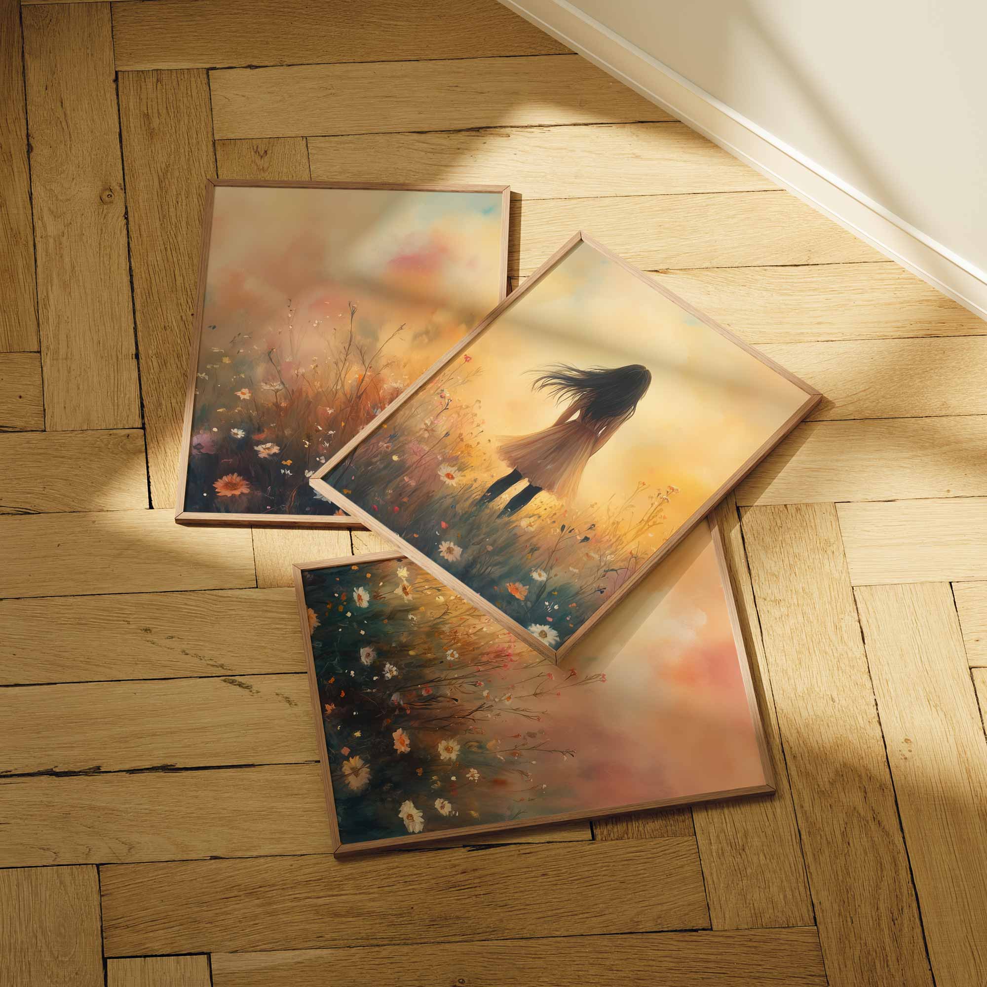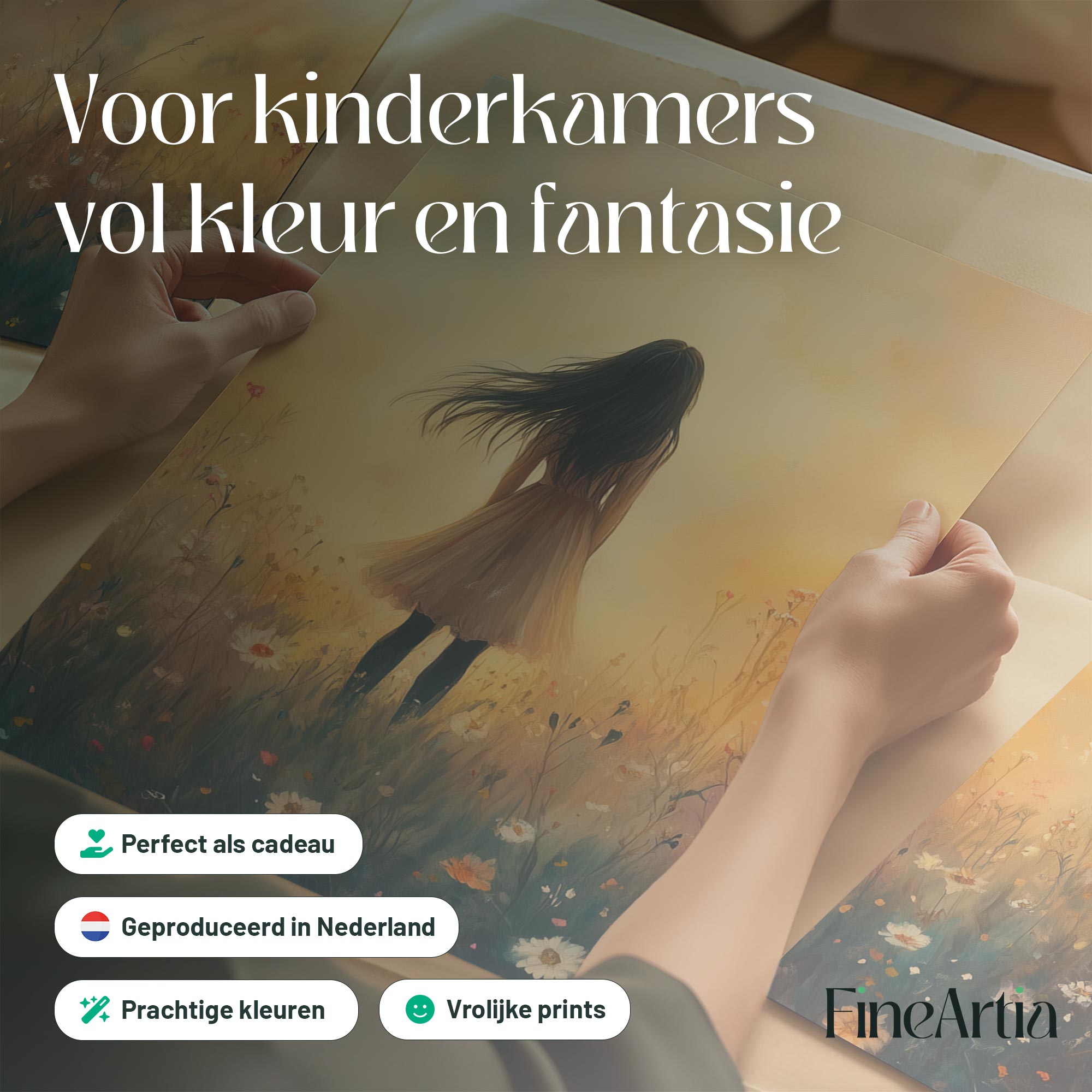 Zwevend in een Dromerig Bloemenveld bij Zonsondergang