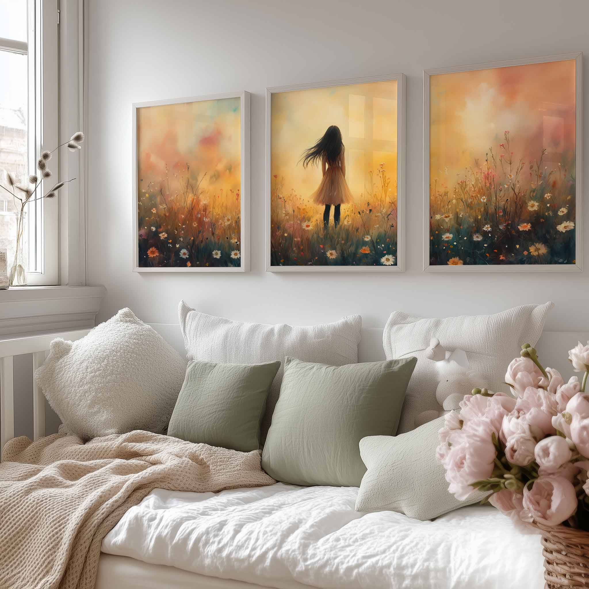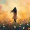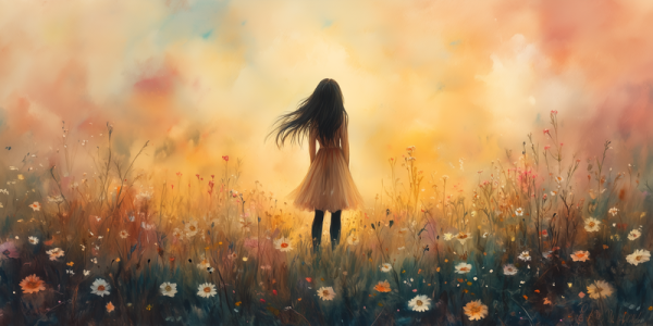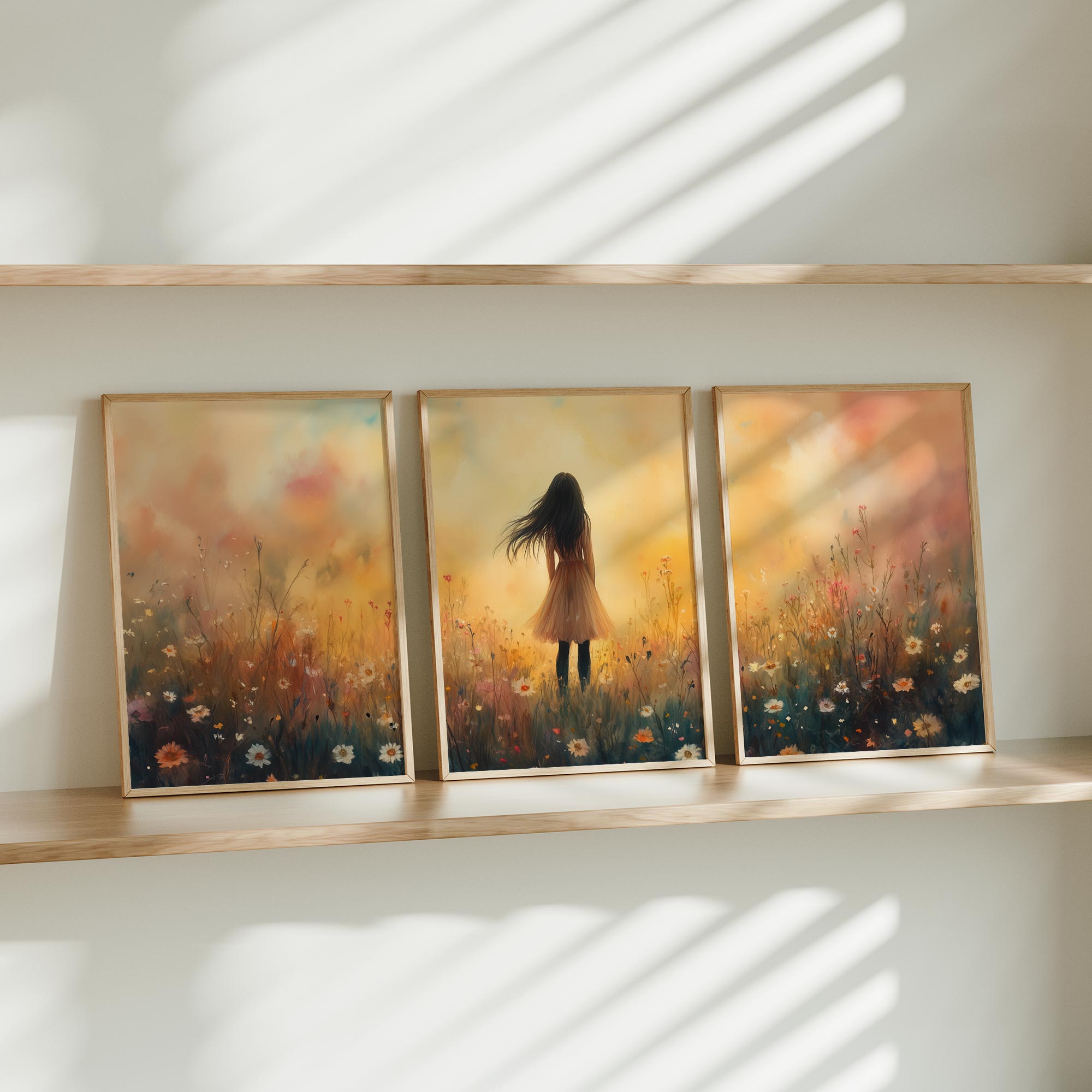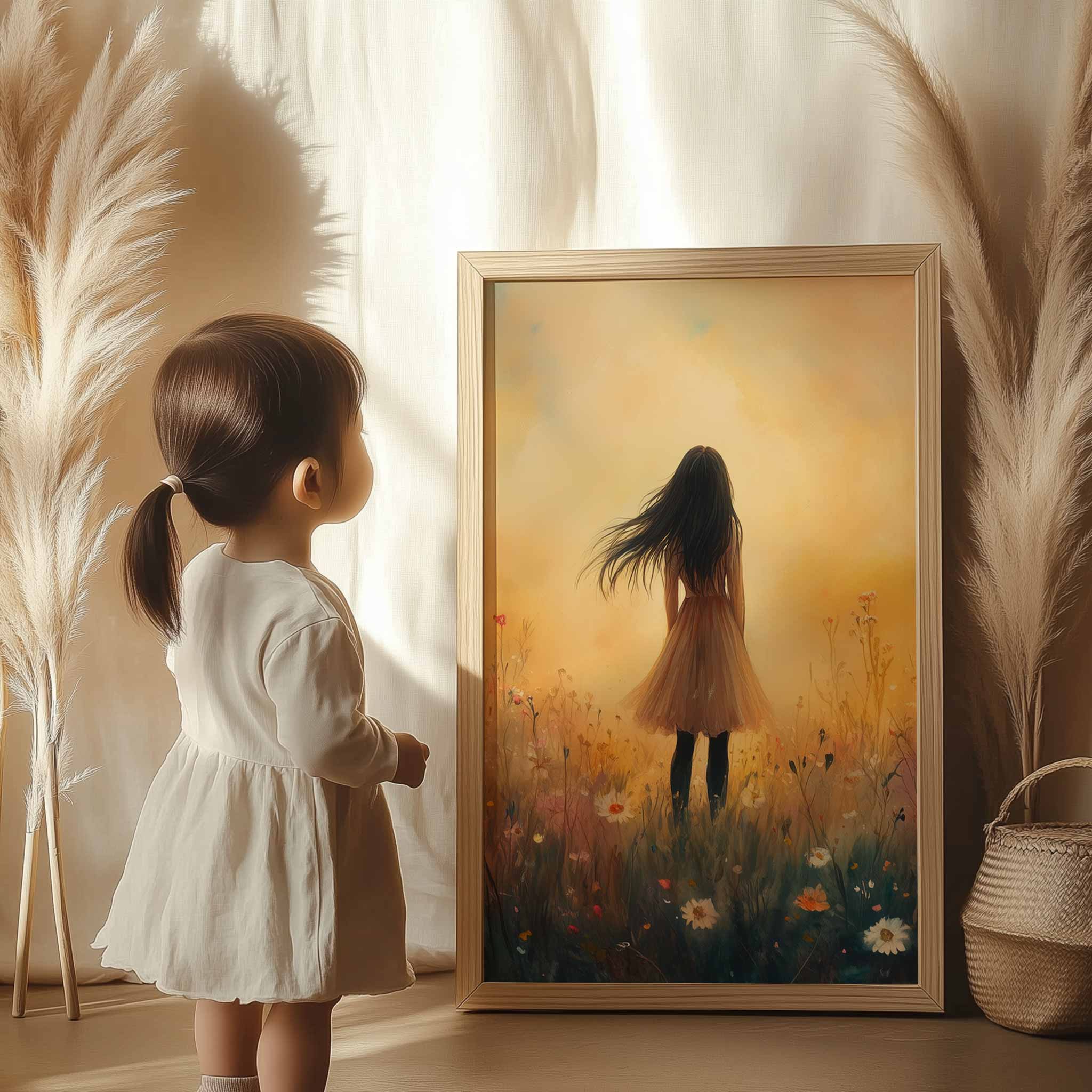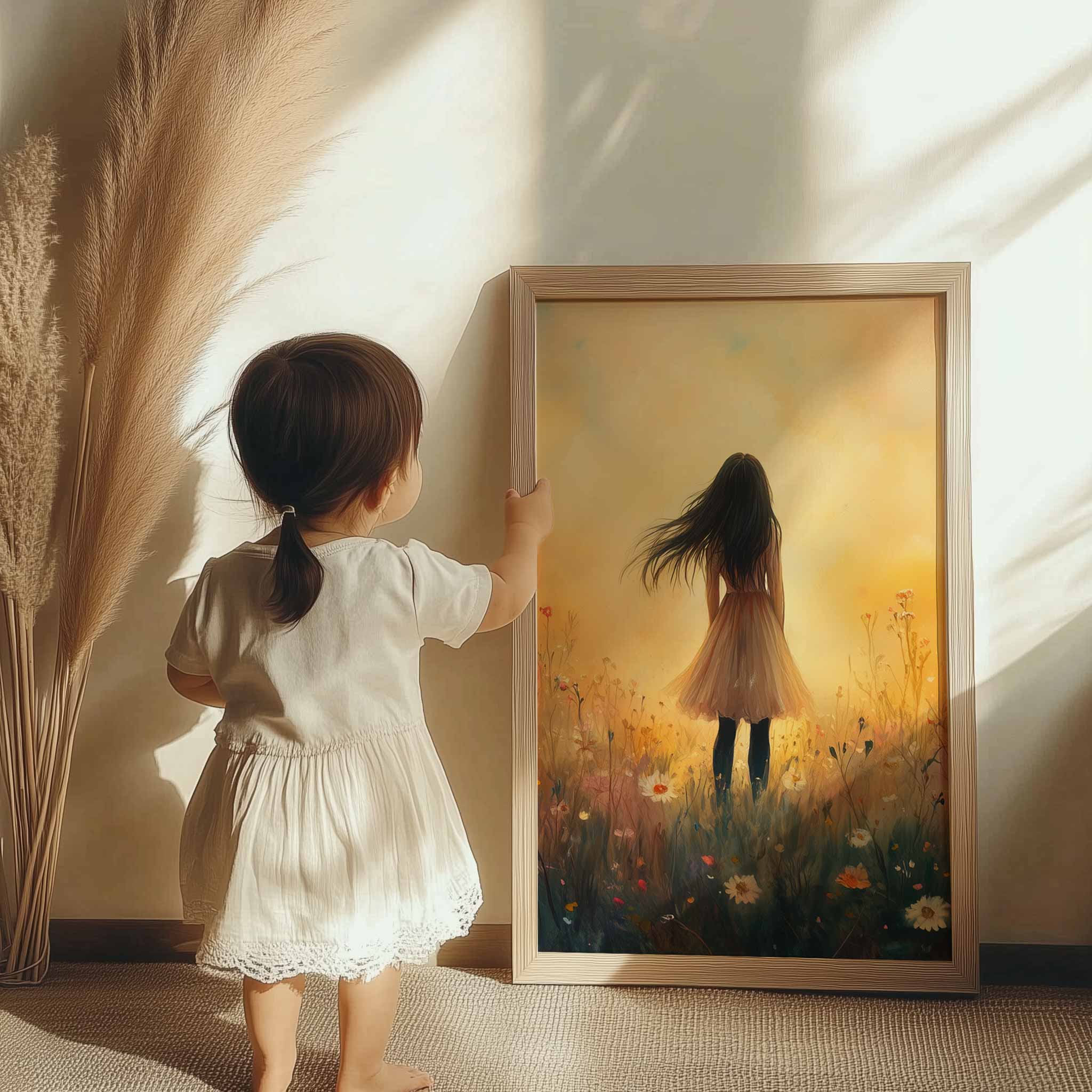 Zwevend in een Dromerig Bloemenveld bij Zonsondergang