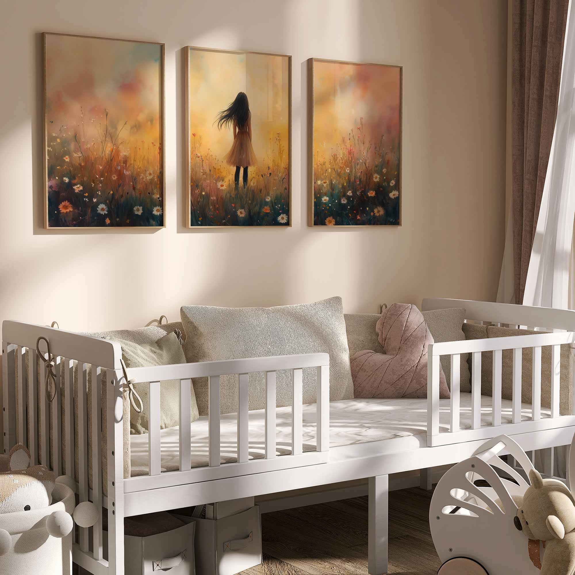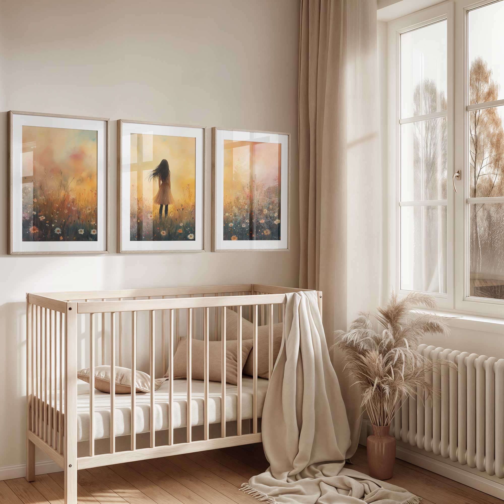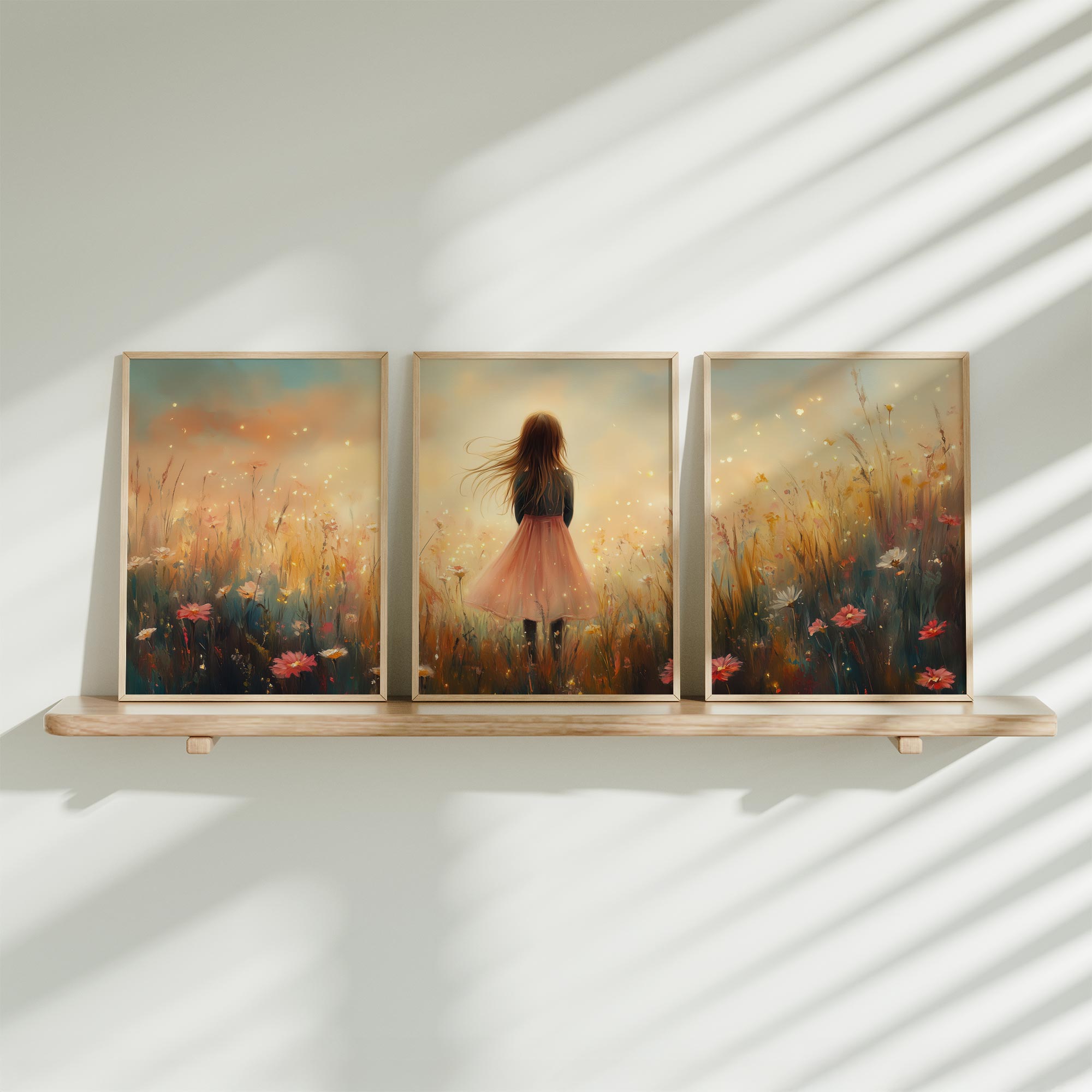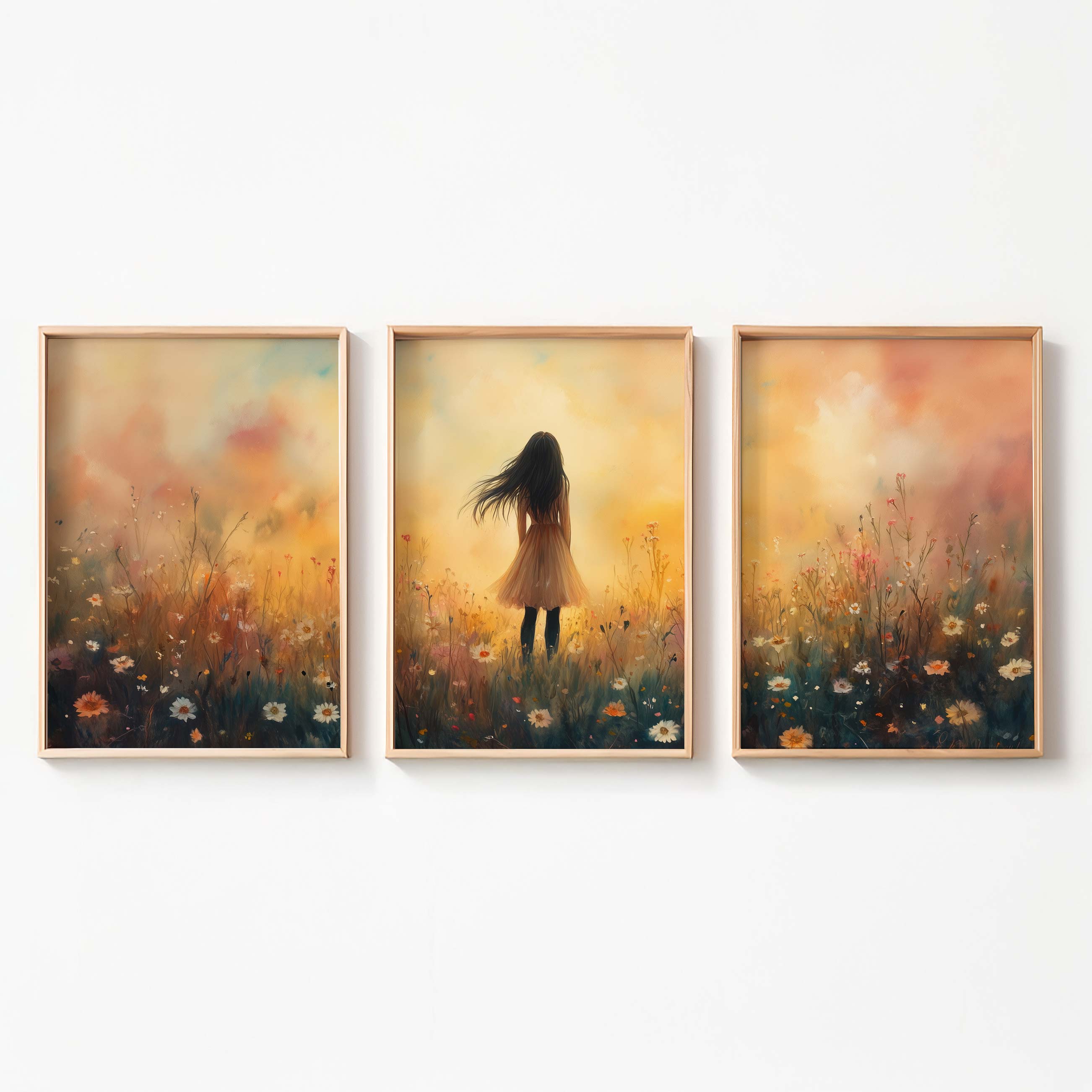Zwevend in een Dromerig Bloemenveld bij Zonsondergang